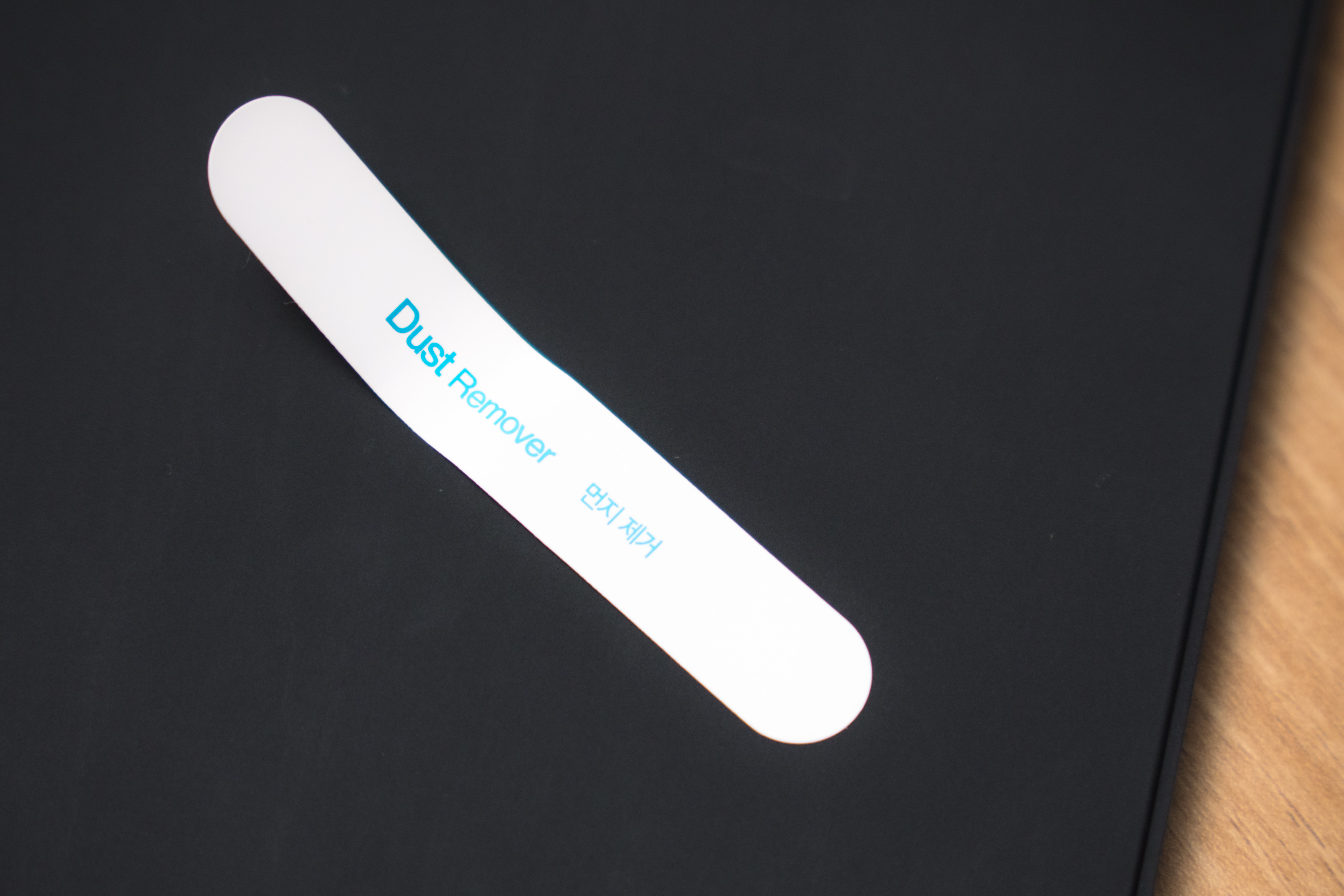 보호필름이 부착될 위치를 미리 대 보고 그대로 비닐을 제거 해 가면 붙이는 방식이 가장 쉽고 실수도 적습니다. 하판은 대칭 형태로 되어 있어 특별히 위/아래를 가리진 않습니다. 알콜스왑으로 닦은 후에 먼지 제거용 스티커로 한 번 더 정리하는 게 좋습니다.