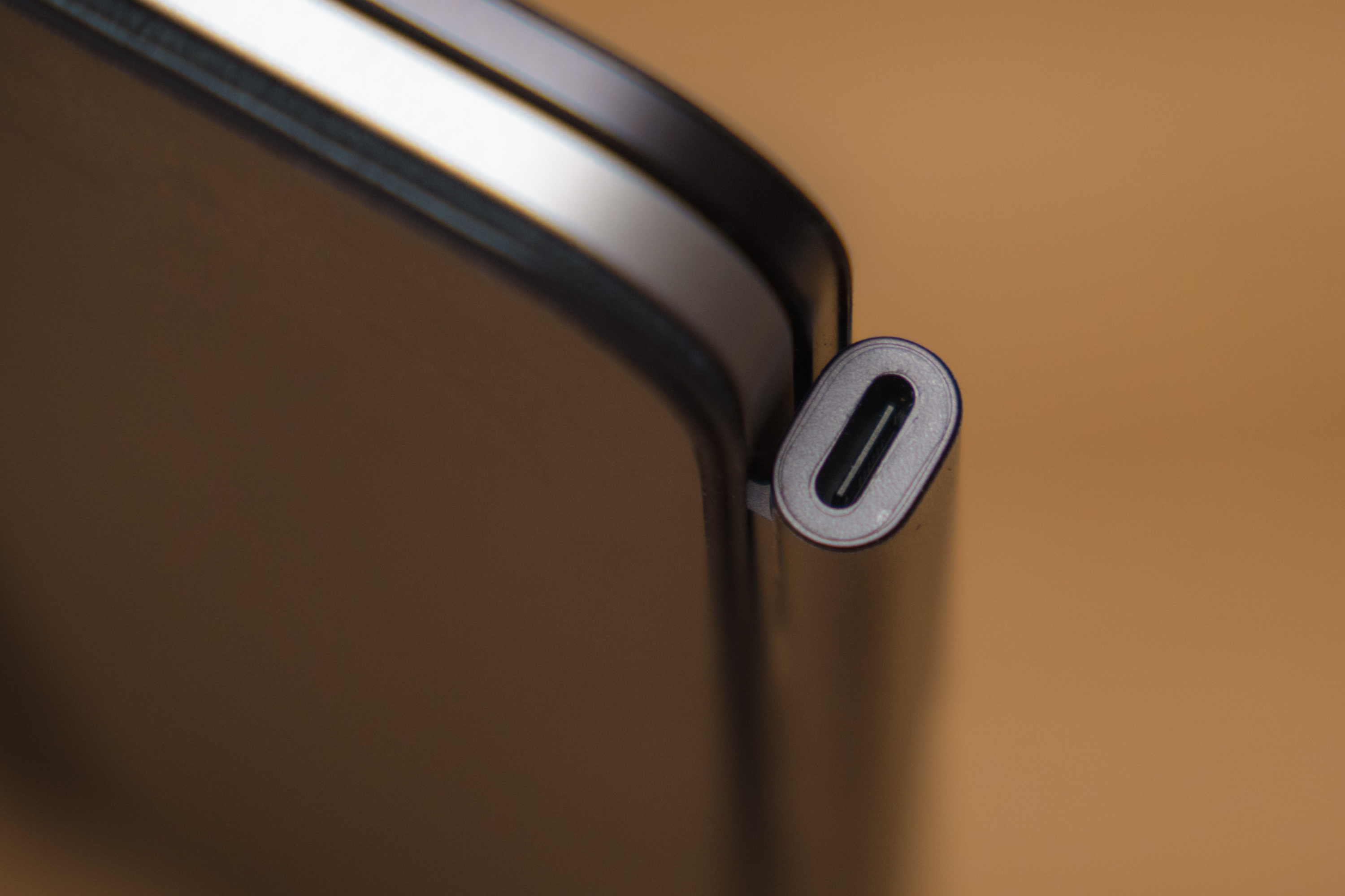 힌지 양쪽 끝부분까지 보호필름이 있습니다. 이쪽이 금속 소재인데다 충전 포트와 마찰이 잦아서 벗겨지기 쉬운데 상당부분 보호가 되리라 생각해요. 이런 디테일 좋습니다. 이렇게 내/외부 보호필름 부착 완성. 힌지를 제외하면 크게 어렵지 않았습니다. 진땀도 안 났어요.