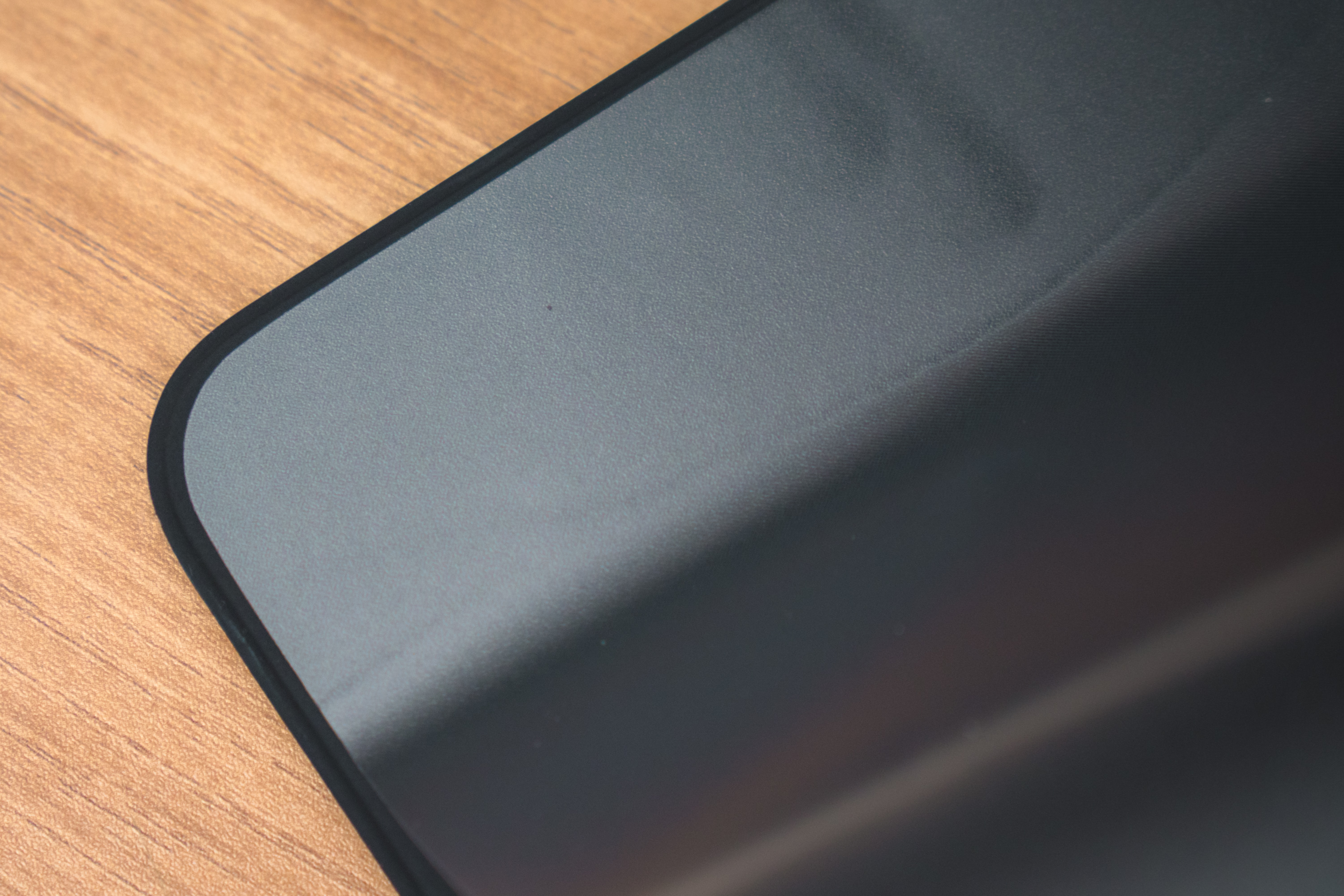 부착 위치에 맞춰 필름을 올려 놓은 상태에서 아랫쪽 보호 비닐을 분리하면 자연스럽게 제품에 밀착됩니다. 한쪽을 투명 테이프 등으로 고정시켜 두면 위치가 어긋나는 것을 방지할 수 있겠습니다. 이후 기포가 생기지 않도록 밀대로 살살 밀어가면서 끝까지 부착하면 끝. 강화유리와 달리 얇고 신축성이 있기 때문에 밀대를 너무 세게 밀면 필름이 늘어날 위험이 있어요. 천천히 해야 조금씩 어긋나는 것도 바로잡을 수 있고요.