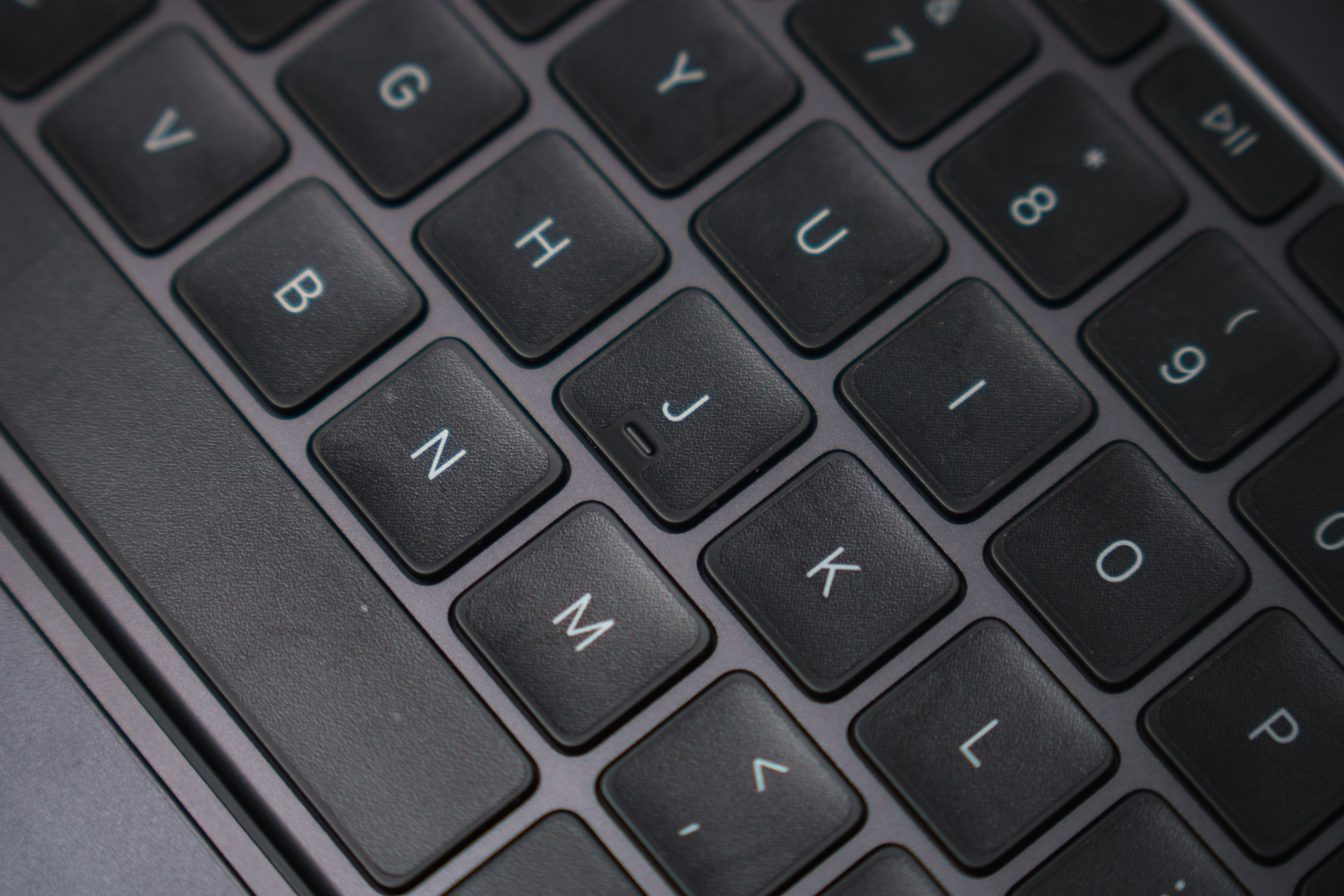 큰 면적을 부착하는 게 의외로 더 쉽습니다. 부착 전에 위치만 잘 잡아주면 되거든요. 필름 무게로 자연스럽게 밀착돼서 필름이 울 위험도 적고요. 부착 직후에는 밀개 자국이 보입니다만 조금만 시간이 지나면 사라집니다. 아래가 키보드 자판 필름까지 끝낸 뒤에 찍은 것인데 상당히 자연스럽게 안착이 됐습니다.