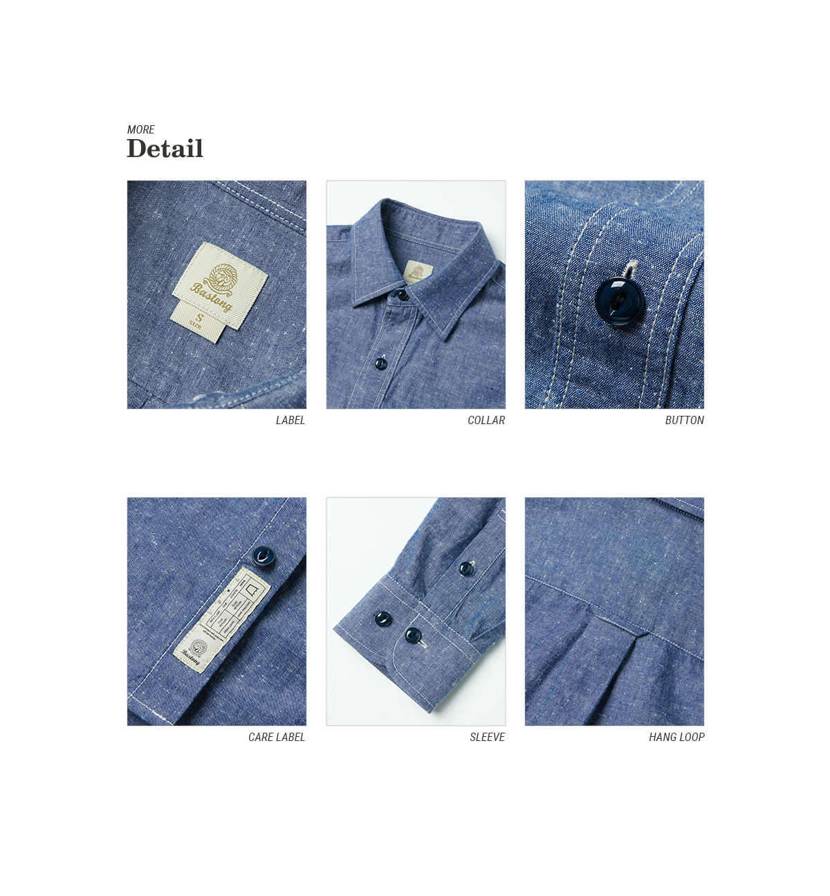 24SS 시즌 샴브레이 셔츠는 품절 때문에 구매하지 못했는데 이번 시즌 셔츠가 더 제 취향에 맞아 다행입니다. 기본적인 샴브레이 워크 셔츠의 형태이면서 흰색 실이 삐져나온 듯한 넵 원단, 코발트 색상의 단추 등의 디테일이 좋습니다. 이제 샴브레이 셔츠 검색 그만해도 된다는 게 좋아요.