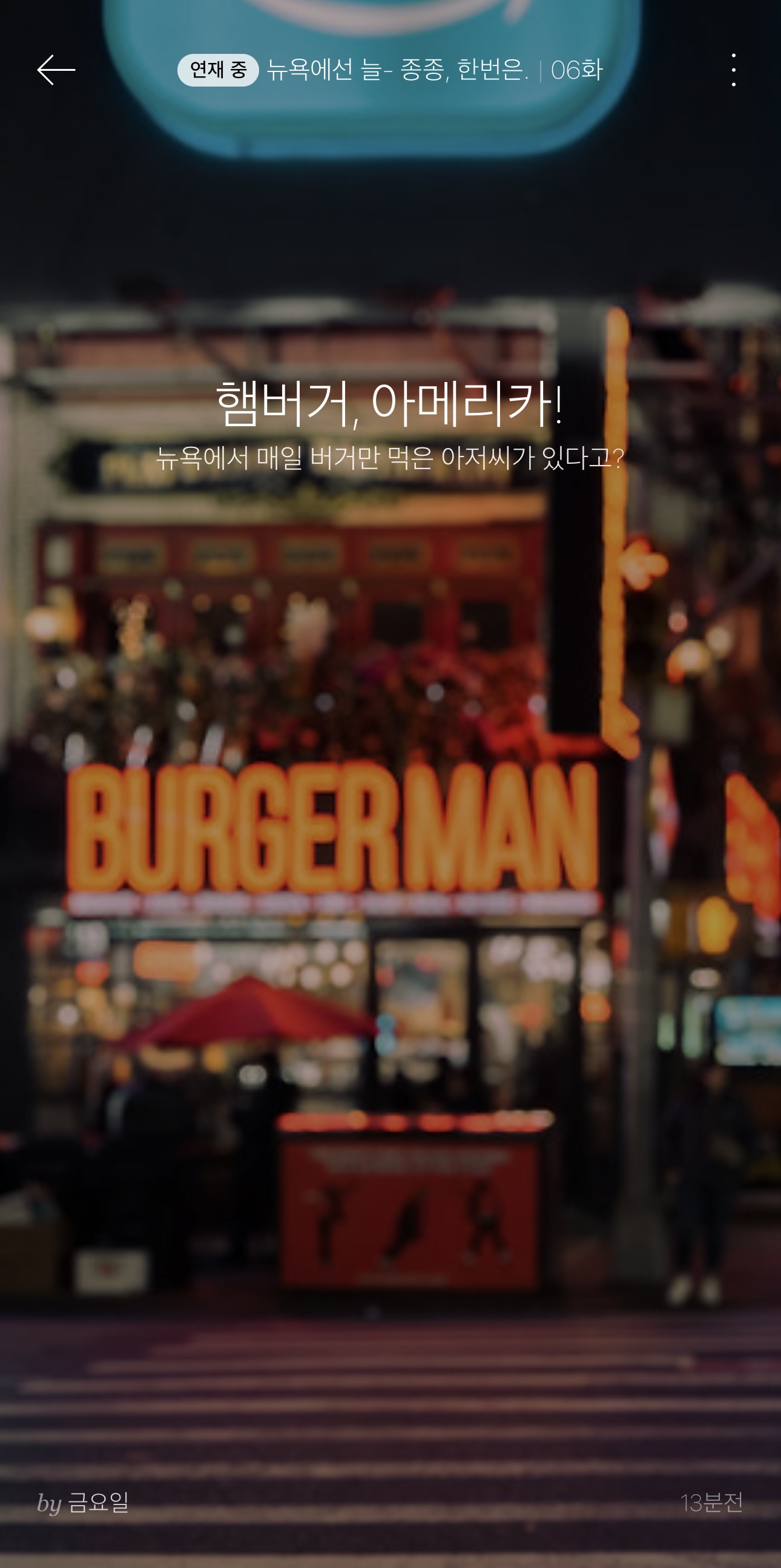 연재를 하면 사람이 좀 부지런 해 집니다. 브런치스토리에서 연재 중인 뉴욕 여행기가 벌써 6화. 늘 2-3000자 정도로 쉽게 읽을 수 있게 쓰는 게 목표지만 이야기가 길어져 5000자가 넘어가기 일쑤입니다. 5화까지는 여행 초반부 이야기였고 최근 6화부터 본격적인 이야기가 시작돼요. 특히 여행 최대 미션 중 하나였던 뉴욕 버거 투어 얘기라 재미있게 썼습니다. 관심 있으신 분들은 방문해서 읽어 주시고, 라이킷도 눌러 주시고. 미리 감사합니다.