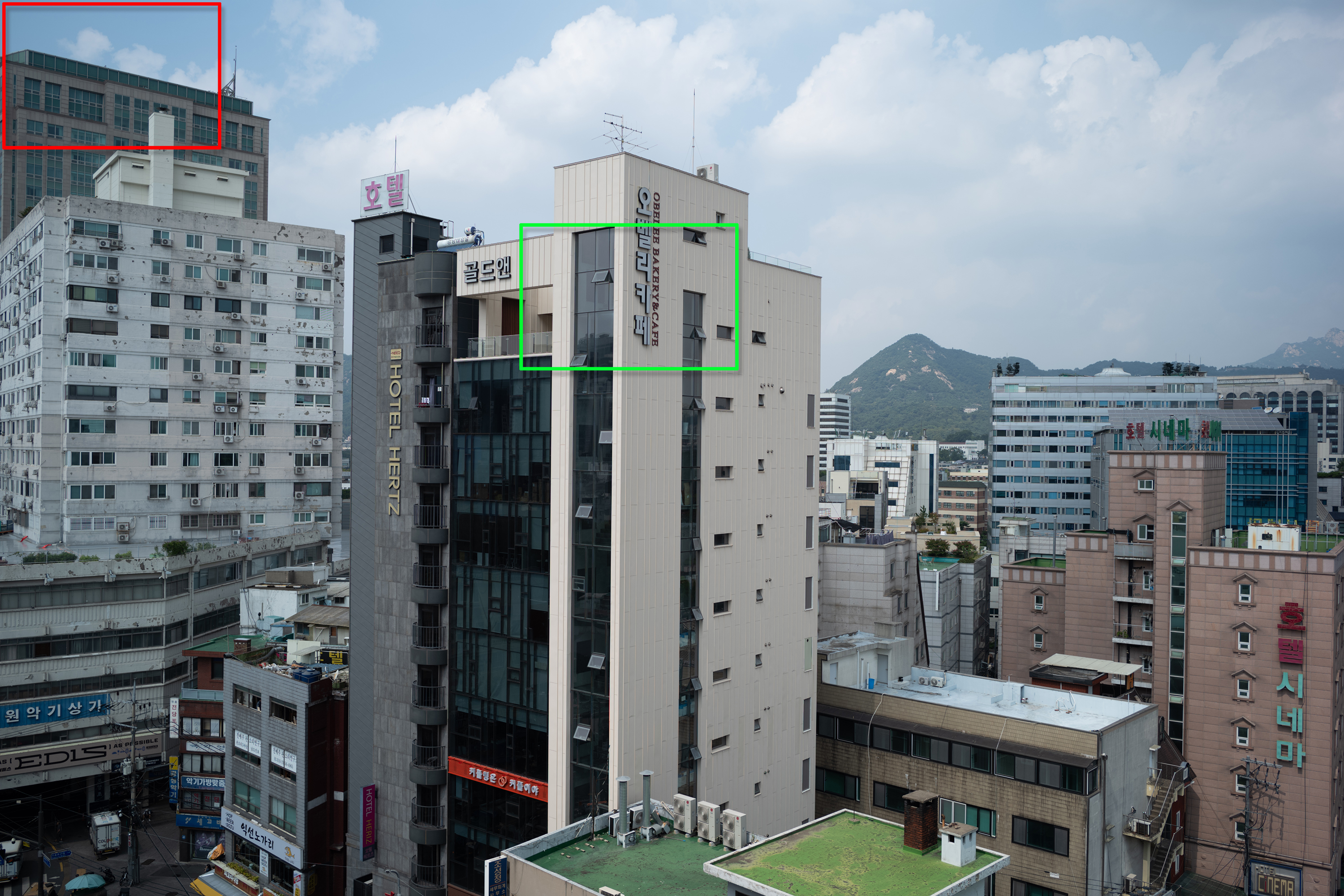 전통적인 올인원 렌즈로 35-50mm 렌즈가 많이 꼽혔습니다만 풍경/여행/건축 등을 고려한다면 28mm가 더 좋은 선택일 수 있습니다. 게다가 요즘엔 스마트폰 카메라의 24-26mm 프레임에 익숙해져서 사람들의 시선도 광각 성향에 가까워지는 것 같아요. 저도 50mm에서 35mm 그리고 요즘엔 28mm로 점점 시야가 넓어지고 있습니다. 라이카 Q에 적응해 버린 것 같기도 하고요. 좁아서 다 담지 못하는 것보단 넓게 찍고 잘라내는 편이 나으니까. 아래는 35mm와 28mm의 프레임을 비교한 것입니다.