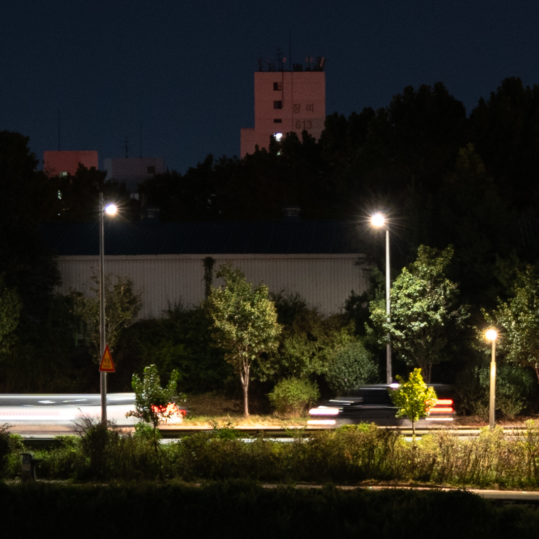 보케 표현 역시 기대 이상입니다. 9매의 원형 조리개를 탑재해 최대 개방뿐 아니라 F8-11 구간까지도 원형 보케를 유지합니다. 주변부 보케가 찌그러져 보이긴 하지만 모양이나 색표현 자체는 준수하기에 야간 촬영에서도 충분히 활용할 수 있겠습니다.