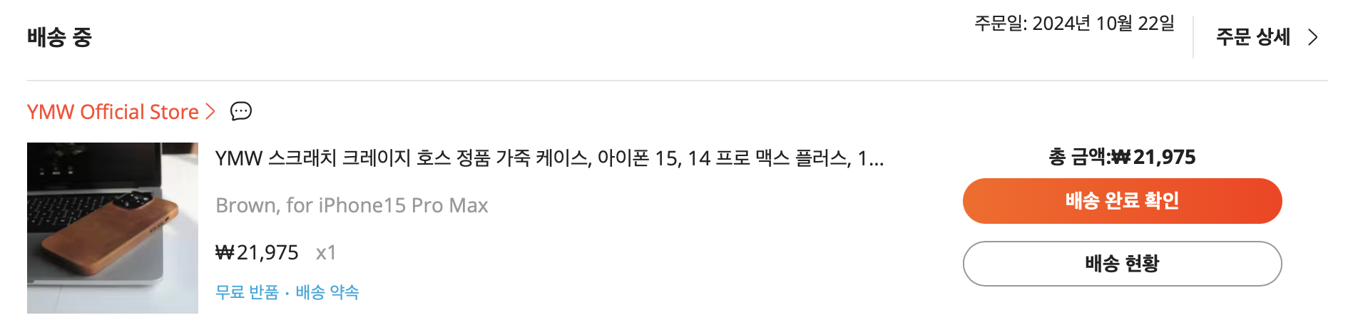 몇몇 업체의 가죽 케이스를 살펴본 뒤 제가 구매한 것은 중국산 제품입니다. 알리 익스프레스에서 꽤나 평이 좋은 YMW 브랜드의 제품이며 신규가입 특가로 22000원에 구매했습니다. 케이스 선택에 세 가지 기준을 세웠는데 천연가죽 소재, 맥세이프 지원, 액션 버튼쪽 마감입니다. 이를 충족하면서 동시에 가격이 괜찮은 제품을 찾아 여기로 왔습니다. 노마드, 샌드마크, 케이스티파이 등의 유명 브랜드 제품들도 살펴봤는데 가격에서 알리 제품의 손을 들어주게 되더군요.