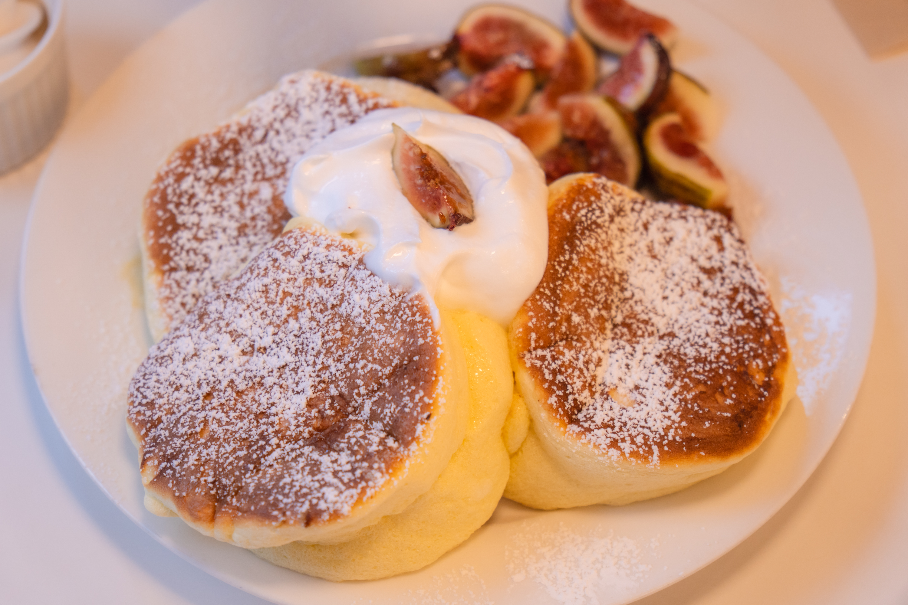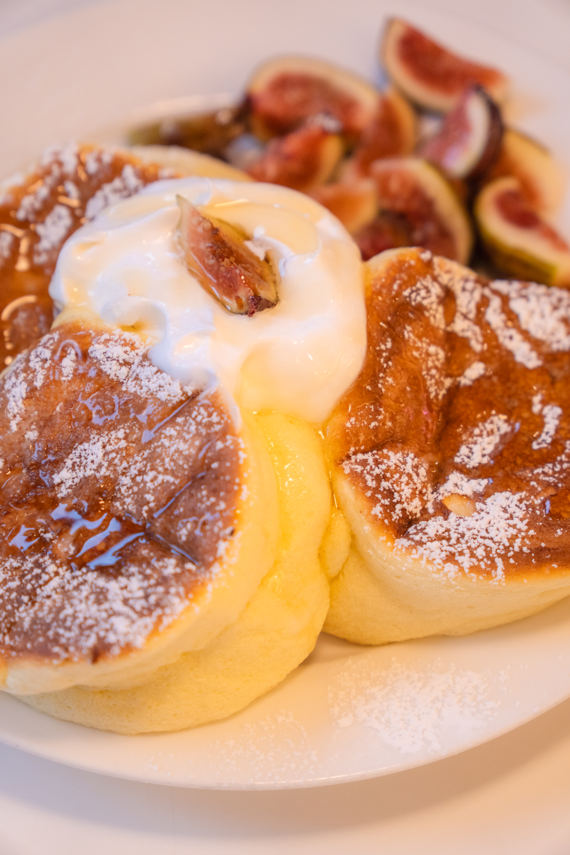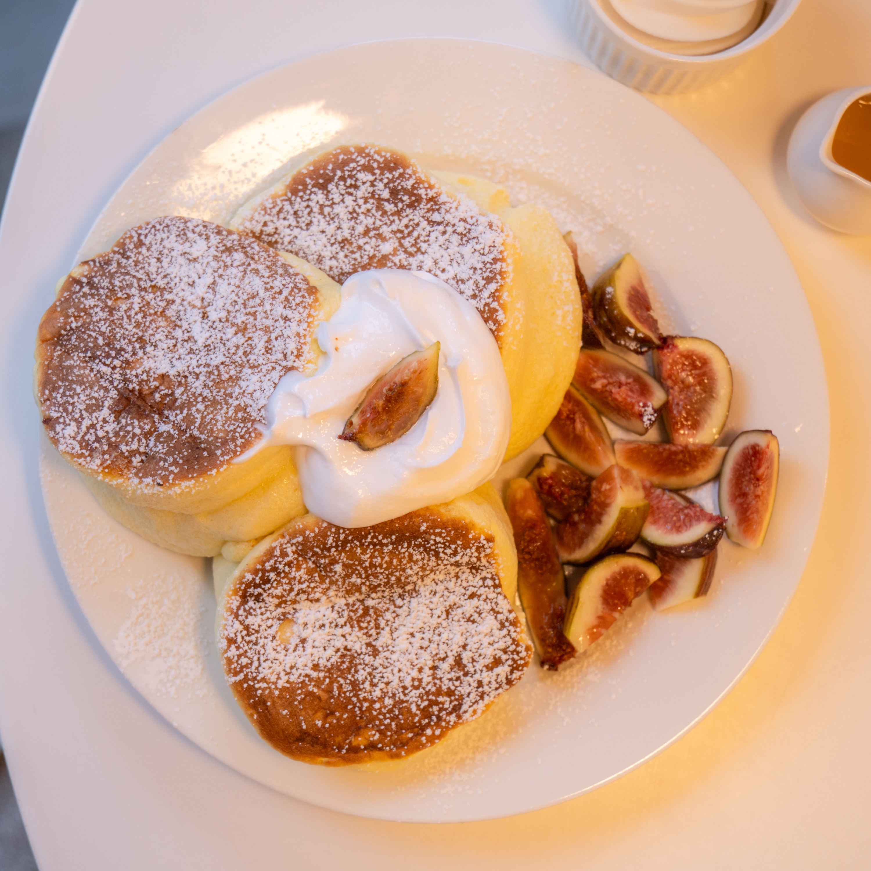 케이크 굽는 냄새가 진동하더니 주문한 메뉴가 나왔습니다. 철은 지났지만 워낙에 좋아해서 무화과 올린 팬케이크를 골랐습니다. 보존 잘 된 과일을 썼는지 크기는 좀 작아도 향은 충분히 좋더군요. 단맛이야 과일보단 크림과 아이스크림, 시럽이 채워줄 테니까요. 오픈 키친에서 주문 직후 굽는 곳이라 의심의 여지 없이 갓 구운 팬케이크를 맛 볼 수 있습니다.