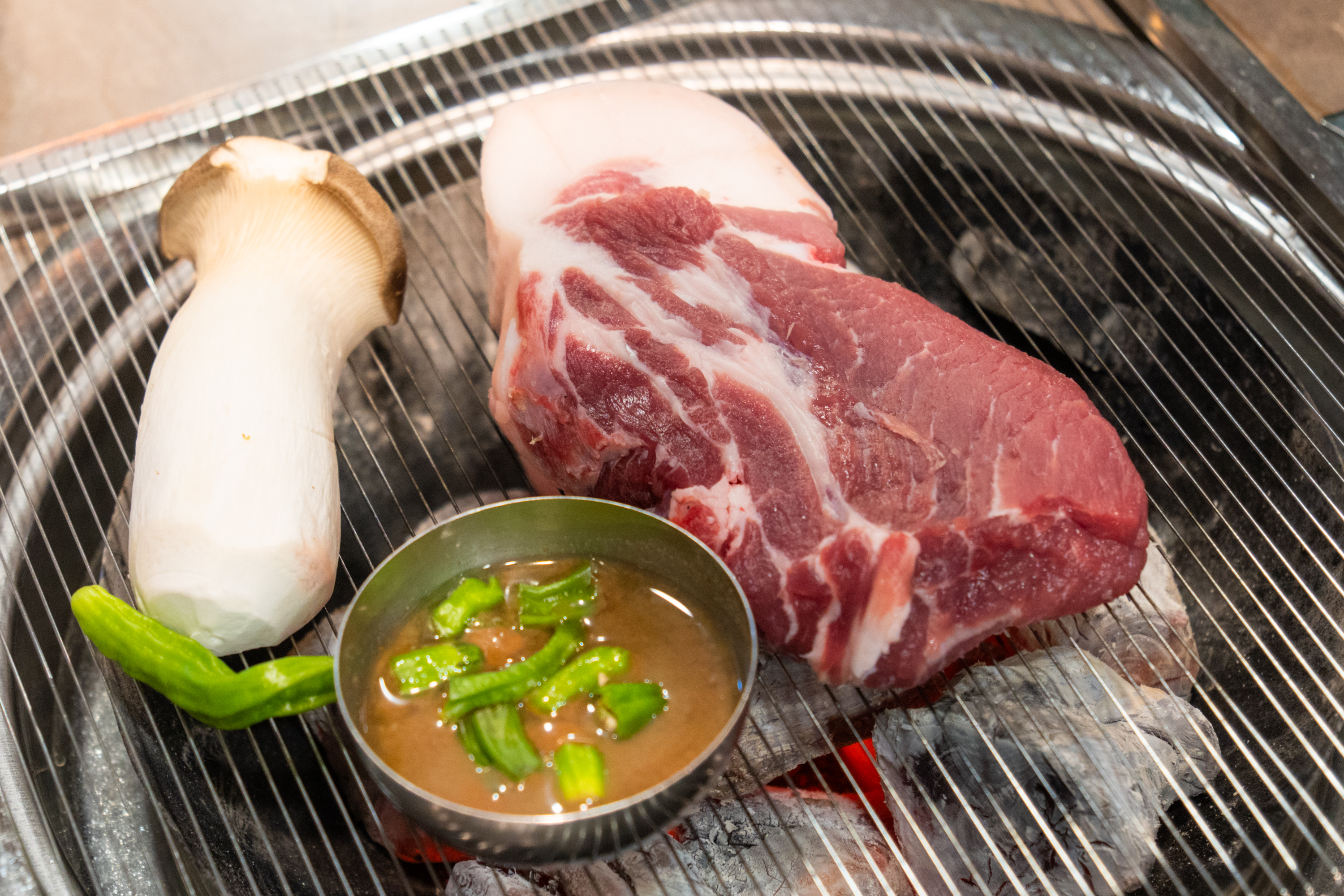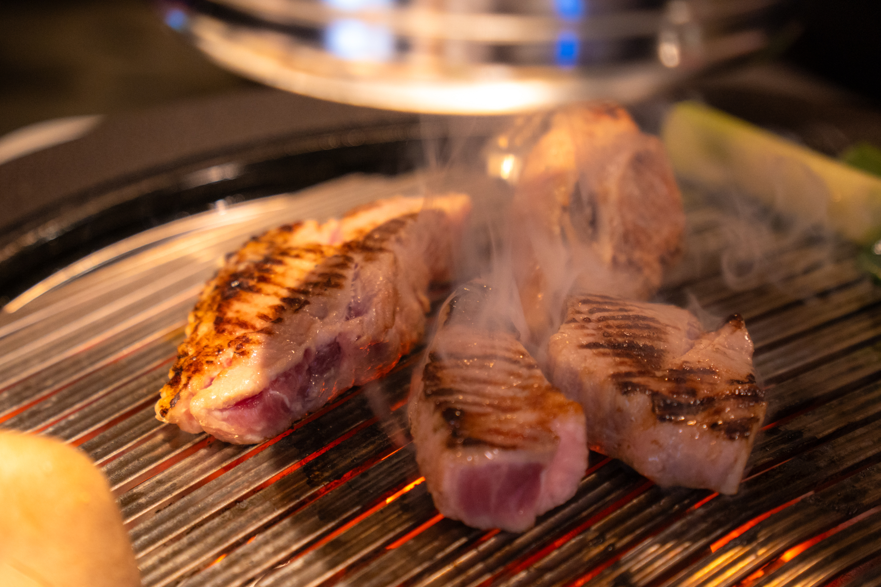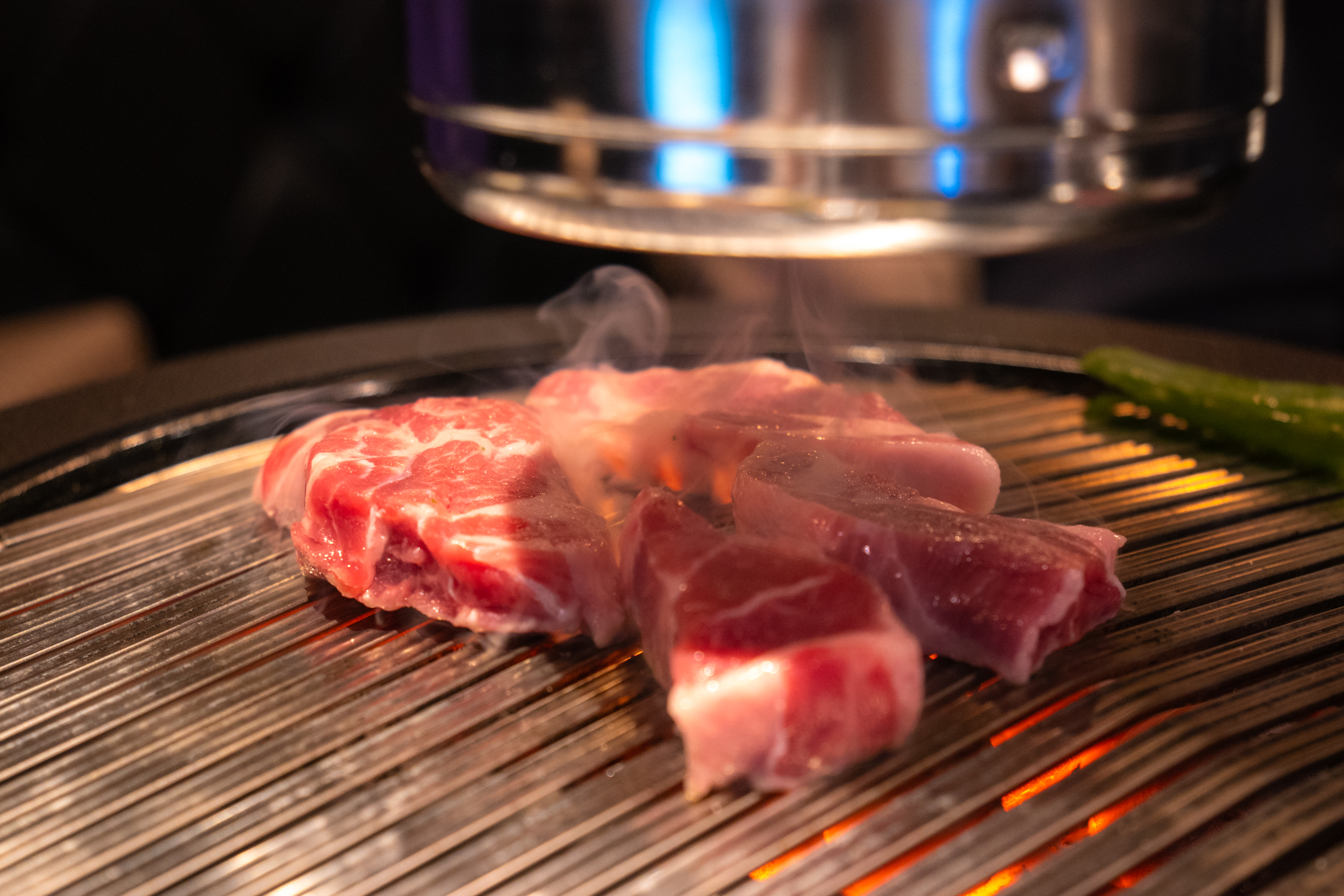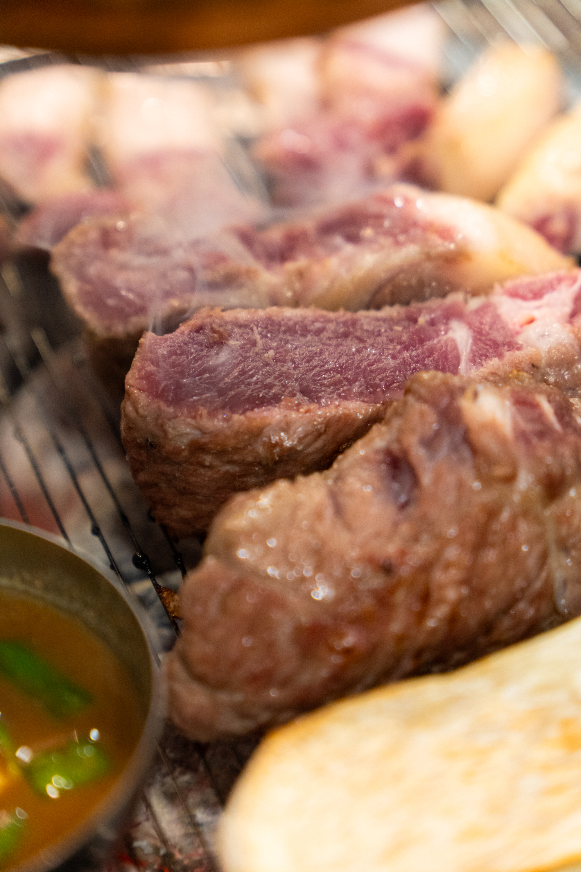 여기서도 역시 구워지는 고기를 찰칵찰칵. 역시 망원 촬영이 주가 되었습니다. 고기집 사진은 대부분 F2.8 최대 개방으로 촬영이 됐는데 어두운 실내에서 셔터 속도를 확보하기 위함이기도 하고 개방 촬영의 해상력에 만족하기 때문이기도 합니다. 실내 촬영에선 개방 조리개 값 위주로 촬영하고 있어요. 이렇게 생생한 음식 사진이 촬영됐을 때 아이폰 대신 카메라를 챙겨 가서 촬영한 보람을 느낍니다. ZV-E10을 사용한 지 꽤 오래 됐는데 다른 렌즈 욕심이 생기지 않는 걸 보면 17-70mm F2.8의 만족도가 그만큼 높단 거겠죠.