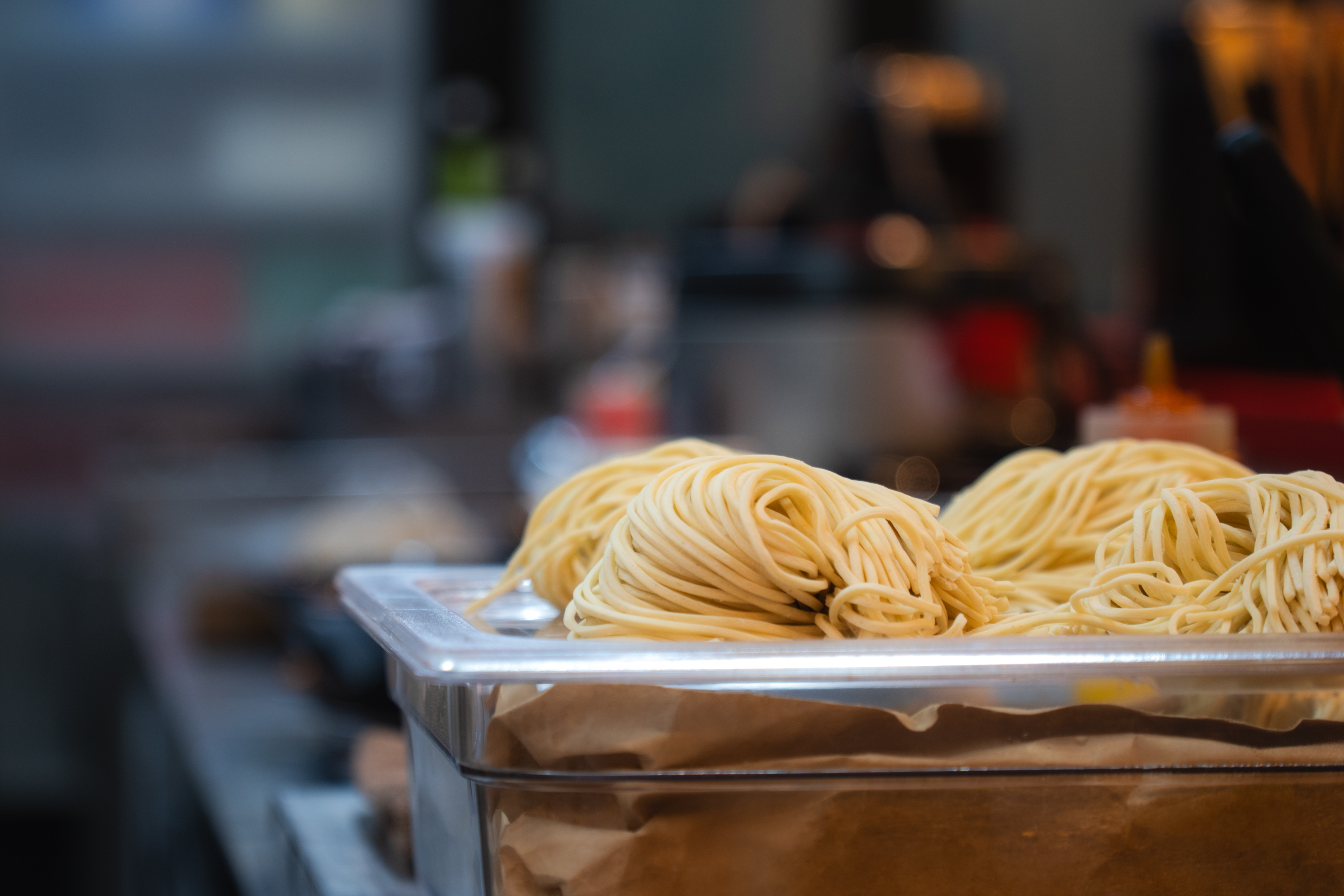 이집 라면에서 가장 마음에 든 건 면이었는데 곡향 풍부한 중면에 삶기도 조절할 수 있어서 제 취향에 딱 맞았습니다. 녹진하고 기름진 국물에 얇은 면보다 더 잘 어울린다는 생각도 했고요. 삶아지길 기다리는 면들을 바 테이블에 앉아 망원으로 촬영해 보았는데 이럴 때 17-70mm 줌 렌즈의 매력을 한 번 더 느낍니다. 최대 망원에 가까운 65mm에 F2.8 최대 개방 조리개 값으로 촬영했는데 배경 흐림 효과도 적절하고요. 풀 프레임이 대중화 된 요즘에야 APS-C가 무시 당하지만 이 렌즈를 사용하면서 F2.8의 심도 연출에는 큰 불만이 없습니다.