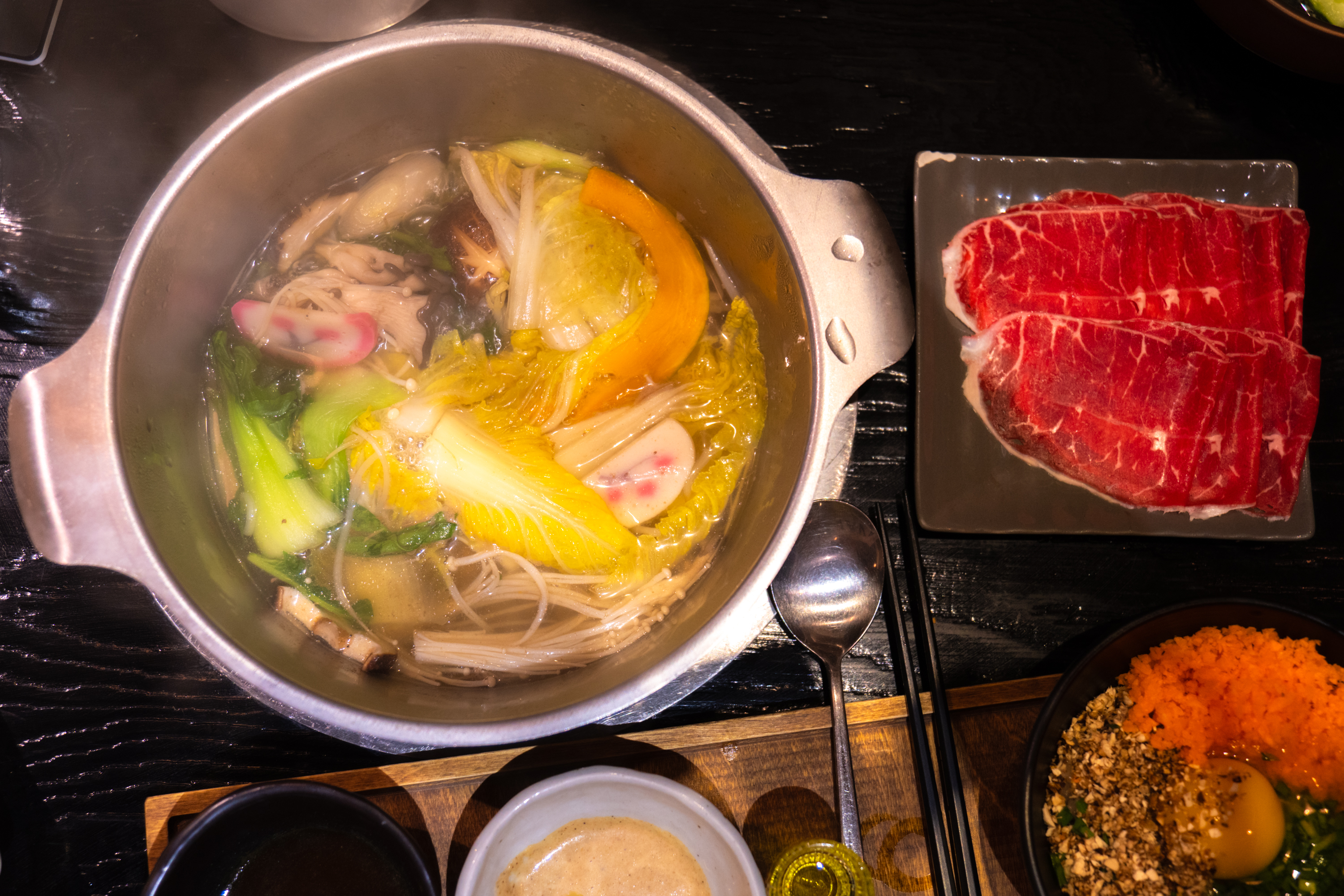 대흥역에 있는 스키야키, 샤브샤브 전문점. 일반적인 집들과 다른 점이라면 메뉴를 1인 기준으로 제공하는 것입니다. 백화점 푸드 코트에 있는 샤브집에서 종종 볼 수 있는 방식인데 그보단 더 좋은 재료, 편안한 환경을 제공하고 있습니다. 저는 이번 기회로 처음 알게 됐는데 이미 꽤 이름이 알려진 곳이더라고요. 캐치테이블로 예약을 미리 하지 않으면 대기를 해야 한다고 합니다.