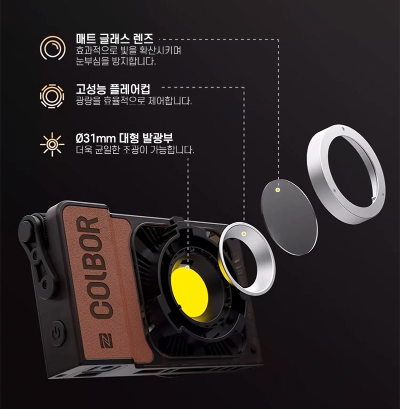 한 손에 쥘 수 있는, 두께가 얇아 가방 보조 주머니에도 휴대할 수 있는 컴팩트한 조명이지만 100W의 출력을 자랑합니다. 지속광의 특성을 살려 유튜브, V-LOG 촬영에 사용할 때 최고의 효율을 누릴 수 있을 것으로 보여요. 여러 개를 운용하기에도 좋고 USB C로 전원을 공급할 수 있으니 전체 시스템 구성이 컴팩트 해 질 것입니다. 지름 31mm의 발광부에서 나오는 광량도 꽤 만족스러웠습니다.