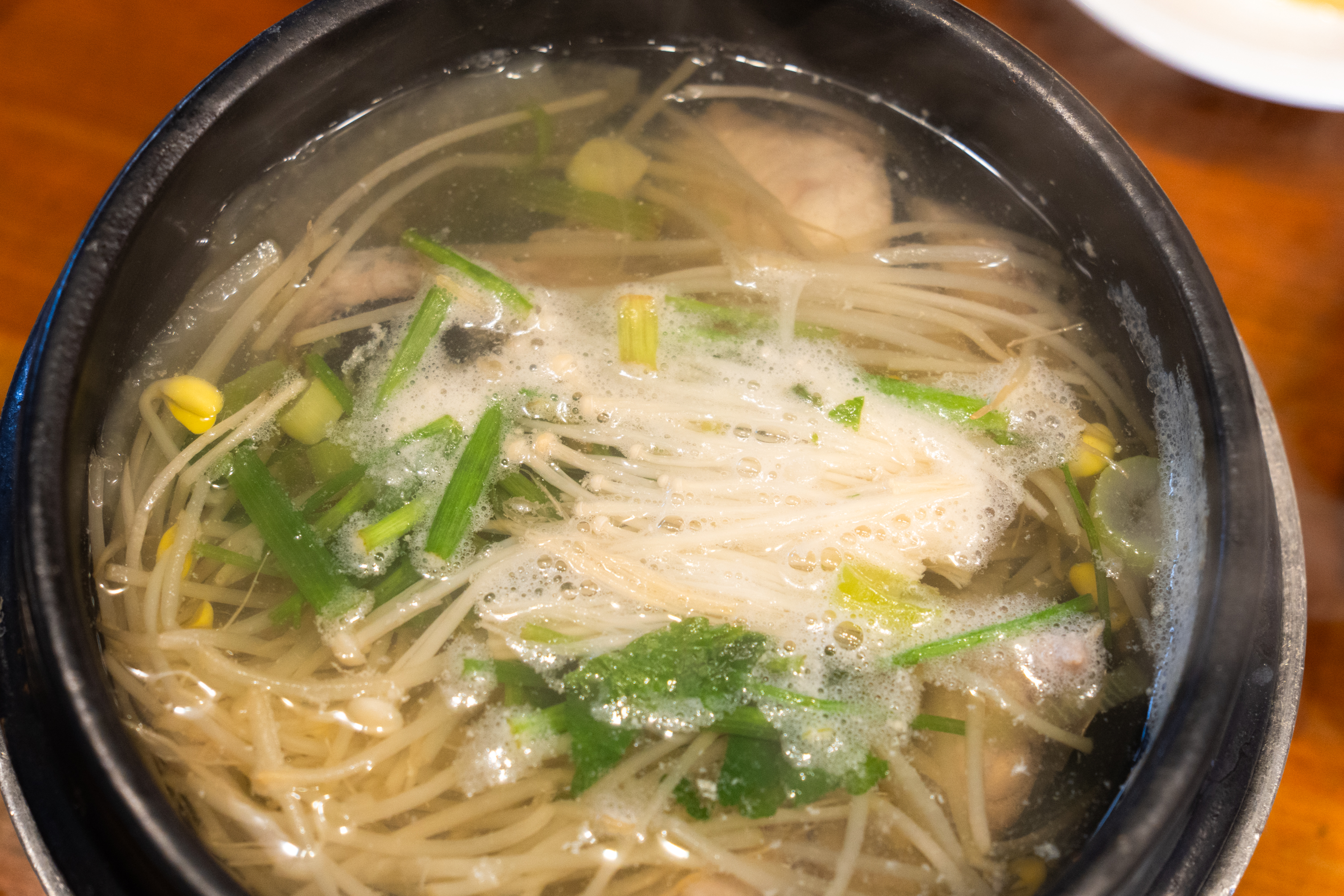 이러니저러니 해도 한 숟갈 국물 마셔보니 목구멍을 따라 뱃속 그리고 온몸으로 따뜻한 기운이 퍼집니다. 가격 대비 늘 의문인 메뉴라 곱지 않은 생각을 깔고 있는데 솔직히 맛은 있어요. 국물이 맛있으니 콩나물도 자꾸 먹게 됩니다. 솔직히 배는 콩나물 그리고 물로 채우는 거죠.