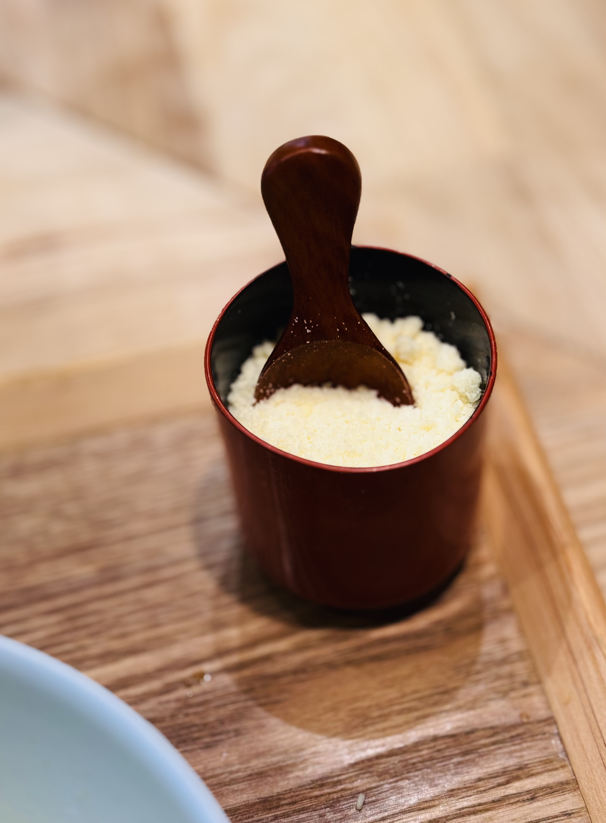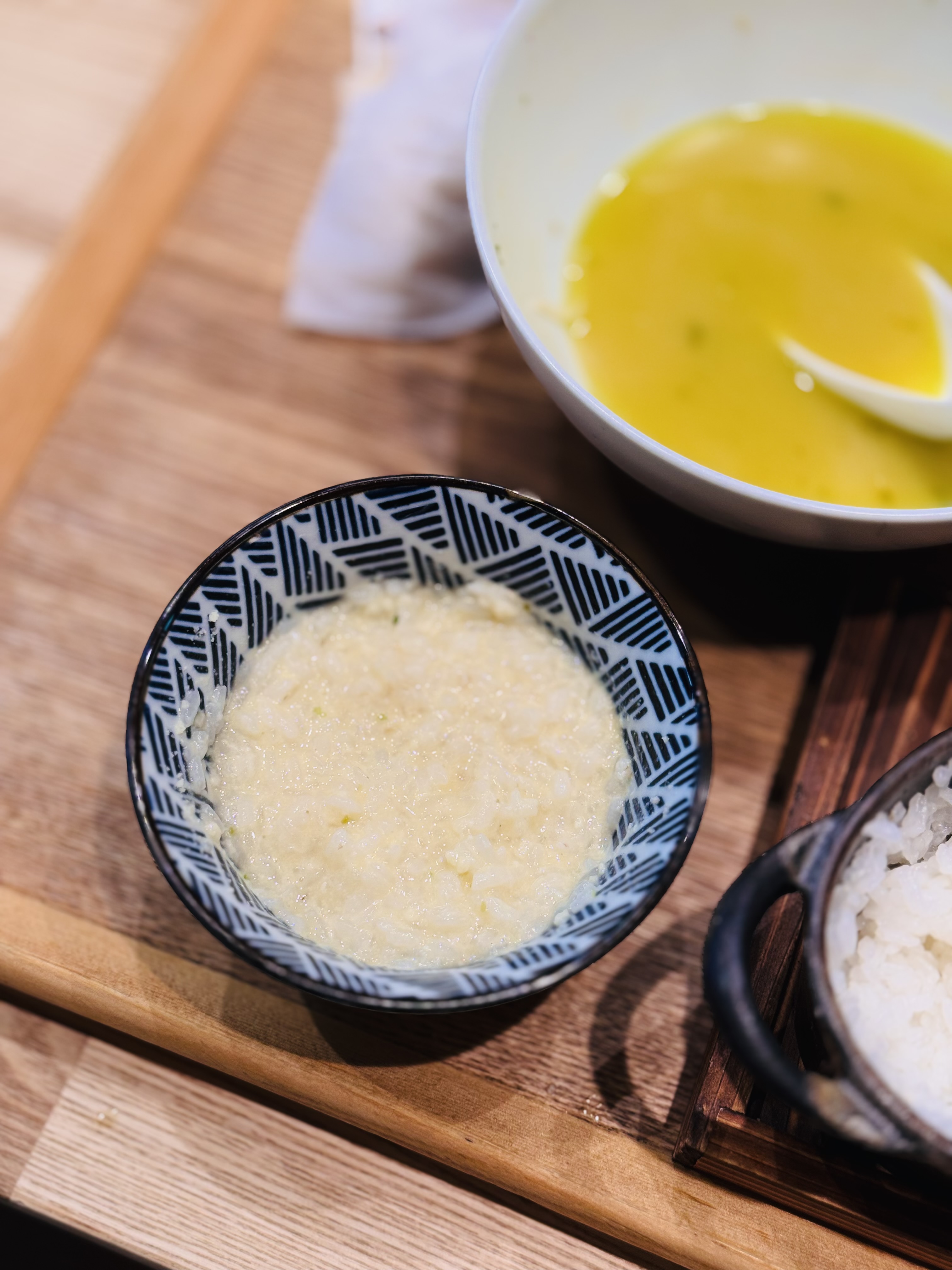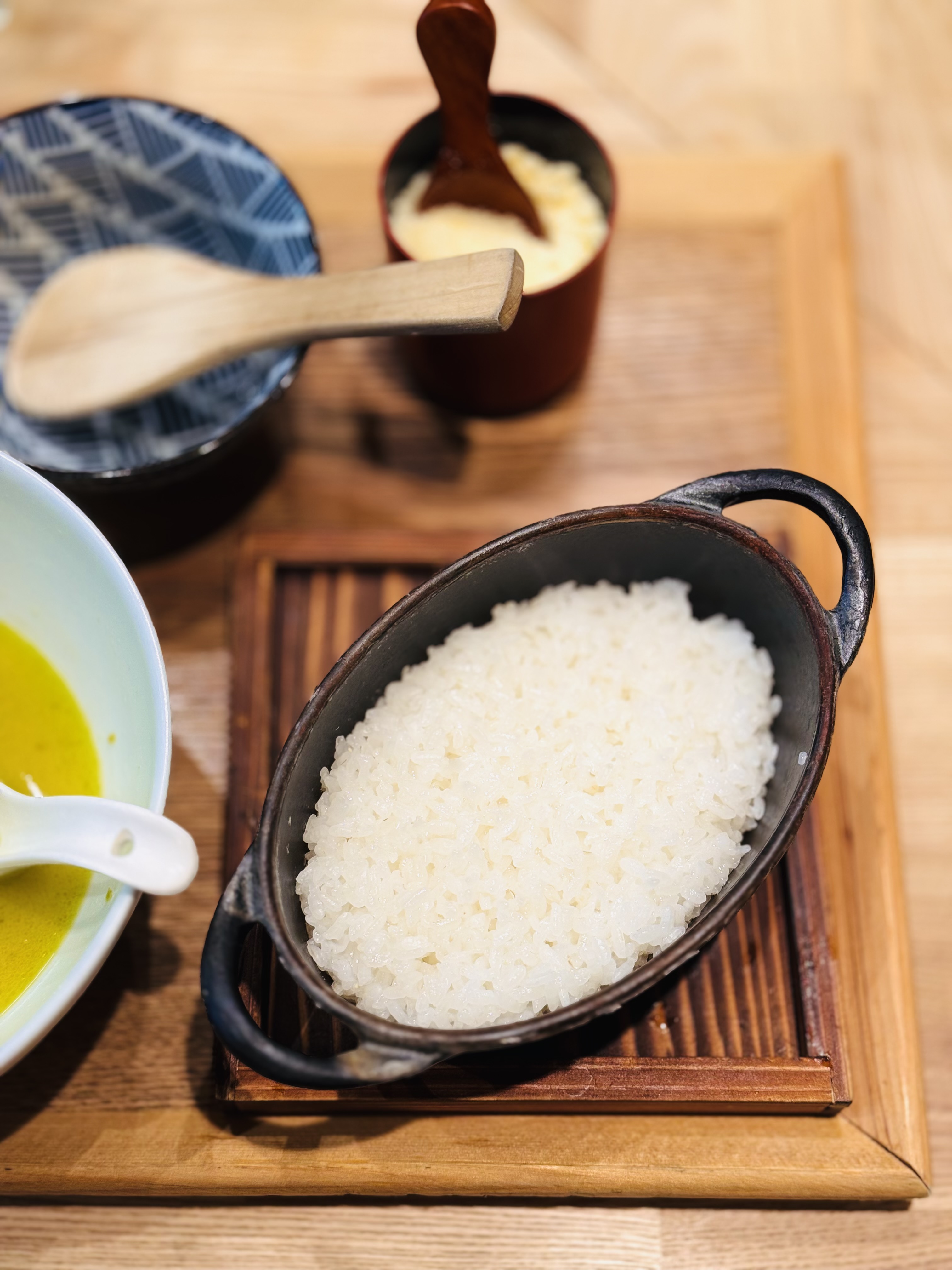 이집의 또다른 매력은 사이드 메뉴인 솥밥. 고시히카리 쌀로 갓 지은 솥밥과 네덜란드산 치즈가 나오는데 이걸 남은 라멘 국물과 섞어 리조토처럼 먹는 방식입니다. 라멘의 양이 적기도 하지만 이 솥밥 자체의 매력이 대단해서 추천하고 싶어요. 저는 혼자 다 먹을 수 있지만 보통은 둘이서 하나를 주문한다고 합니다. 가격은 4000원.