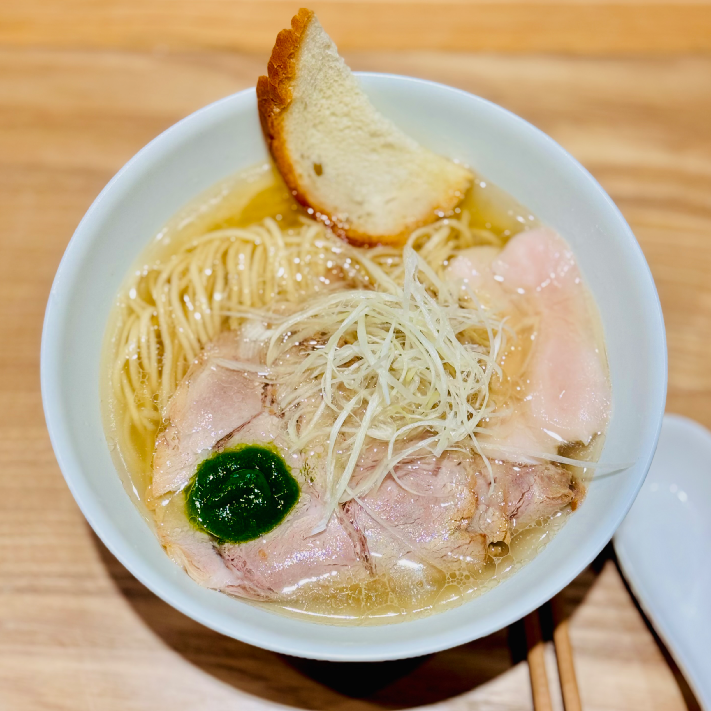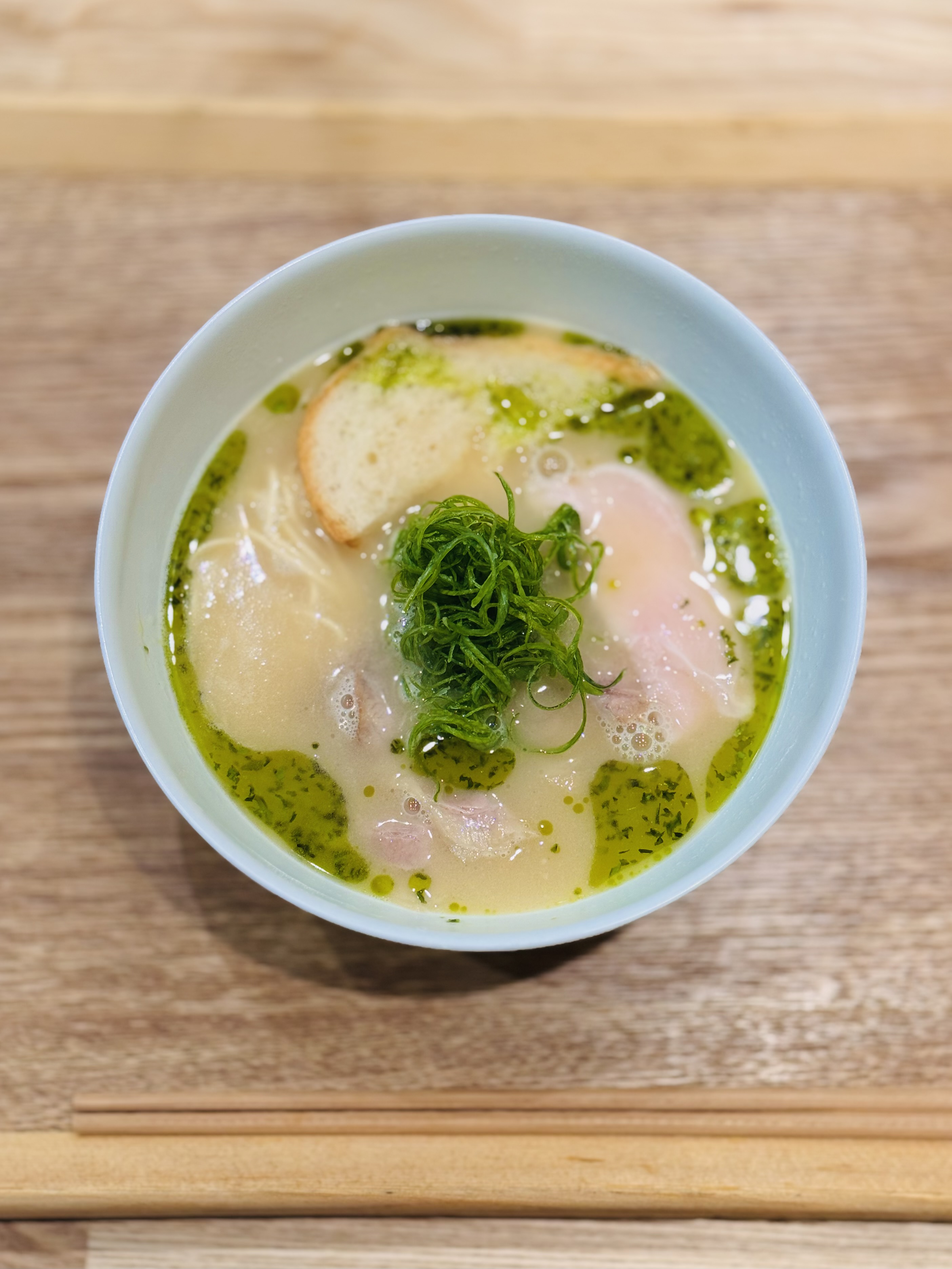 즐기지 않는 탄탄멘을 제외하고 국물 라멘 3종을 모두 먹어봤습니다. 대표 메뉴인 교카이파이탄은 보기만큼 새롭습니다. 그간 많은 라멘들을 먹어 봤지만 이집 라멘은 다른 곳에서는 느껴보지 못한 맛이었어요. 닭육수를 쓴 파이탄 라멘들이 비슷비슷하다고 생각했는데 국물 위에 올린 김오일 때문인지 담백하면서도 감칠맛이 강하더군요. 일본 라멘 국물인데 유럽 식당의 스튜를 먹는 듯도 했고요. 바게트 빵조각을 올린 것도 이 국물과 어울려서인 것 같습니다. 사람에 따라 조금 느끼하다고 느낄 수도 있겠지만 제 취향엔 꼭 맞았습니다. 이전까지 닭육수 라멘은 오레노 라멘을 좋아했는데 이 집으로 바뀌었어요.