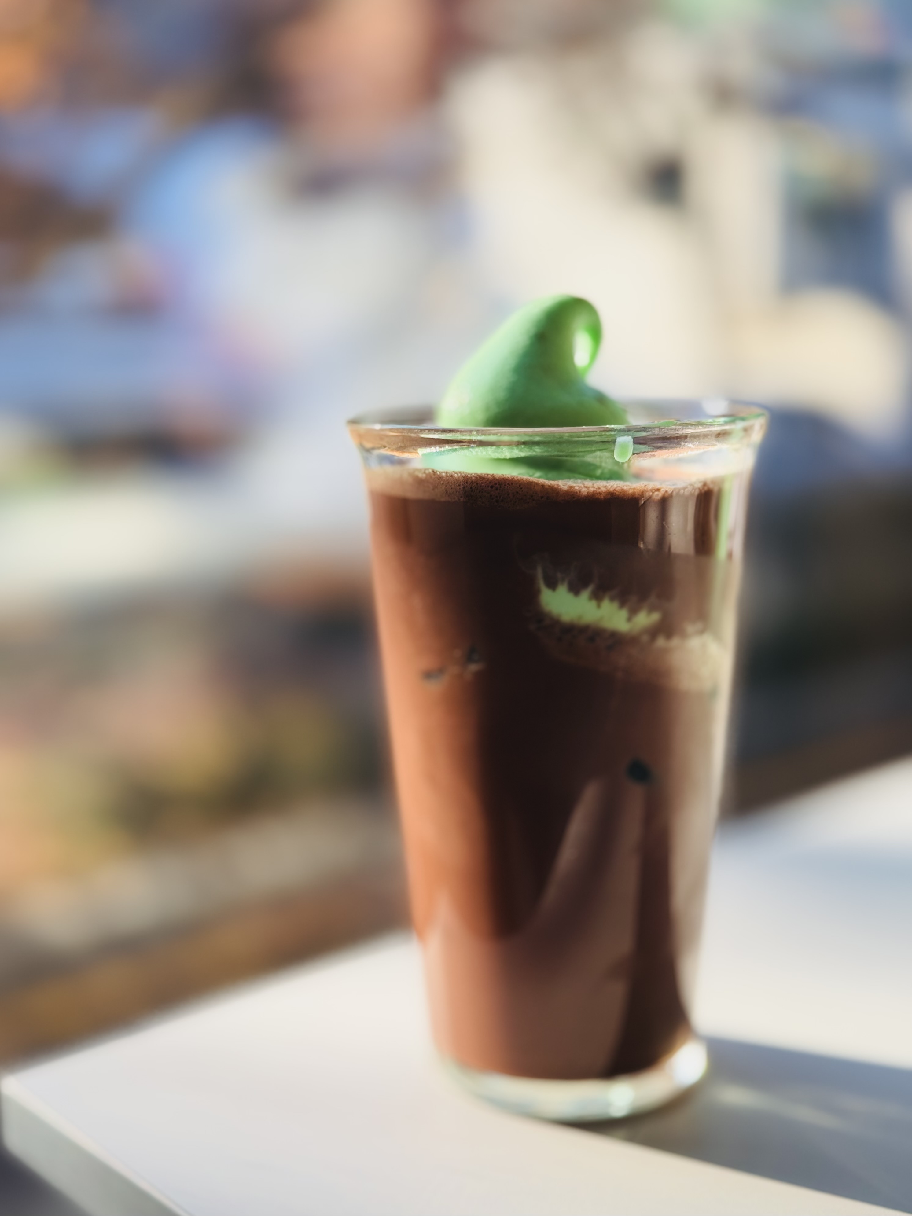 메뉴에는 음료들이 레벨로 구분돼 있습니다. 민트향이 강한 그래서 호불호가 갈릴 수 있는 메뉴들은 따로 표시가 되어 있어요. 입문용으로 반민초파 또는 중립 세력이 선택할 수 있는 것들도 있고요. 민트초코라테는 그 중에서도 레벨이 제법 높은 편입니다. 초코우유에 민트향 아이스크림을 올린 느낌인데 민트 향이 강한 편입니다. 초코향도 그 못지 않게 강해서 저는 맛있게 먹었습니다.