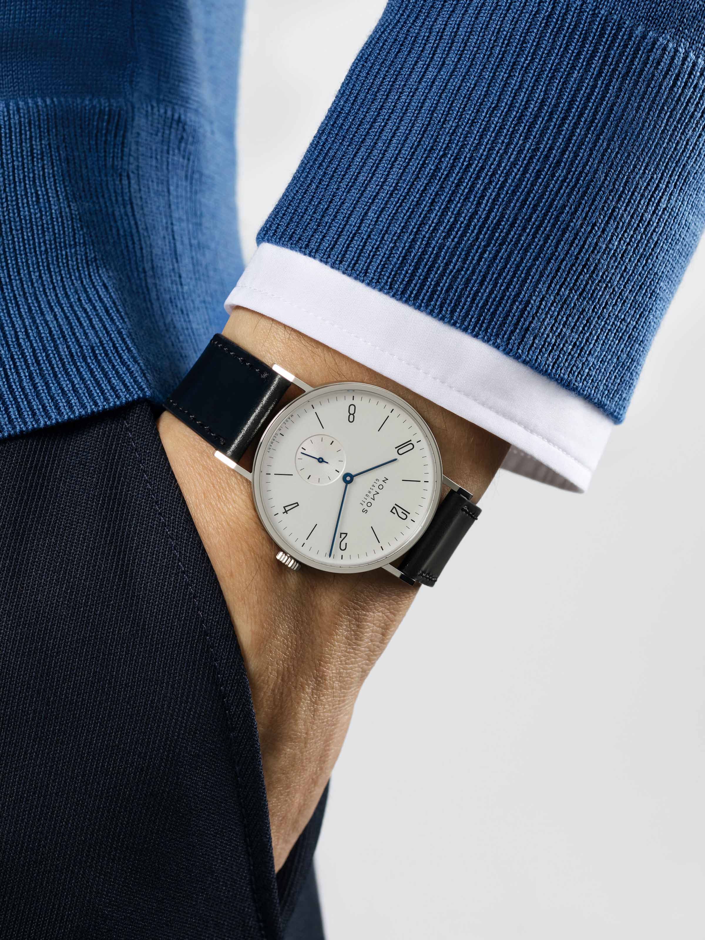 많이들 공감하시겠지만 손이 가장 많이 가는 건 애플워치입니다. 제 경우엔 2022, 2023년 겨울을 모두 해외에서 보내면서 애플워치 하나만을 챙겨 갔습니다. 시간도 자동으로 맞춰 주고 운동량도 체크해 주고 전화/메시지 알림까지 해 주는 최고의 여행용 시계입니다. 시리즈 6 에르메스, 시리즈 7 스테인리스를 거쳤는데 별안간 방출해 버렸습니다. 손이 자주 가는 게 단점이기도 했거든요. 기계식 시계를 좀 더 차고 싶다는 마음에 없애 버리기로 했습니다. 그렇게 보유 중인 시계가 두 개로 줄어들고 3구 보관함의 한 칸이 비어 있으니 자연스레 새 시계를 영입하고 싶더라고요. 이번엔 기준을 이렇게 잡았습니다. 밝은 다이얼과 블루 핸즈의 점잖은 시계. 한때 가장 좋아했던 노모스 탕겐테에 대한 추억 때문이었나봅니다.