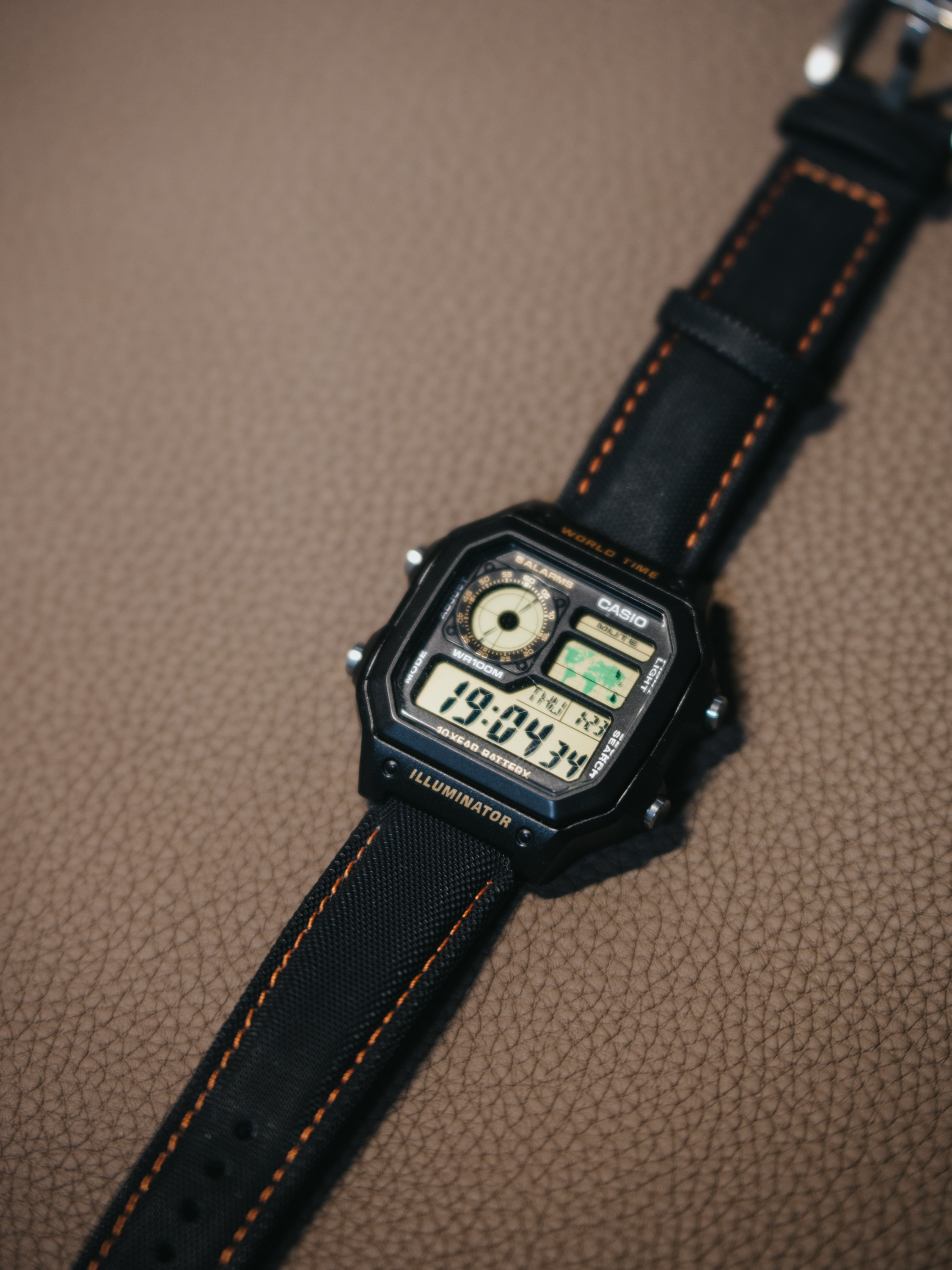 마지막은 전자 시계. 카시오의 월드타임 AE1200 모델입니다. 생일 선물로 받았습니다. 군복무 시절 찼던 돌핀 시계 이후로는 전자 시계를 찬 적도 관심을 가져 본 적도 없었는데 이 시계는 모양이 맘에 쏙 듭니다. 가격도 저렴하고요.