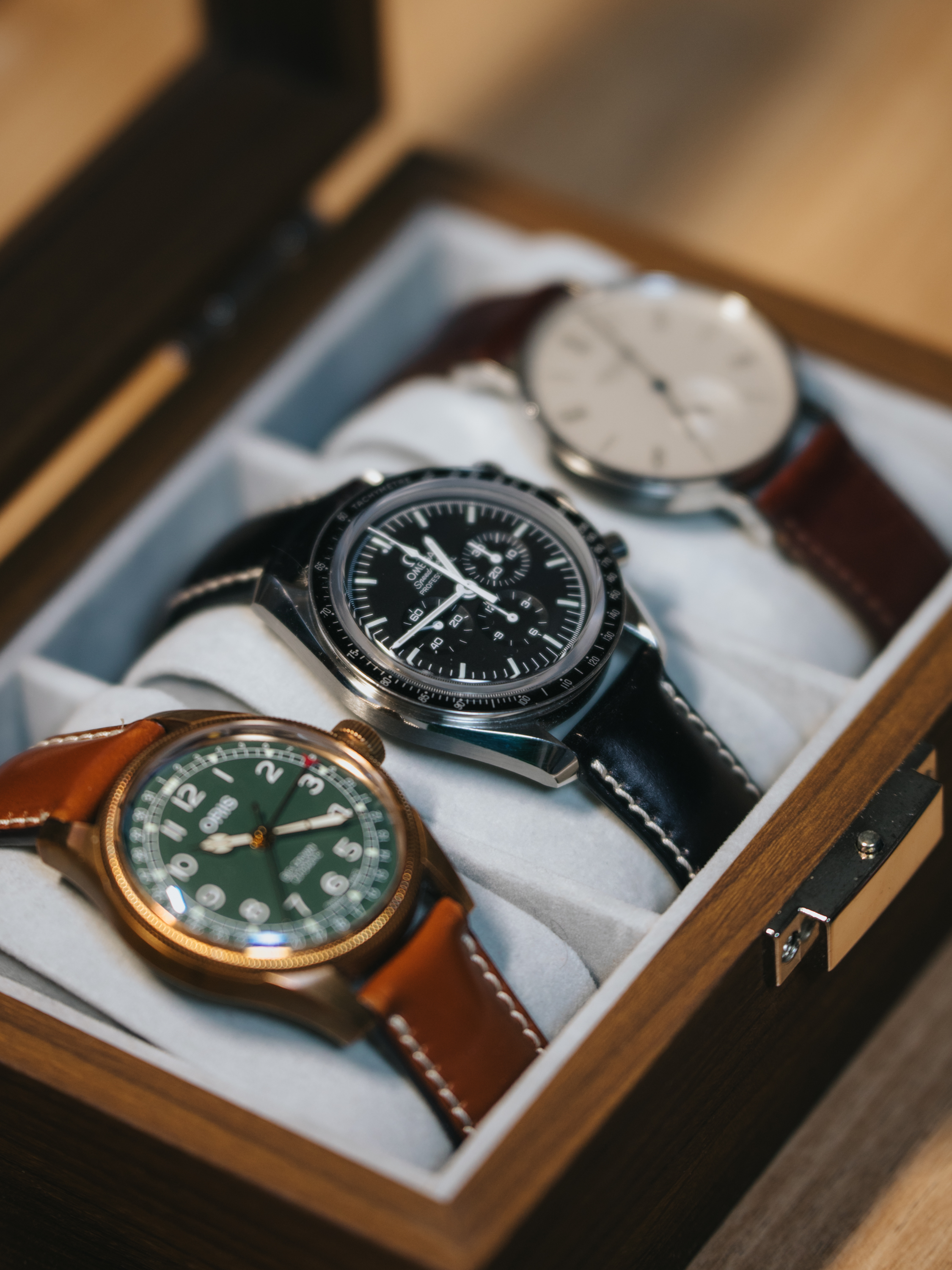 각각이 제 취향에 꼭 맞는 것들이고 활용도도 각각 달라 보고만 있어도 흐뭇했습니다. 나름 가성비도 좋은 것들이었고요. 이것이 삼십대의 제 취향이었다면 사십대 들어 큰 변화가 있었습니다. 이것저것 경험하는 것도 좋지만 평생 찰 수 있는 가능하면 제 캐릭터를 만들어 줄 수 있는 시계를 갖고 싶다고요. 그래서 대부분을 처분하고 오메가 문워치를 구매했습니다.