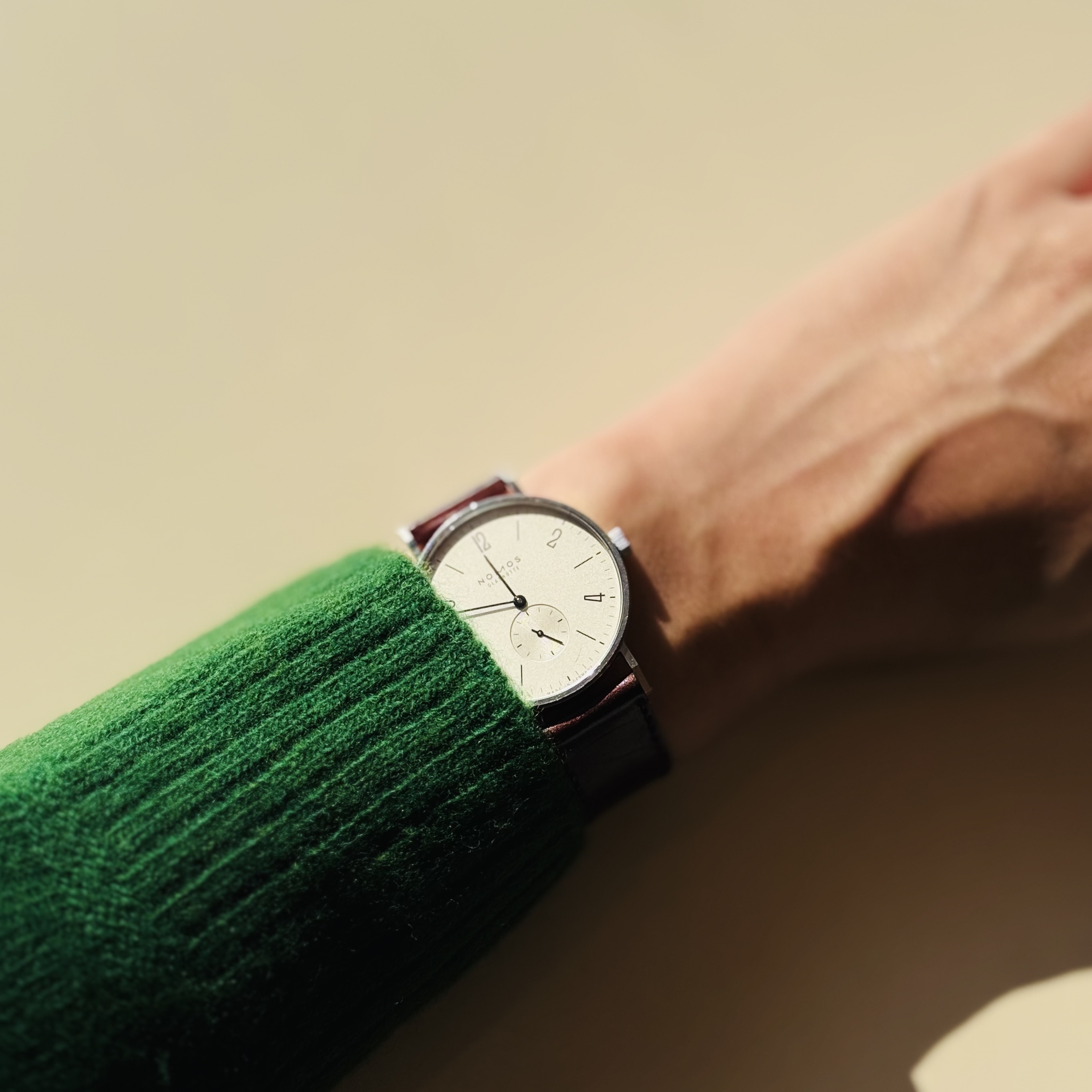 재영입한 노모스 탕겐테. 시계에 관심을 갖게 해 준 시계이자 오랫동안 제 드림 워치였습니다. 30대에 35mm 모델로 영입했었고요. 군더더기 없는 디자인, 시스루 백을 통해 알파 무브를 감상하는 즐거움이 좋았던 시계였습니다. 라인업을 재구성하면서 여러 모델을 후보로 뒀지만 제가 세웠던 기준이 결국 이 탕겐테에서 따 온 것이라 생각하니 이걸 다시 들이는 게 낫겠단 생각이 들더라고요. 마침 좋은 매물이 있어 중고로 영입했습니다.