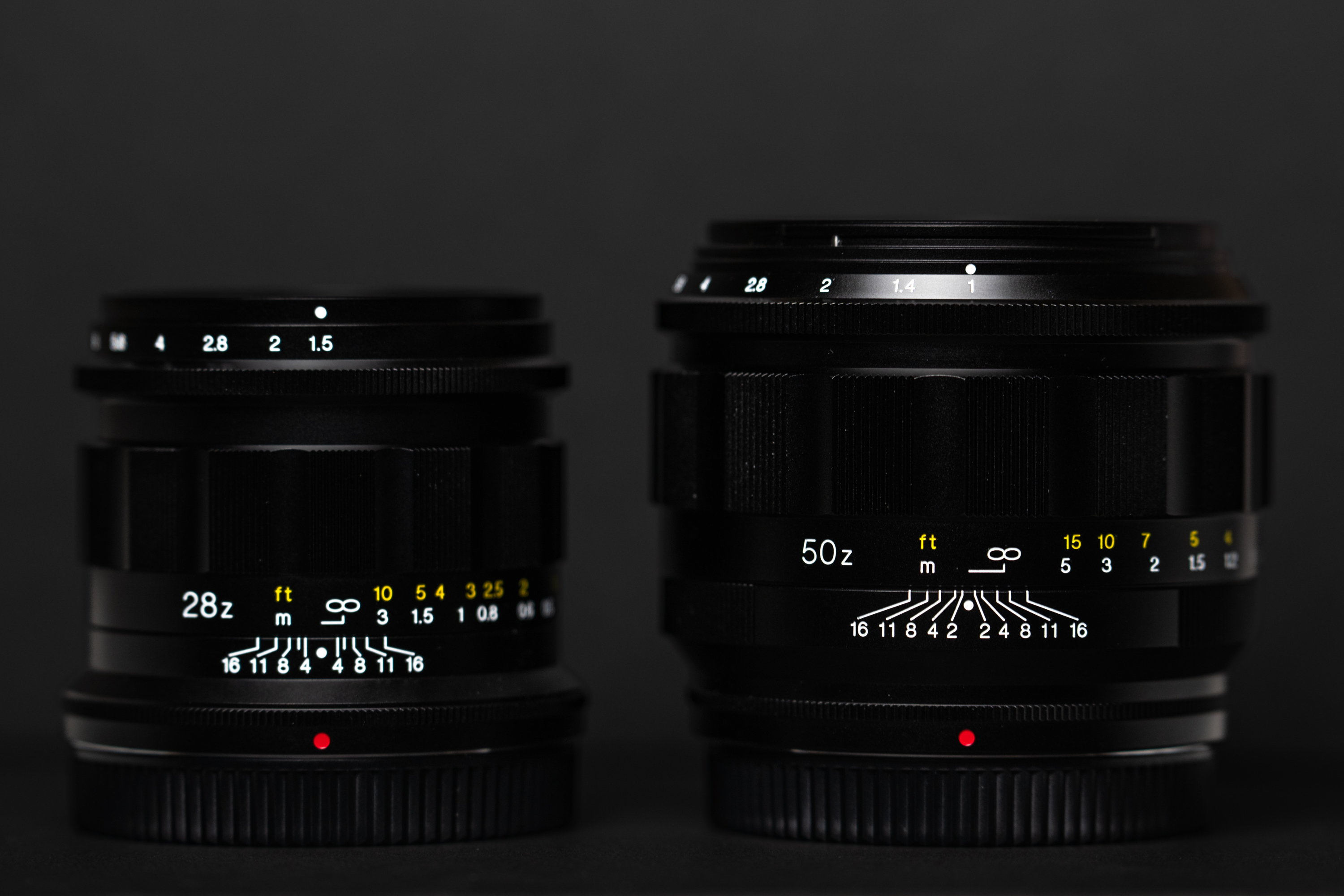 경통 지름이 67mm에 이르는 대구경 렌즈. F1의 조리개 값을 감안하면 이 역시 컴팩트하다 할 수도 있지만 보이그랜더 렌즈 중에서는 대형 렌즈입니다. Z 마운트에 맞춘 디자인은. 다른 렌즈들과 함께 두고 보니 일관된 요소들이 눈에 띕니다. 60년대 클래식 렌즈를 연상 시키는 초점 링 디자인, 노란색 레터링이 그것입니다. 경통과 초점링, 조리개 링 모두를 메탈 소재로 제작해 단단하고 고급스러운 인상을 줍니다.