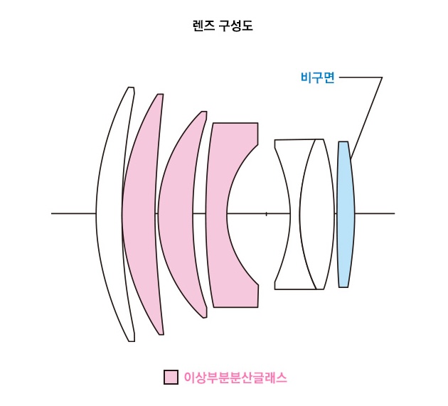6군 7매 (비구면 렌즈 1매, 이상부분분산글래스 3매)