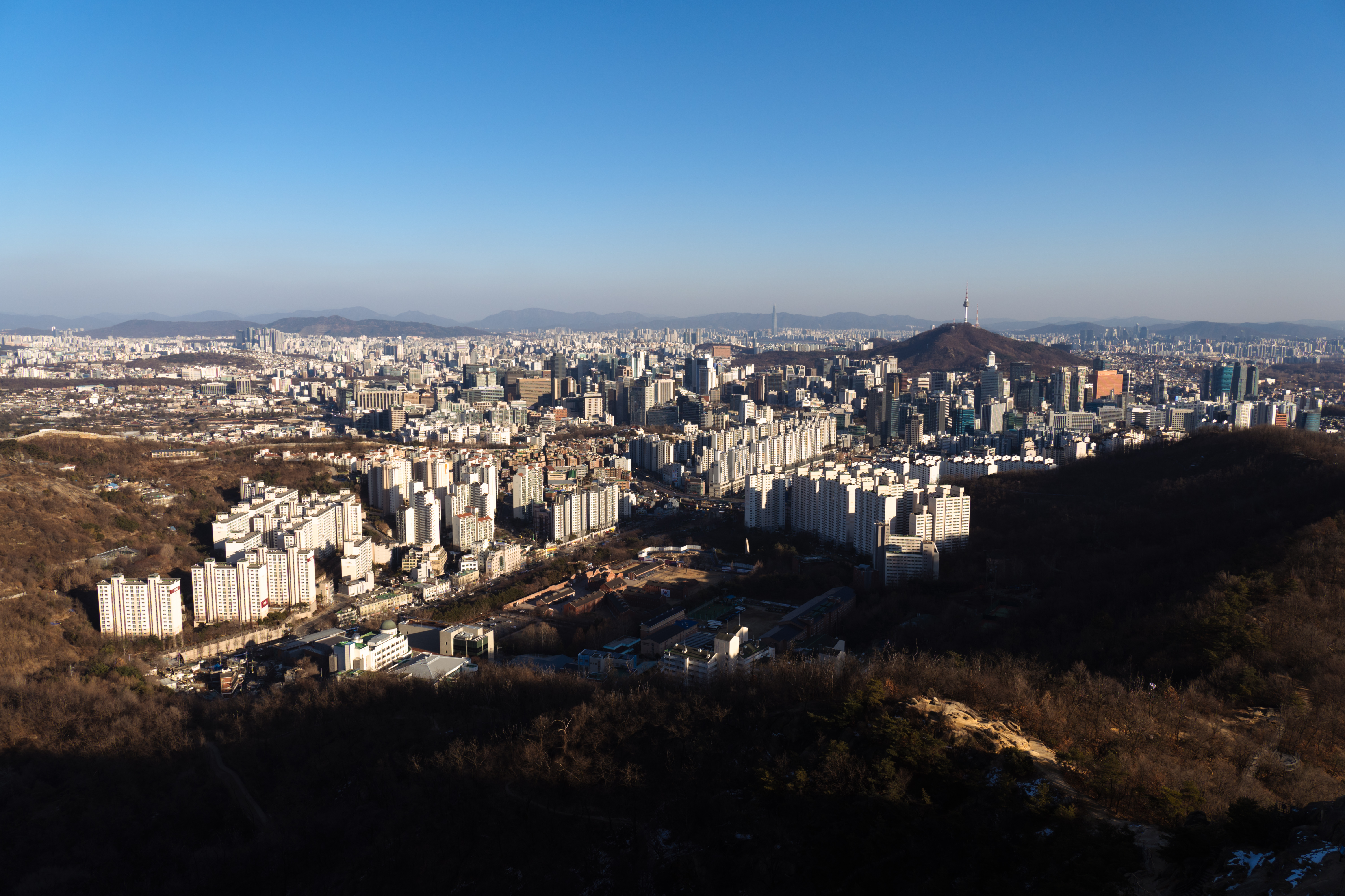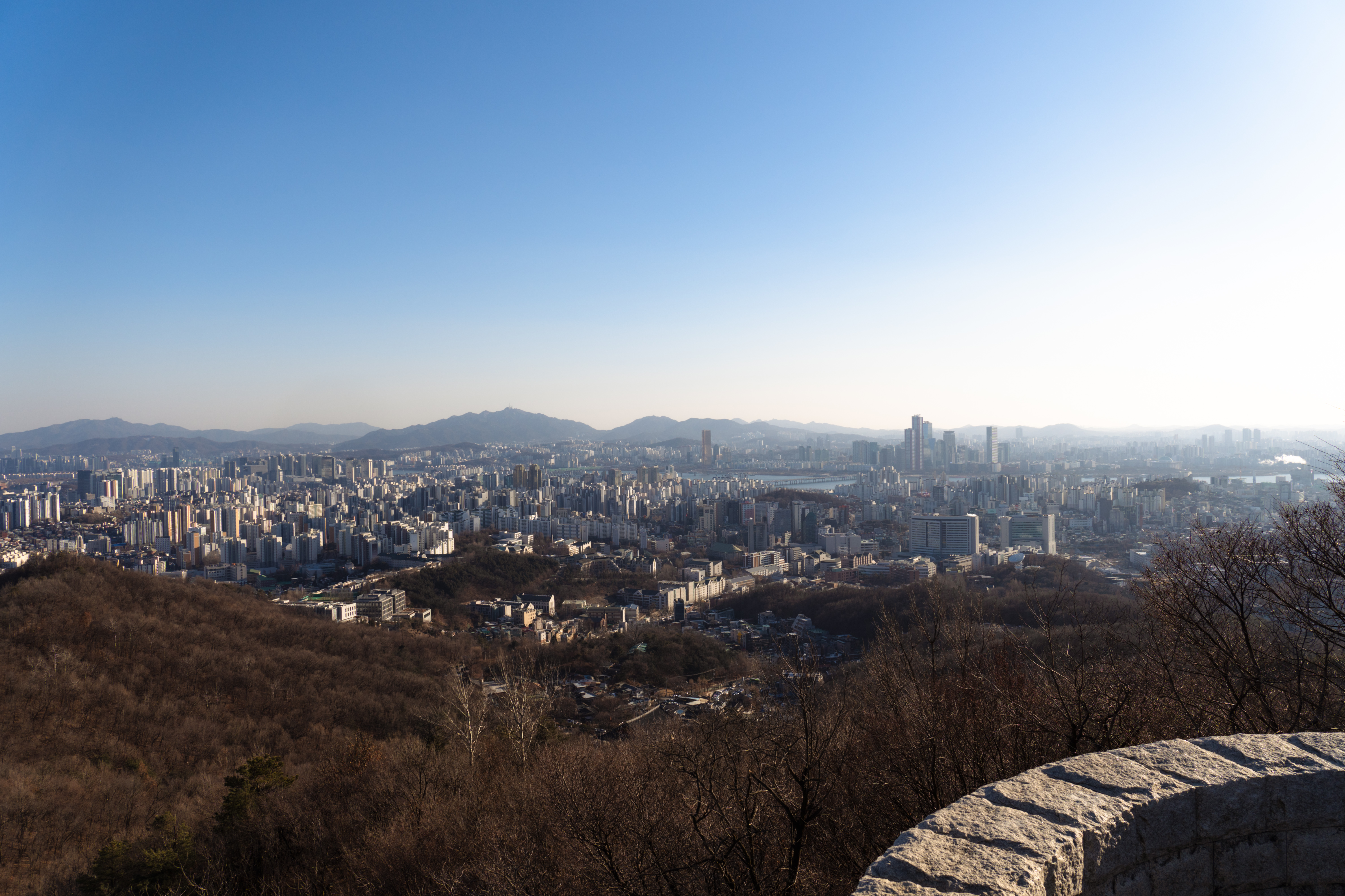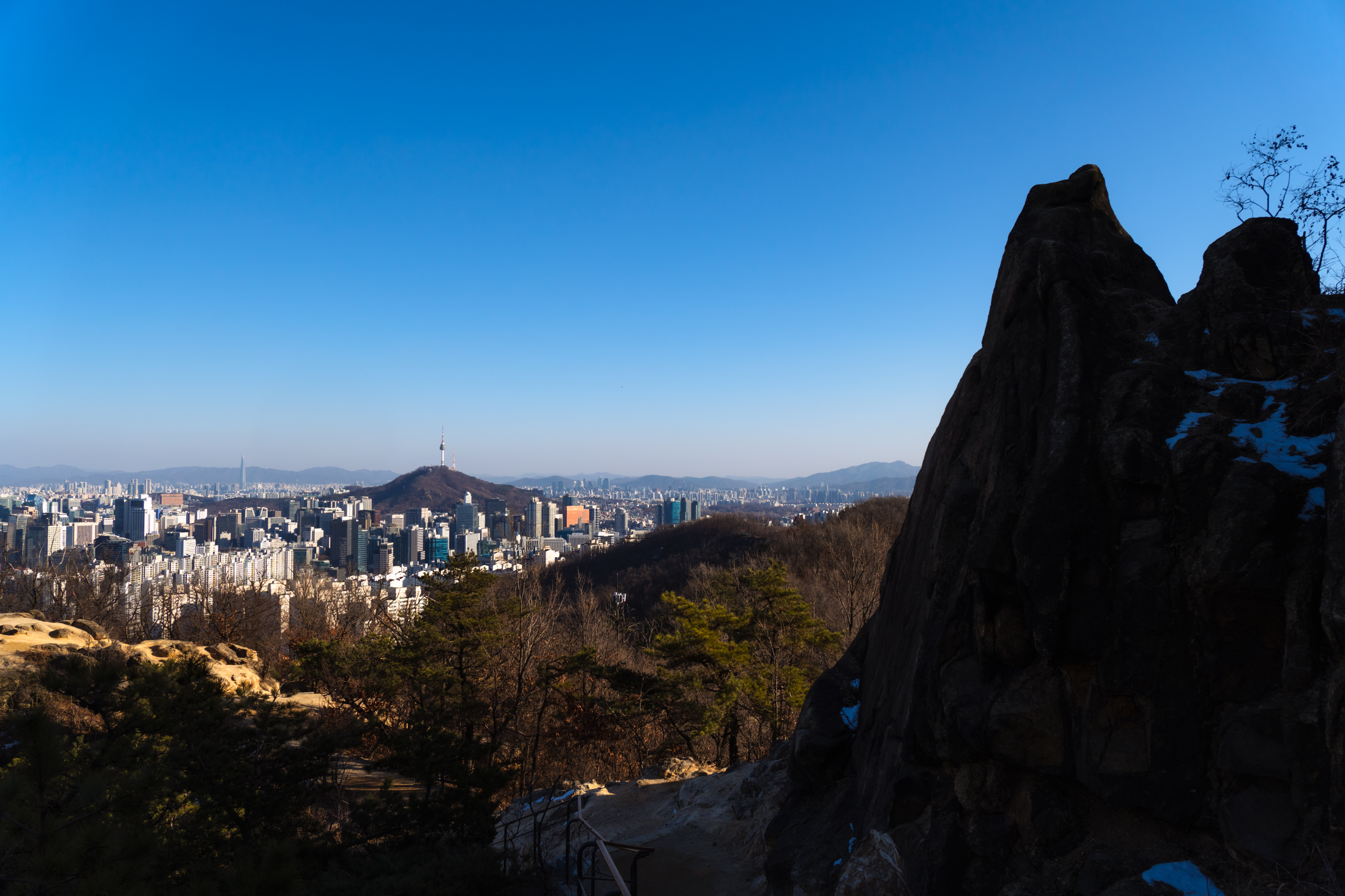 고작 이삼십 분 올라왔는데 눈에 보이는 풍경이 확연히 달라지는 것이 고생한 보람이 있었습니다. 무엇보다 남산과 N타워를 가리는 것 없이 정면으로 볼 수 있다는 것, 저 멀리 잠실 롯데타워까지 보인다는 것이 좋더군요. 많은 분들이 서울 시내 전망 촬영을 위해 남한산성 등지를 찾으시는데 여기도 충분히 볼만하단 생각합니다. 강남/북 다른 방향으로 감상하는 매력이 있겠죠.