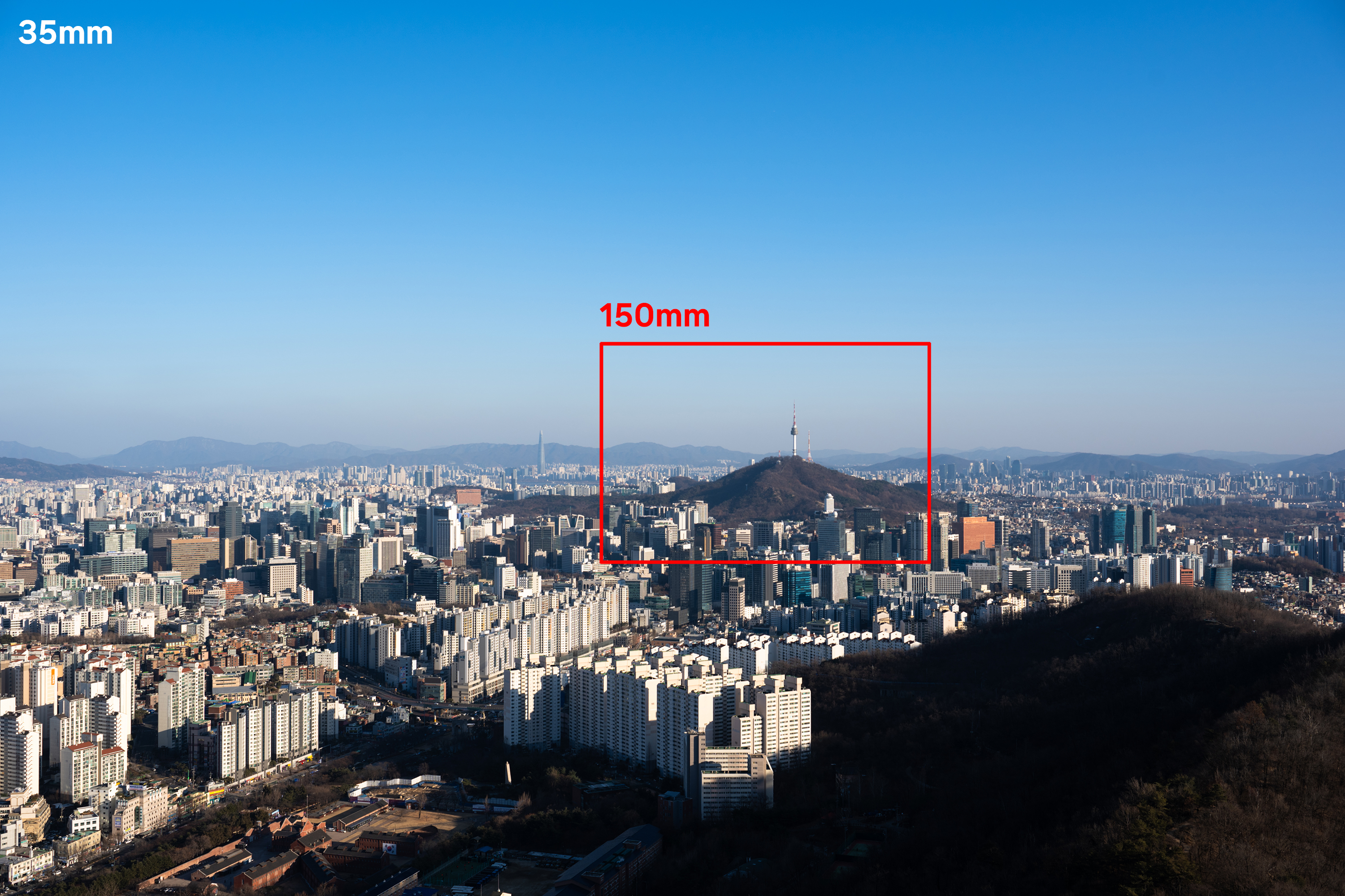 초점 거리에 따른 프레임 차이 (35/150mm)