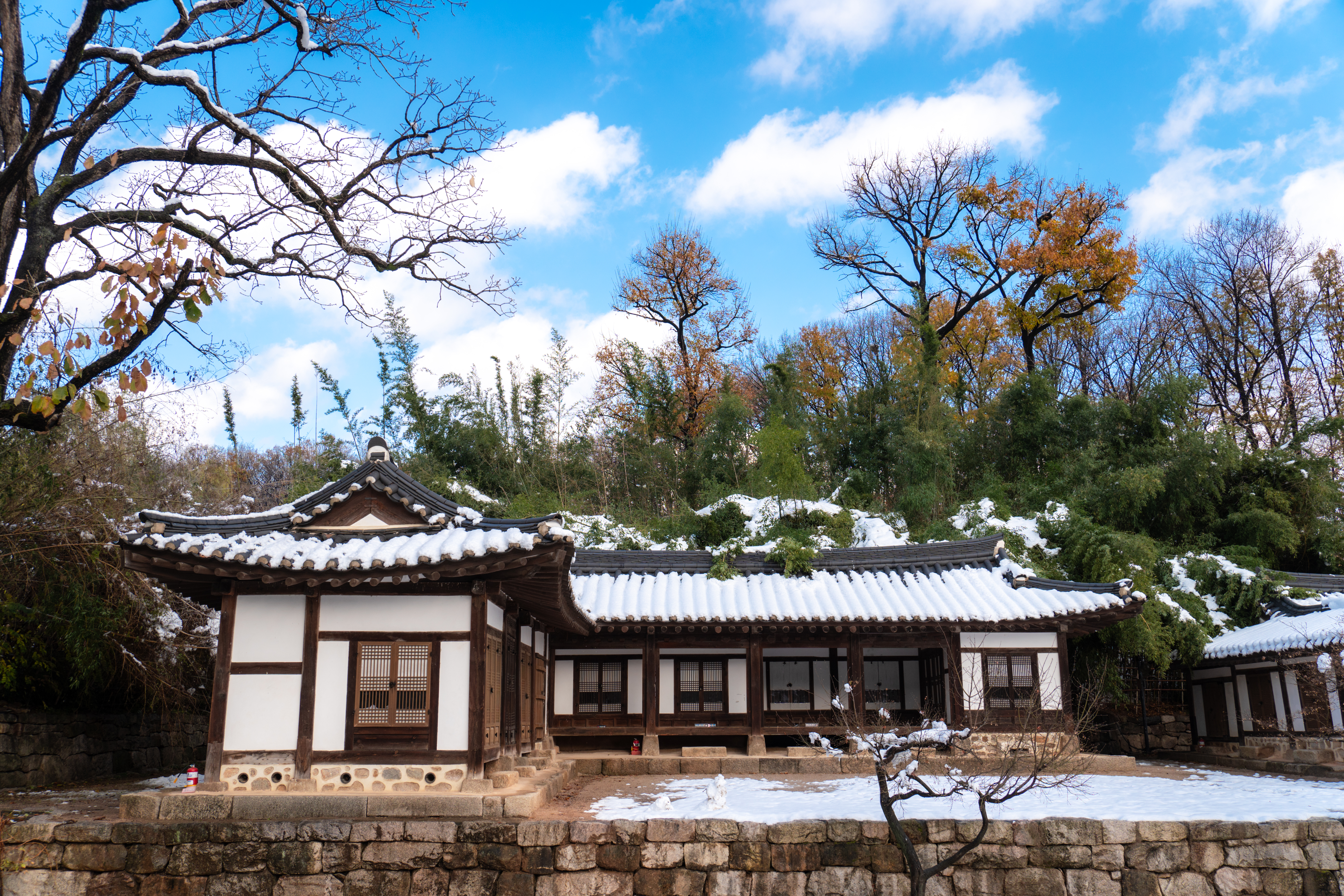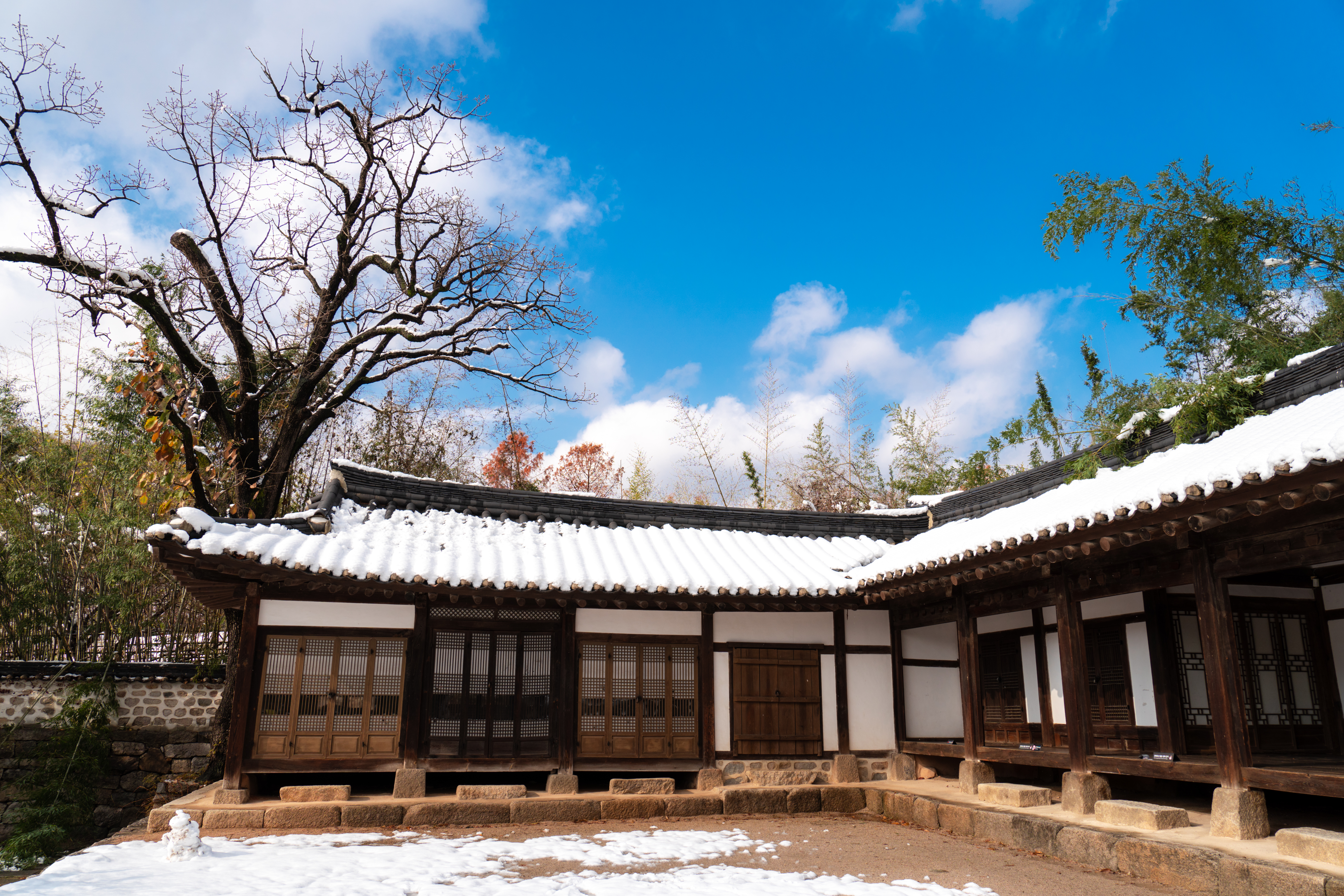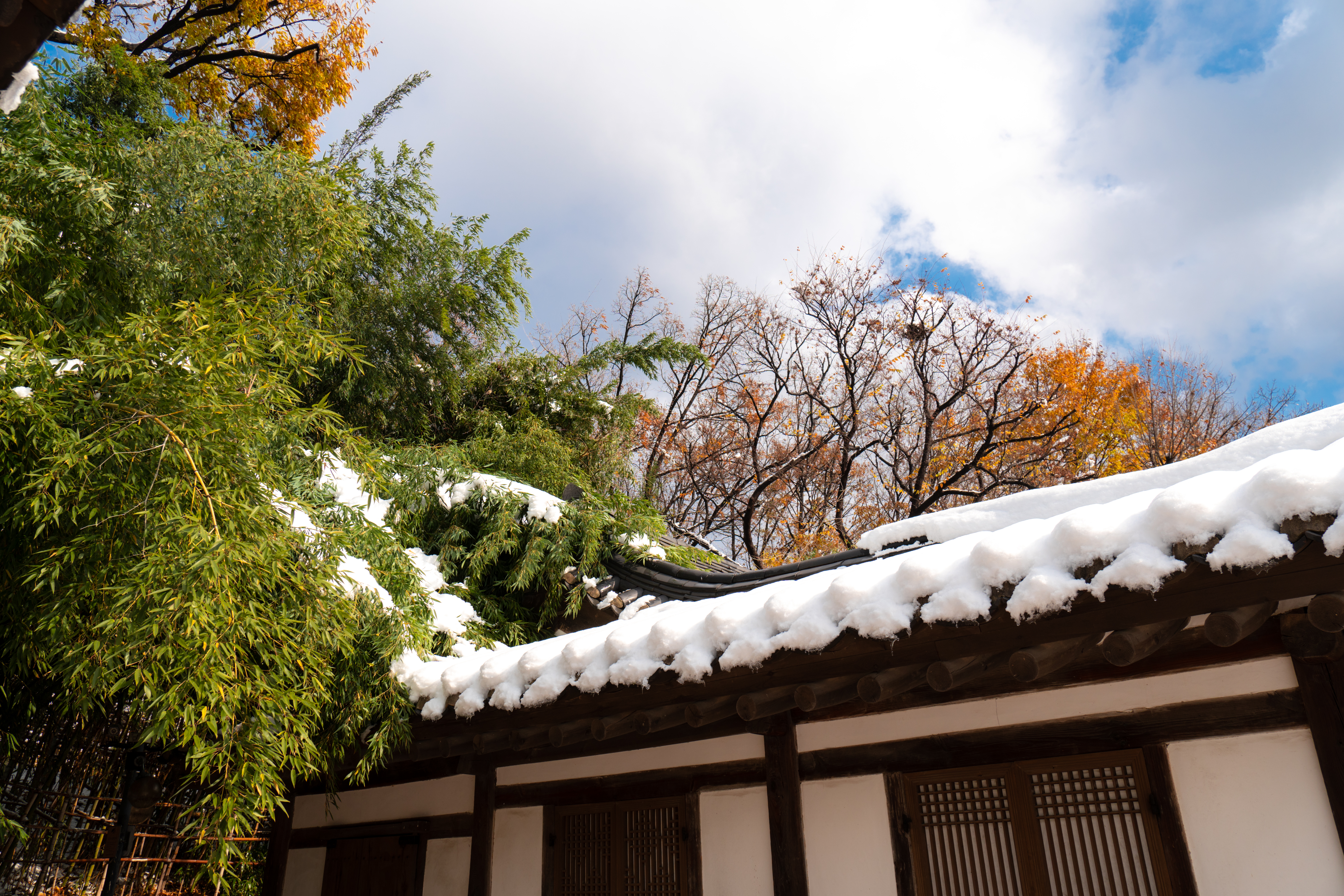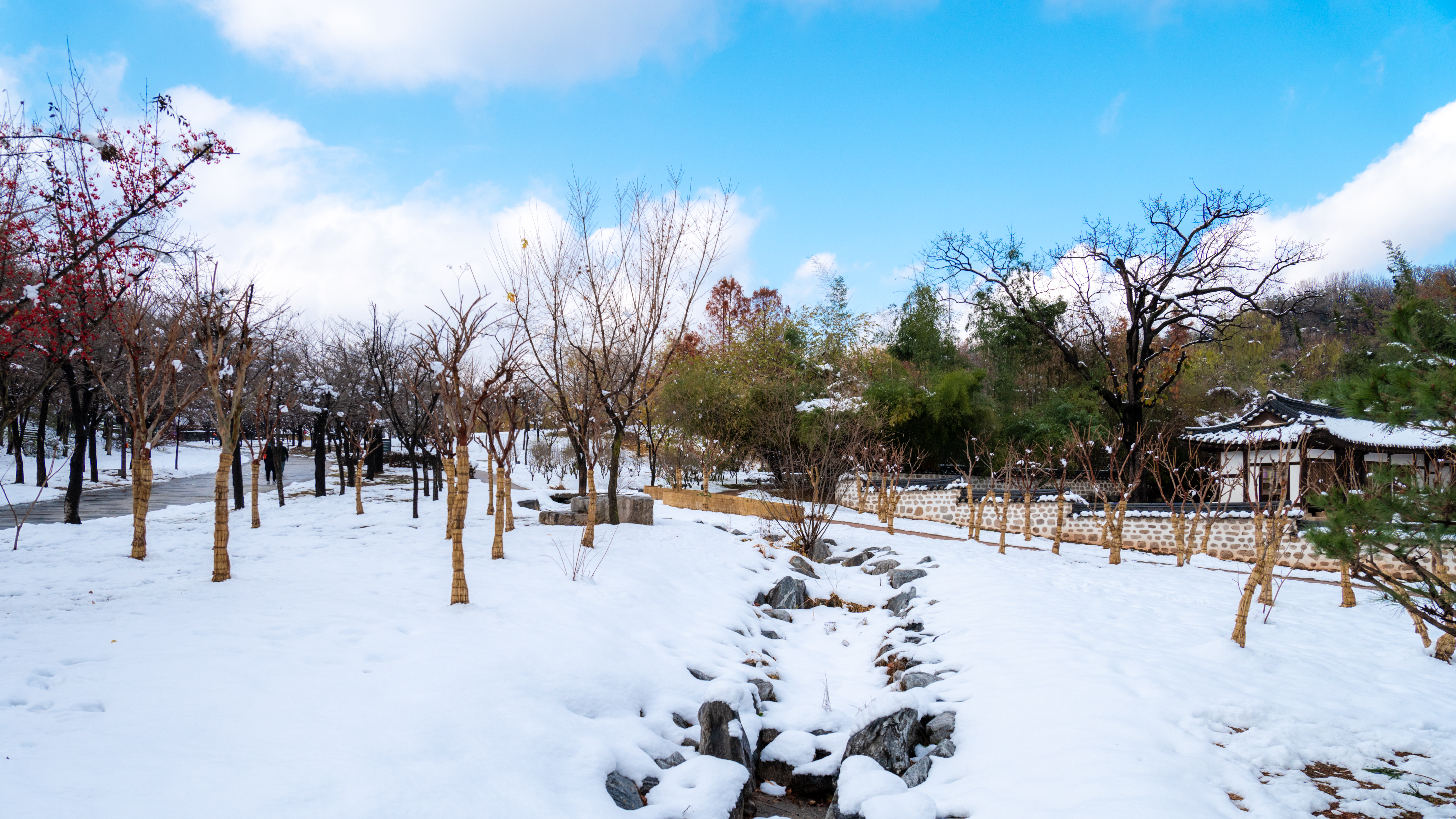 이날은 가방 없이 ZV-E10과 탐론 17-70mm F2.8 렌즈 조합을 점퍼 주머니에 넣고 다녔습니다. 촬영하는 동안엔 스트랩을 목에 걸고 다니다 돌아갈 때는 다시 주머니에 넣으면 되니 산책에 전혀 방해를 받지 않습니다. 무게도 가벼운 편이고요. 밤사이 눈이 펑펑 내려 쌓인 것을 보고 이 공원에 있는 한옥이 생각 났어요. 북촌 한옥마을이나 경복궁처럼 눈 온 날엔 한옥을 찾게 되더라고요. 여기에도 소규모지만 한옥 두 채와 돌담이 있습니다.