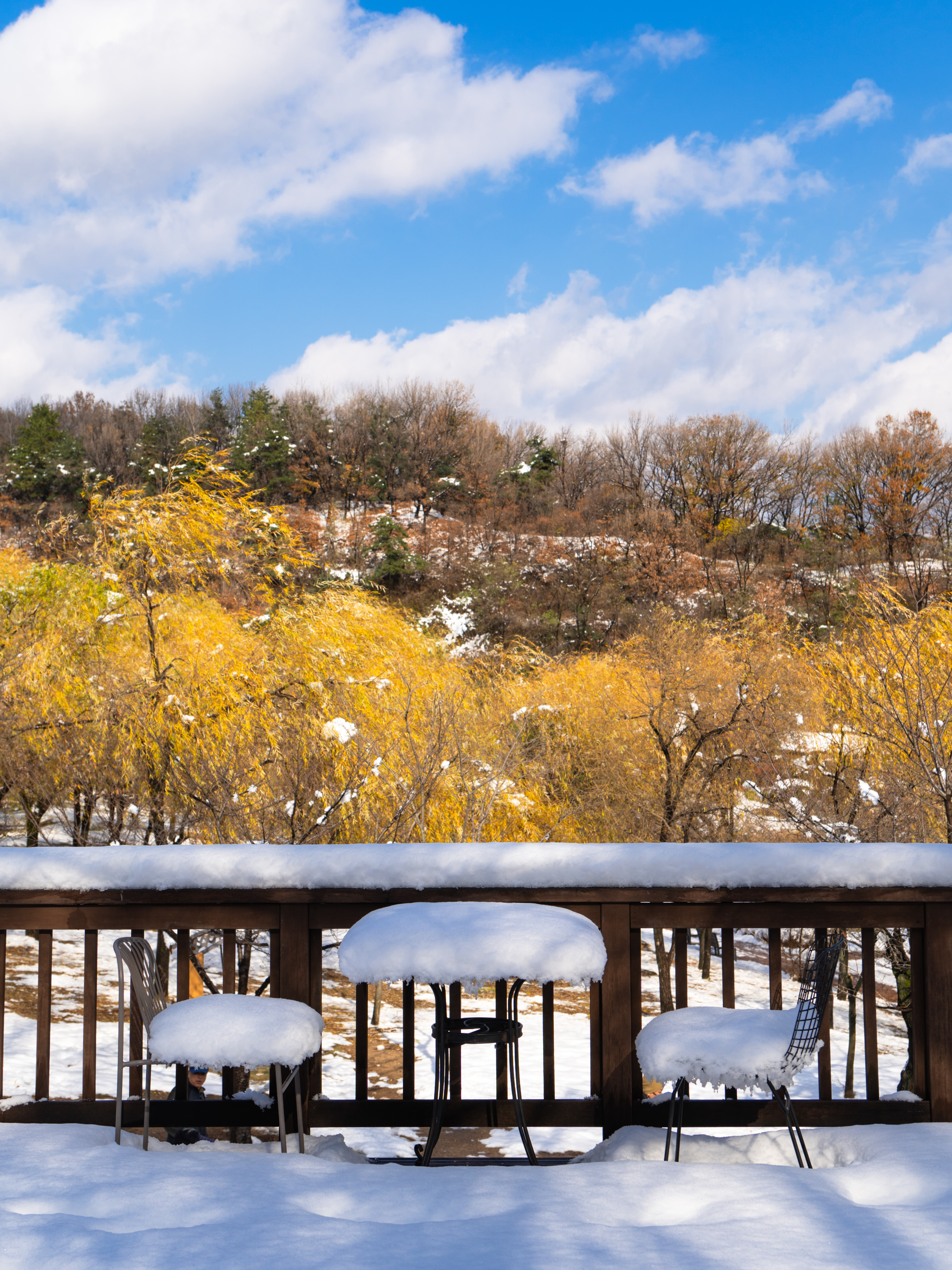 아직 사람들이 많이 다녀가지 않은 탓에 눈은 고스란히 쌓여 있었습니다. 이제 막 떨어진 가을 낙엽과의 어색한 조화를 보는 것이 재미있었어요. 신발이 모두 빠질 정도로 깊은 눈밭을 걸으면서 시간 내 오기를, 가방 챙기지 않은 것을 잘했다고 생각했습니다. 늘 카메라를 챙기는 게 힘들 수 있지만 하필 그럴 때 이렇게 예쁜 풍경을 만나면 아쉽잖아요. 한동안 천대받던 카메라들이 레트로 트렌드와 감성을 입고 다시 유행템이 되었는데 작고 가벼운 데일리 카메라를 하나 정해 두는 것도 좋겠습니다. 더 작은 카메라도 많겠지만 여러 요소들을 고려했을 때 제가 사용하는 ZV-E10과 탐론 17-70mm F2.8도 추천할 만한 조합입니다.