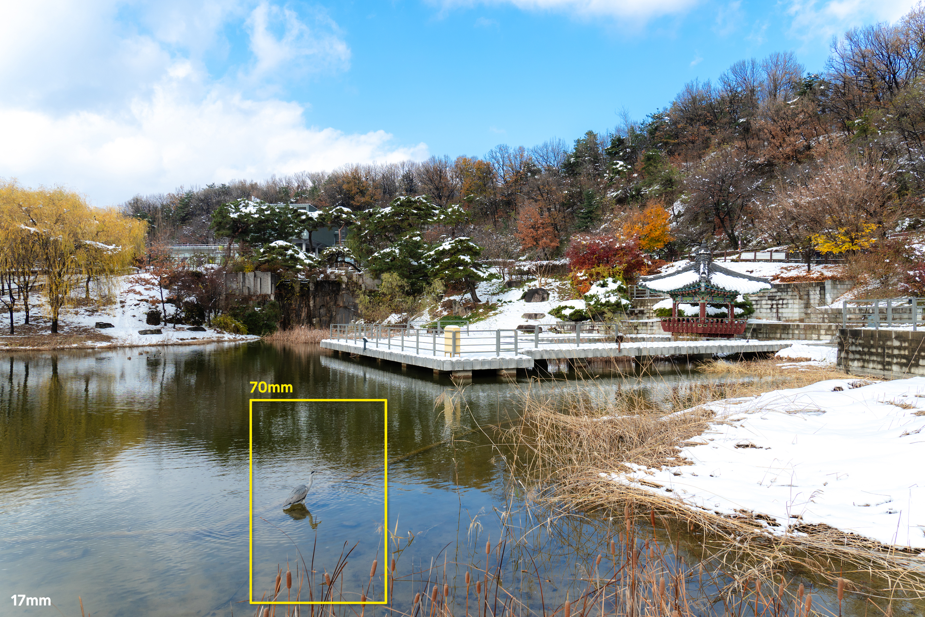 환산 약 45mm의 표준 초점거리인 29mm와 촬영 영역을 비교해 보았습니다. 광학 2배 줌이 채 되지 않는 구간이지만 촬영 영역의 차이는 확연합니다. 광각에선 1mm에 따라 결과물의 느낌이 크게 갈리는 만큼 이 렌즈로 풍경 사진을 촬영할 때는 17mm를 가장 많이 사용하게 됩니다. 그리고 부족함 없이 시원시원합니다. 물론 더 넓은 초광각을 지원하면 좋겠지만 그럼 망원에서 손해를 보게 될 테니까요. 어쩌면 조리개 값도 F2.8을 유지할 수 없을 지도 모르고요.