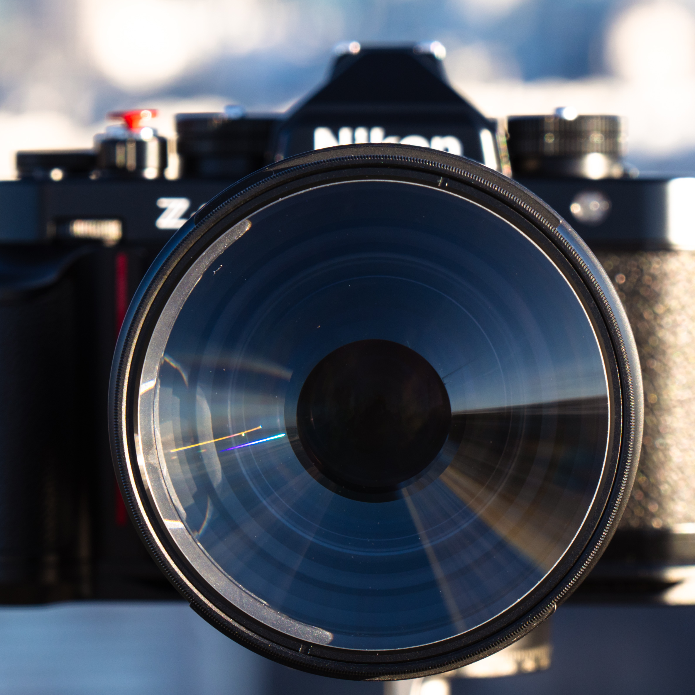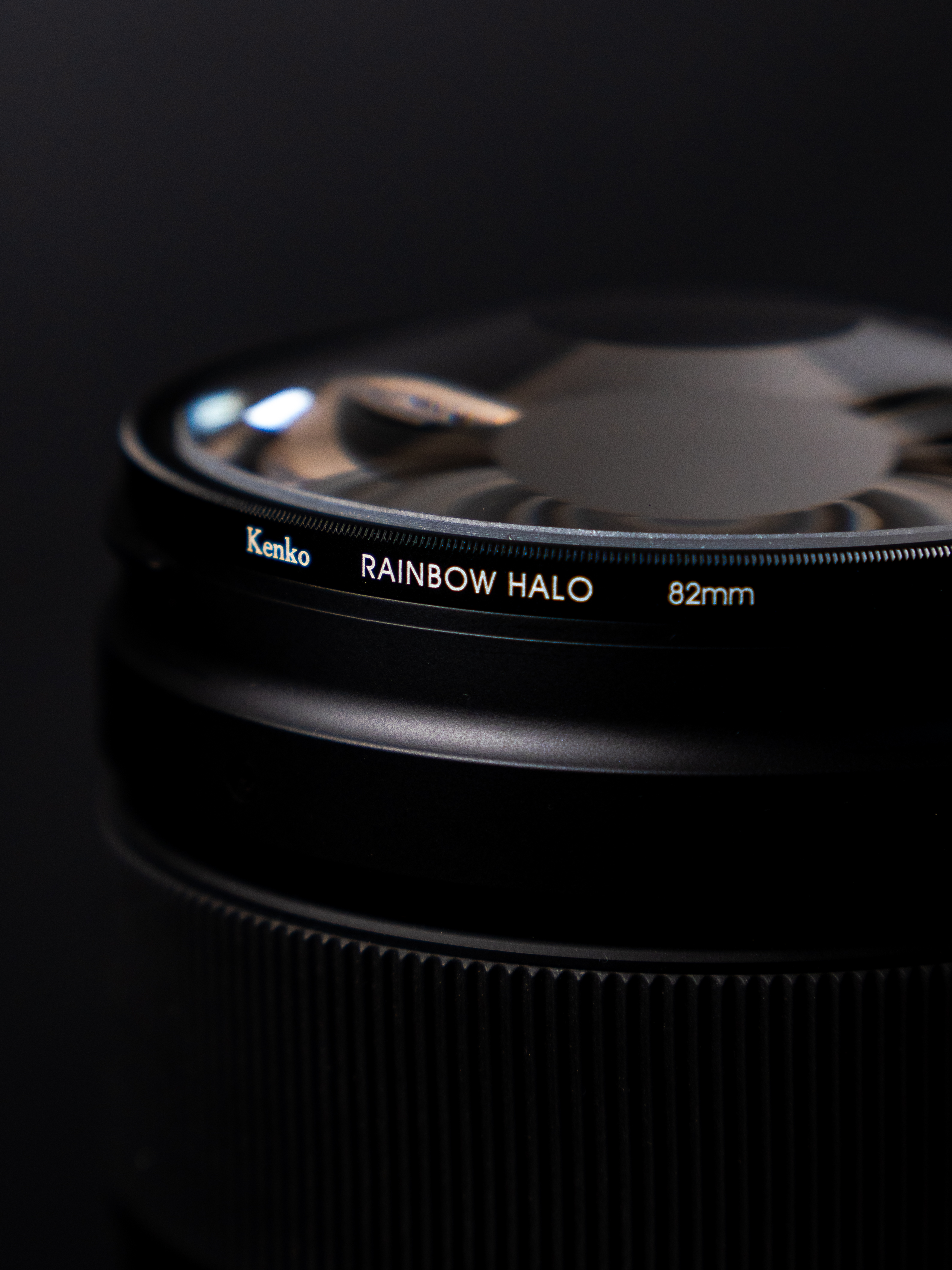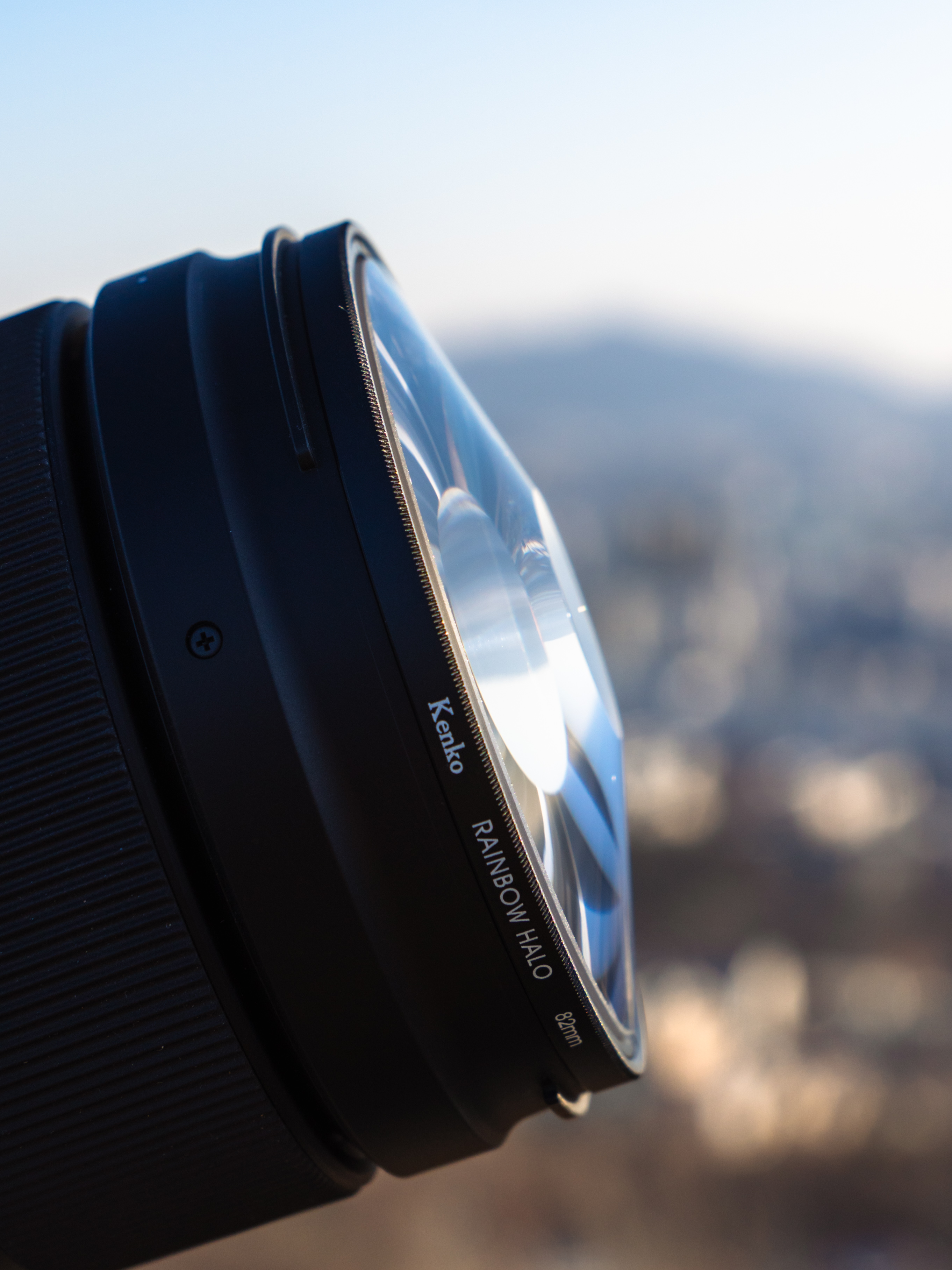 필터가 결합된 렌즈는 탐론 35-150mm F2-2.8 Di III VXD입니다. 측면에서 보면 확연히 솟아오른 것을 볼 수 있습니다. 스텝업 링으로 82mm 미만 구경의 렌즈에도 장착할 수 있지만 그만큼 주변부 헤일로 효과는 손해를 봅니다. 줌렌즈에서는 초점거리에 따라 표현에 차이가 있고요.