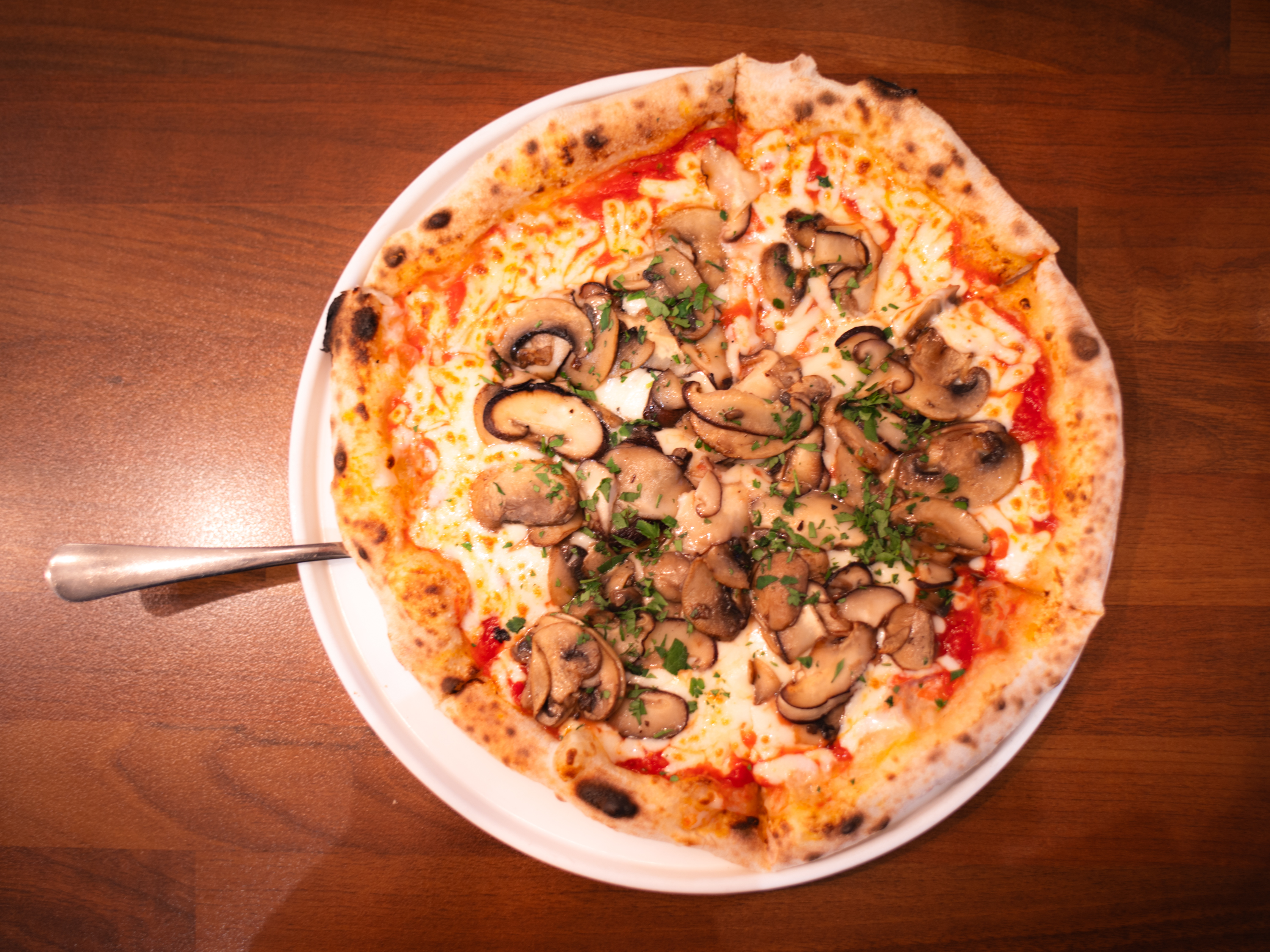 피자와 파스타, 라자냐 등 다양한 이탈리아 메뉴가 있지만 이날의 목표는 명확히 피자였습니다. 재료부터 굽는 방식까지 이탈리안 스타일을 고수하는 듯 보여서 그 맛이 궁금했거든요. 1인 1메뉴를 시켜야 하기에 두 판의 피자를 시켰습니다. 첫 번째로 나온 것은 풍피자. 모짜렐라, 토마토 소스, 표고버섯, 양송이, 이탈리안 파슬리를 올린 피자입니다. 보기엔 빛깔이 동네 피자 같지만 먹으니 다르긴 다르더라고요.