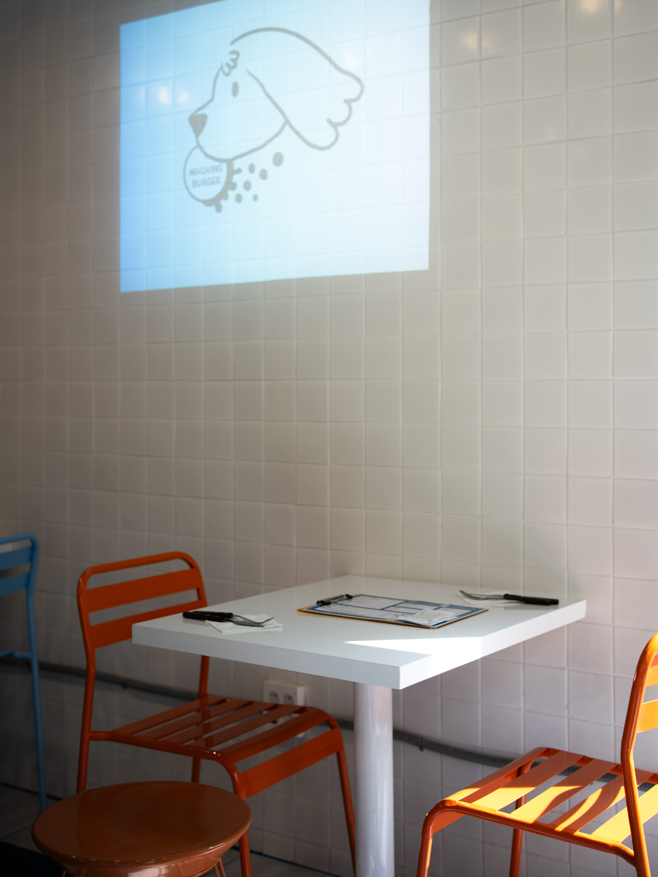 매장은 작지만 해가 잘 들고 흰색 타일 덕에 환한 실내는 마음에 들었습니다. 매장 곳곳에 햄버거 테마의 소품들이 있는 것이 인상적이었어요. 메뉴판의 메뉴들도 그렇고 여성 취향에 맞췄단 생각이.