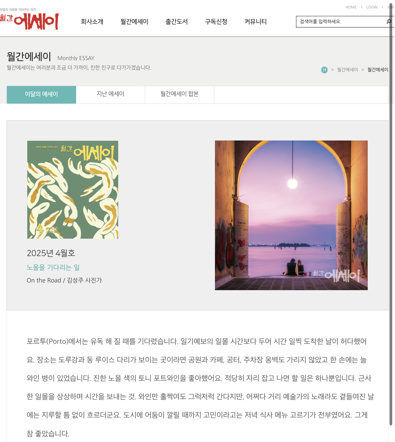 월간에세이 - 마음과 마음을 이어주는 잡지 - 월간에세이 - 이달의 에세이