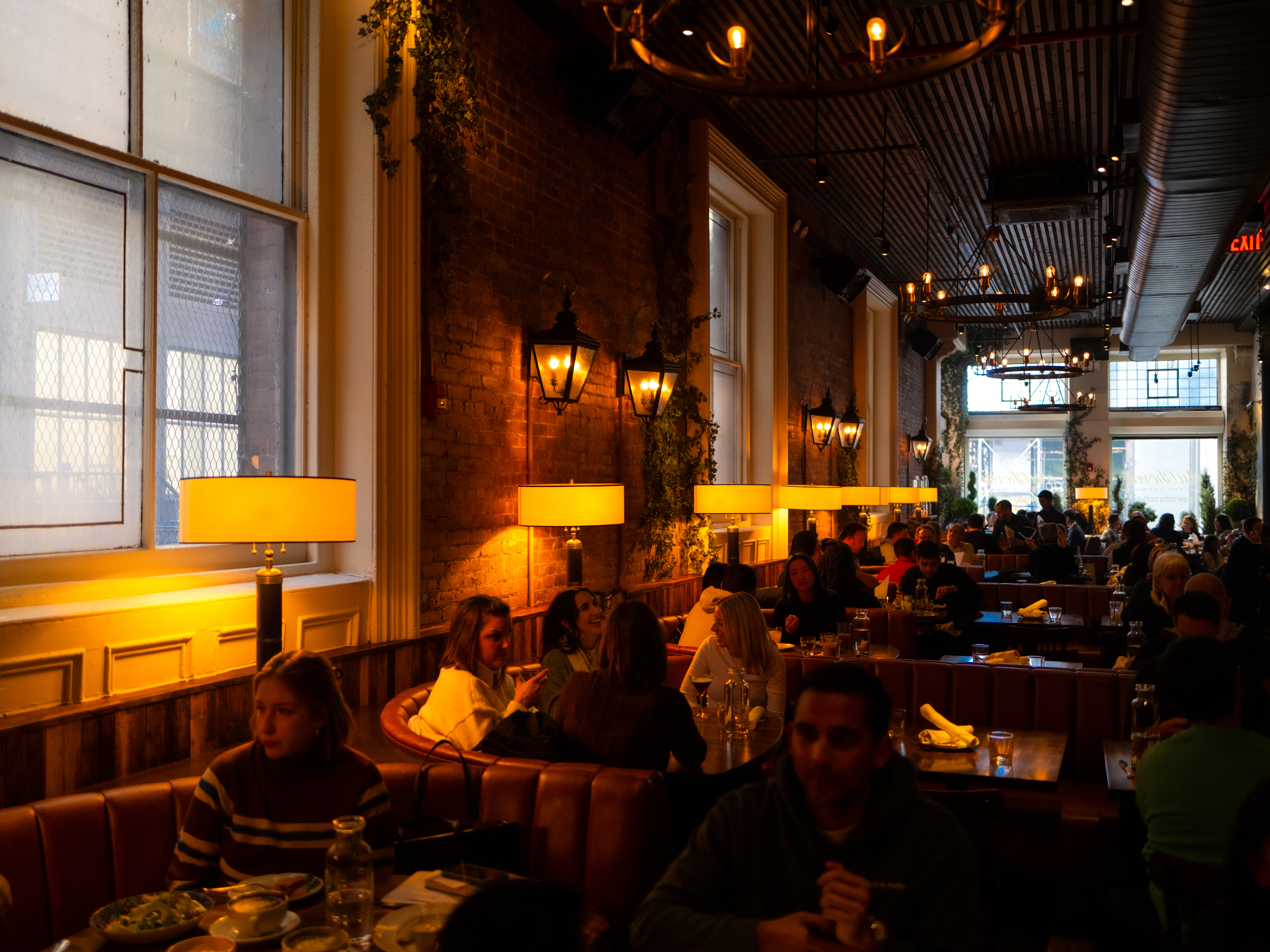 샛노란 조명들에 의지한 실내는 대낮에도 컴컴해서 점심에 왔는데도 술을 한 잔 해야 할 것만 할 것 같은 기분이었어요. 다행히 환한 창가쪽에 자리를 안내 받았습니다. 곡선으로 이어진 붉은 색 가죽 소파 덕에 식당 내부는 꽤나 중후해 보입니다. 수십년 전 뉴욕 고급 식당의 풍경이 이렇지 않았을까, 하고요.