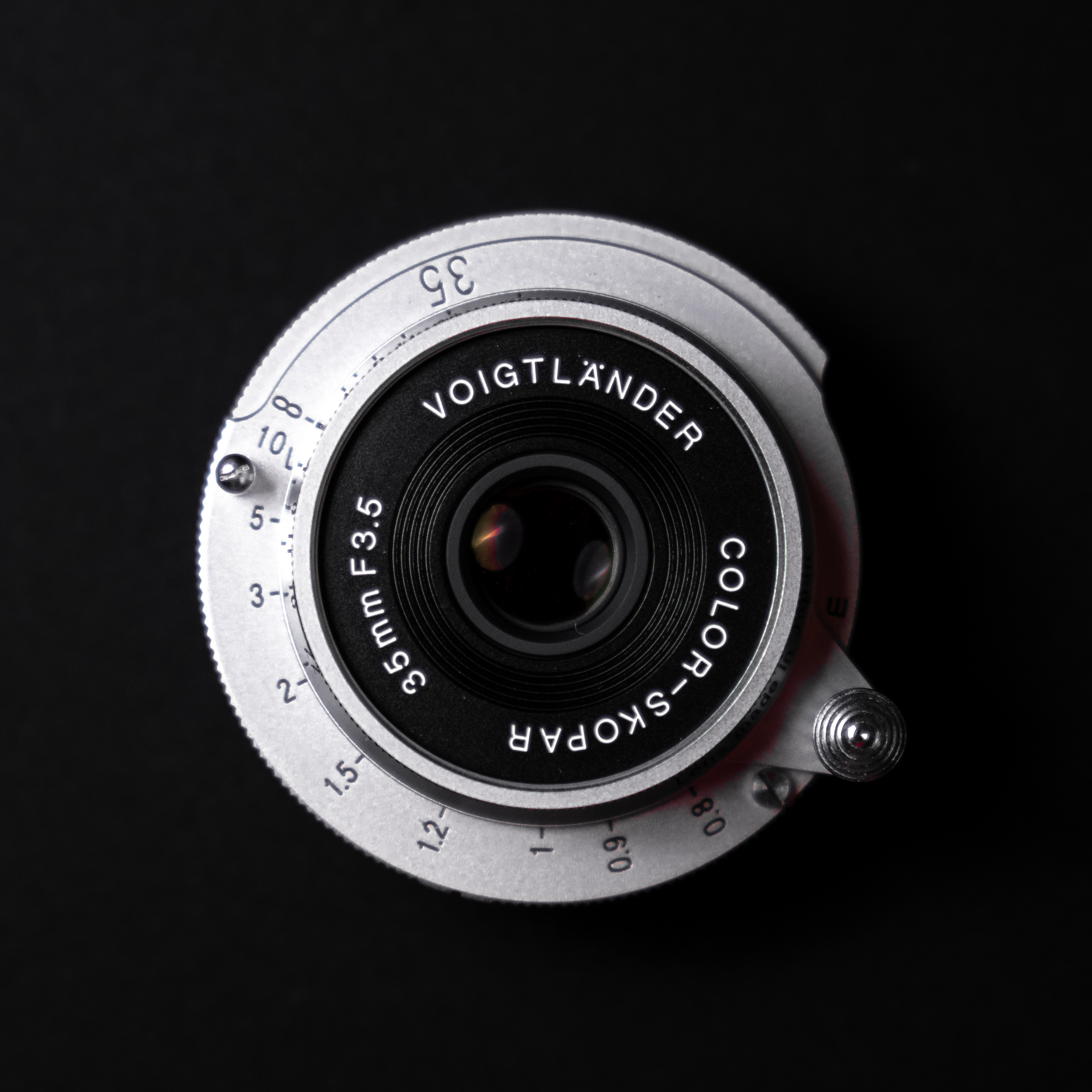 마운트부보다 확연히 좁고 길이도 매우 짧은 경통이 앙증맞아 보입니다. 그 안에 오밀조밀 조리개 링이며 거리계, 조절 노브까지 꽉 들어차 있는 모습이 꼭 기계식 손목 시계의 무브먼트를 보는 것 같습니다. 라이카의 주마론 28mm F5.6 등 올드 렌즈를 연상 시키는 외형은 보이그랜더에서도 여럿 채용해 왔죠. 컬러-스코파 28mm F2.8, 헬리어 40mm F2.8 등이 있습니다.