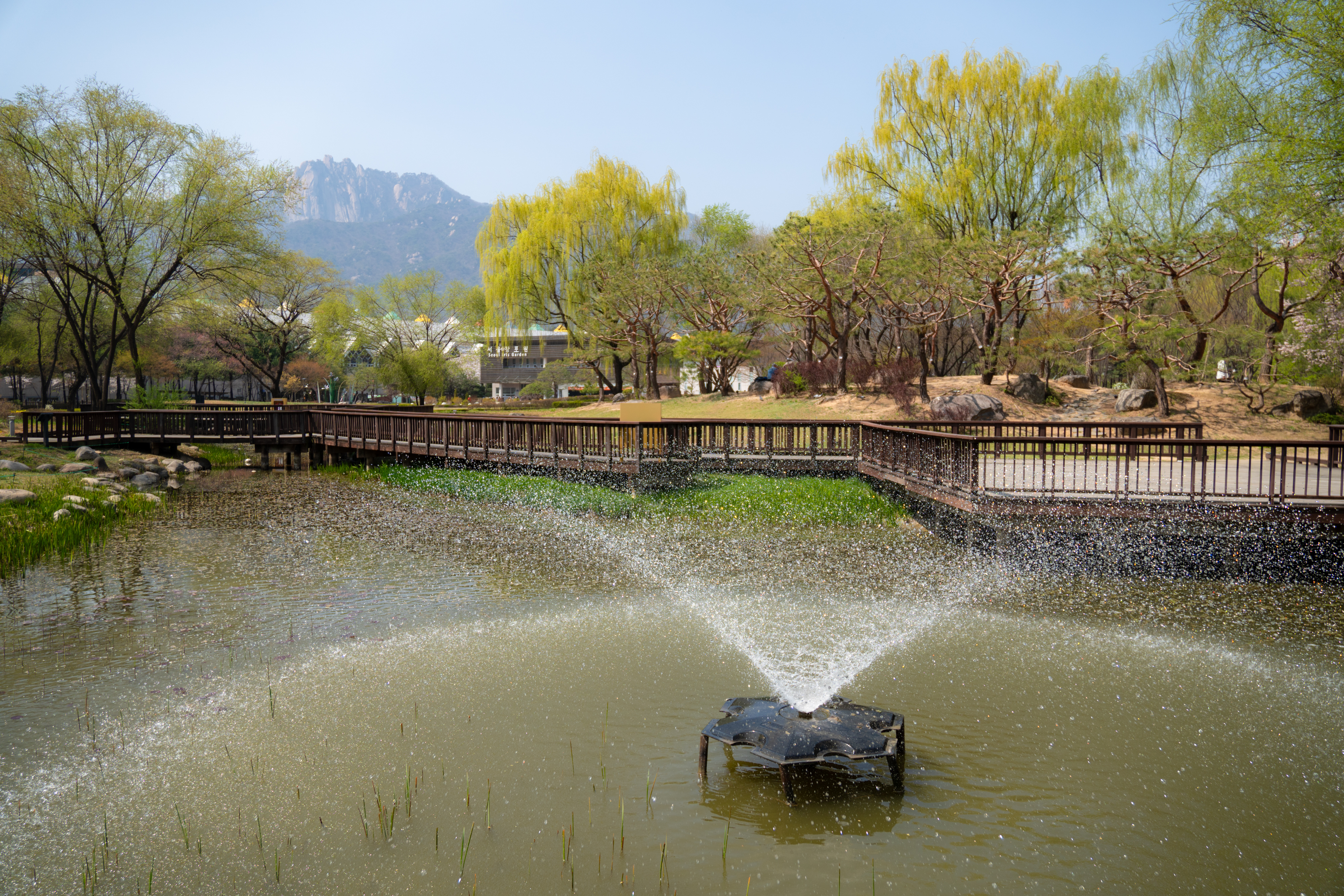 적당한 면적의 공원은 삼사십분 정도면 다 둘러볼 수 있습니다. 한쪽엔 분수와 데크까지 마련돼 있어서 소풍하는 느낌이 물씬 나요. 이날 오후 최고 기온이 23도로 초여름 수준이었는데 흩뿌려지는 분수를 보니 기분이나마 상쾌해지더군요. 특별한 조형물, 시설은 없지만 녹지와 연못 등 공원으로서의 역할은 충실히 하고 있어요. 몇 년 전 저도 부모님, 조카와 소풍 온 적이 있습니다.