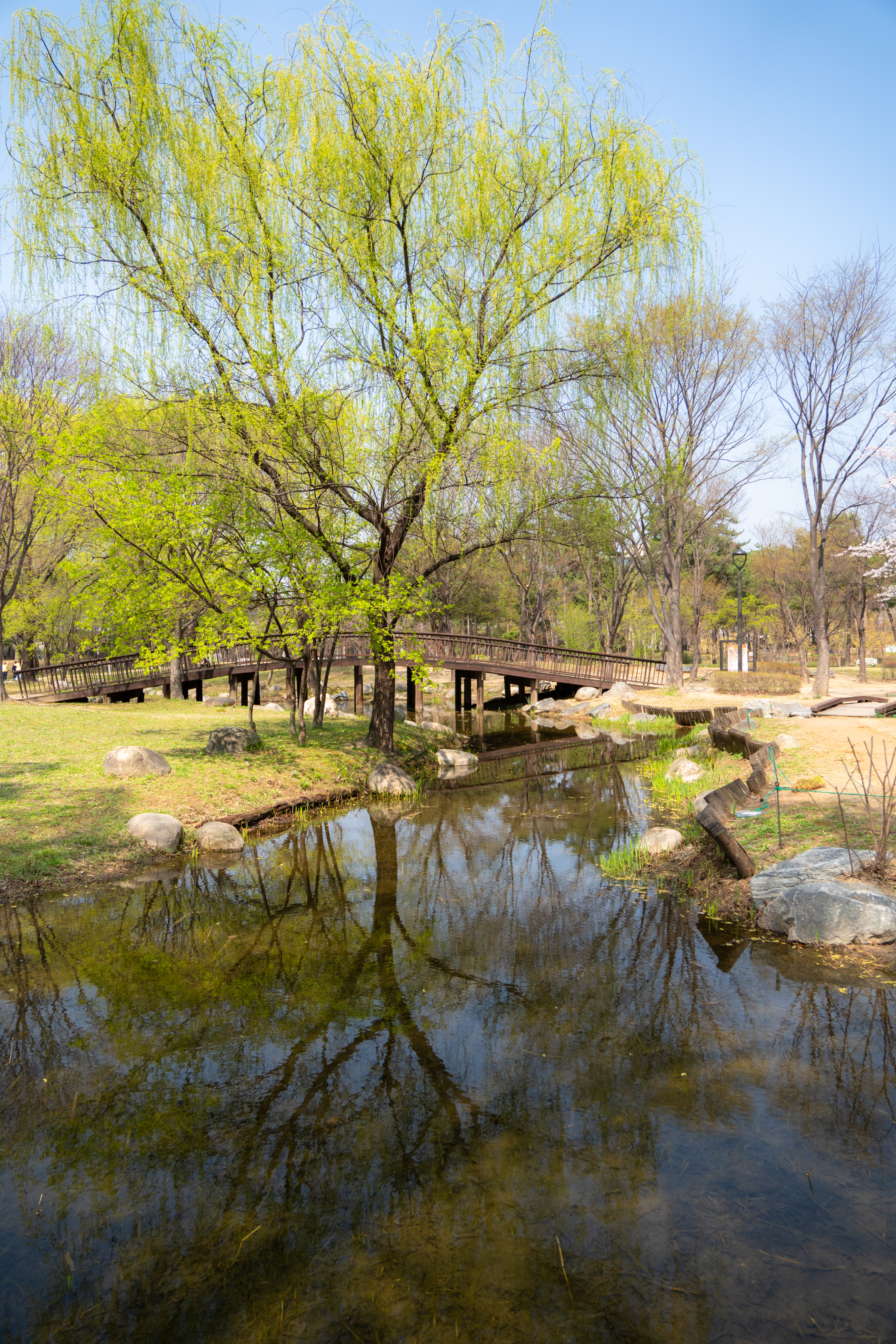 풍경 사진에서는 대부분 렌즈의 초점거리를 17mm 최대 광각으로 설정했습니다. 35mm 환산 약 25mm로 풍경 사진에 적당한 프레임을 제공합니다. 서울창포원은 연못, 개울의 반영이 재미있는 곳입니다. 그래서 이날도 세로 방향으로 찍은 사진들이 많습니다.