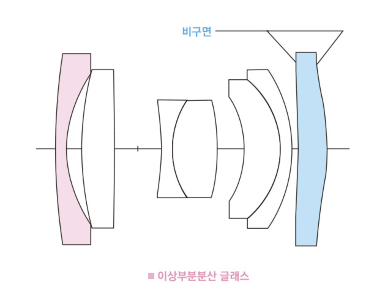5군 7매 (비구면 렌즈 1매, 이상부분분산 글래스 1매)