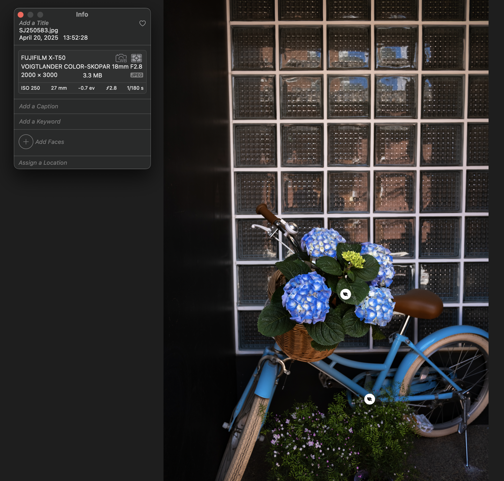 제가 한창 쓰던 시절의 후지필름은 알아보는 사람도 드문 비주류였던 터라 최근의 인기가 어리둥절합니다. 가볍게 다니며 즐기길 원하는 취미 사진가들의 요구에 부합하는 제품들을 만들고 있기 때문이겠죠. 눈으로 뷰파인더를 보고 조리개 링과 초점 링을 조작하는 즐거움도 강점으로 작용했을 겁니다. 이런 재미를 제대로 느끼는 방법으로 수동 렌즈 만한 게 없죠. 작고 가볍고 예쁜 이 렌즈가 재미있기까지 하니 후지필름 X 렌즈들이 전혀 욕심나지 않습니다.