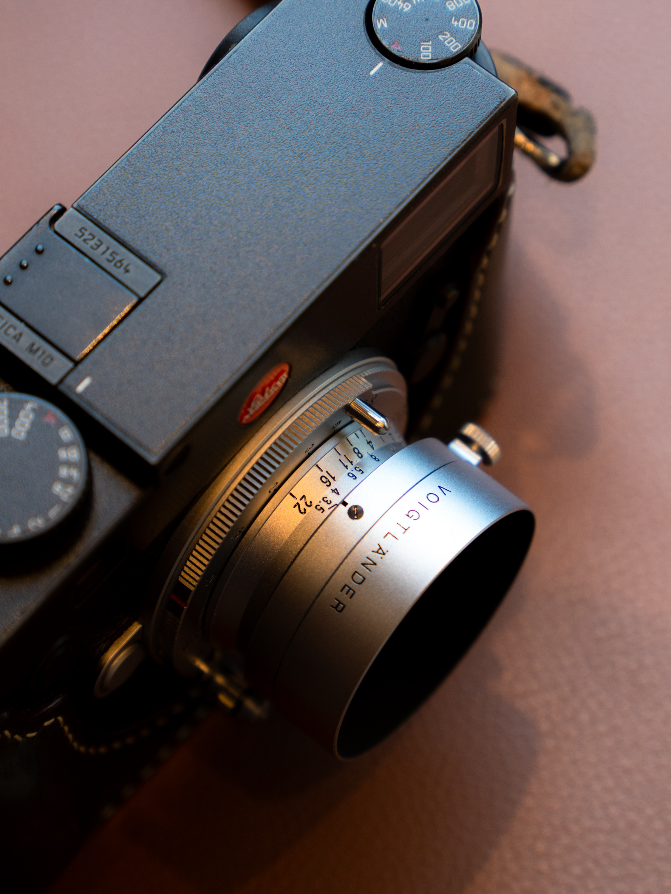 사용하며 느낀 단점은 조작의 불편함입니다. 조리개 링을 돌릴 때 초점 링도 함께 돌아가는 경우가 많아 촬영 중 조리개를 변경하면 초점을 재설정해야 해요. 초점을 무한대로 고정해 두고 촬영할 때는 문제가 없지만 근/원거리를 넘나들 때는 꽤 번거롭게 느껴집니다. 다른 렌즈에는 느끼지 못했던 것이라서요. 그럼에도 저를 포함한 많은 VM 사용자들에게 이 렌즈는 가장 손이 많이 가는 렌즈로, 28mm 또는 50mm가 주력인 이들에겐 가볍게 즐길 35mm 렌즈로 추천할 만합니다. 아포란타-녹턴-울트론에 이어 막내 컬러-스코파까지 35mm VM 렌즈 라인업은 어느 때보다 풍성해졌어요.