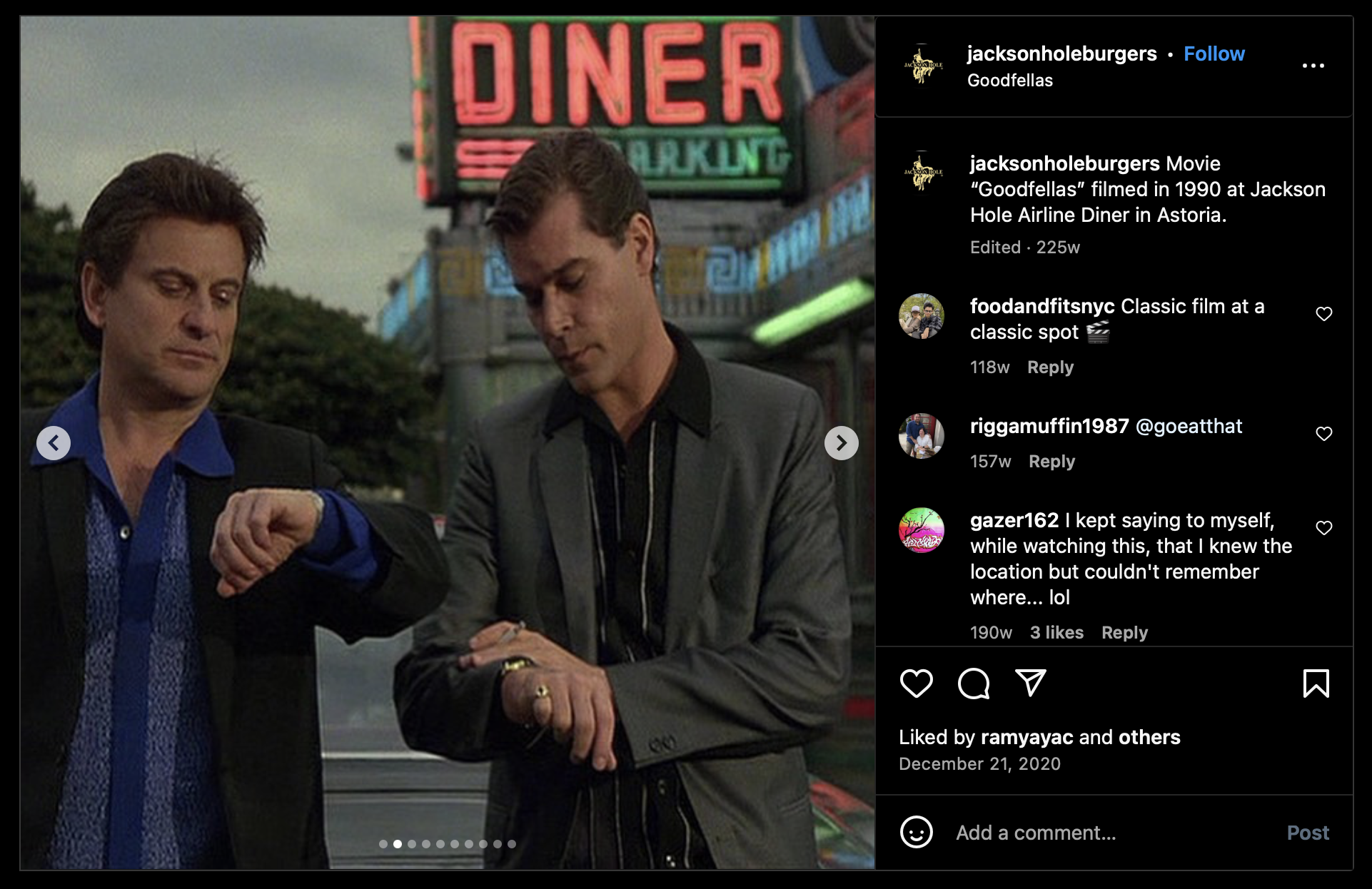 1972년 퀸즈 출신의 지미와 크리스 형제가 설립한 레스토랑입니다. 매장 공사 중 바닥 아래에서 발견된 내셔널 지오그래픽 잡지의 기사에 나온 잭슨 홀의 지명을 따서 이름을 지었다고 해요. 맨해튼 머레이 힐에 첫 매장을 연 뒤 현재는 맨해튼과 퀸즈, 뉴저지에 총 네 곳의 매장을 운영하고 있습니다. 자랑은 고풍스러운 시골 식당의 분위기 그리고 도시에서 가장 큰 버거입니다. 모든 버거에 7온스(약 190g) 패티가 들어간다고 하는데 10온스 패티를 쓰는 파이브 냅킨도 있으니 정말로 가장 큰 지는 모르겠습니다만 손에 꼽을 정도로 푸짐한 것은 맞습니다. 그 외에도 재미있는 이야기가 있어요. 영화 좋은 친구들(GoodFellas, 1990)의 일부 장면이 퀸즈에 있는 잭슨 홀에서 촬영됐고 배우 재니퍼 애니스톤이 무명 시절에 맨해튼의 어퍼 웨스트 사이드 지점에서 근무했다는 일화도 있습니다.