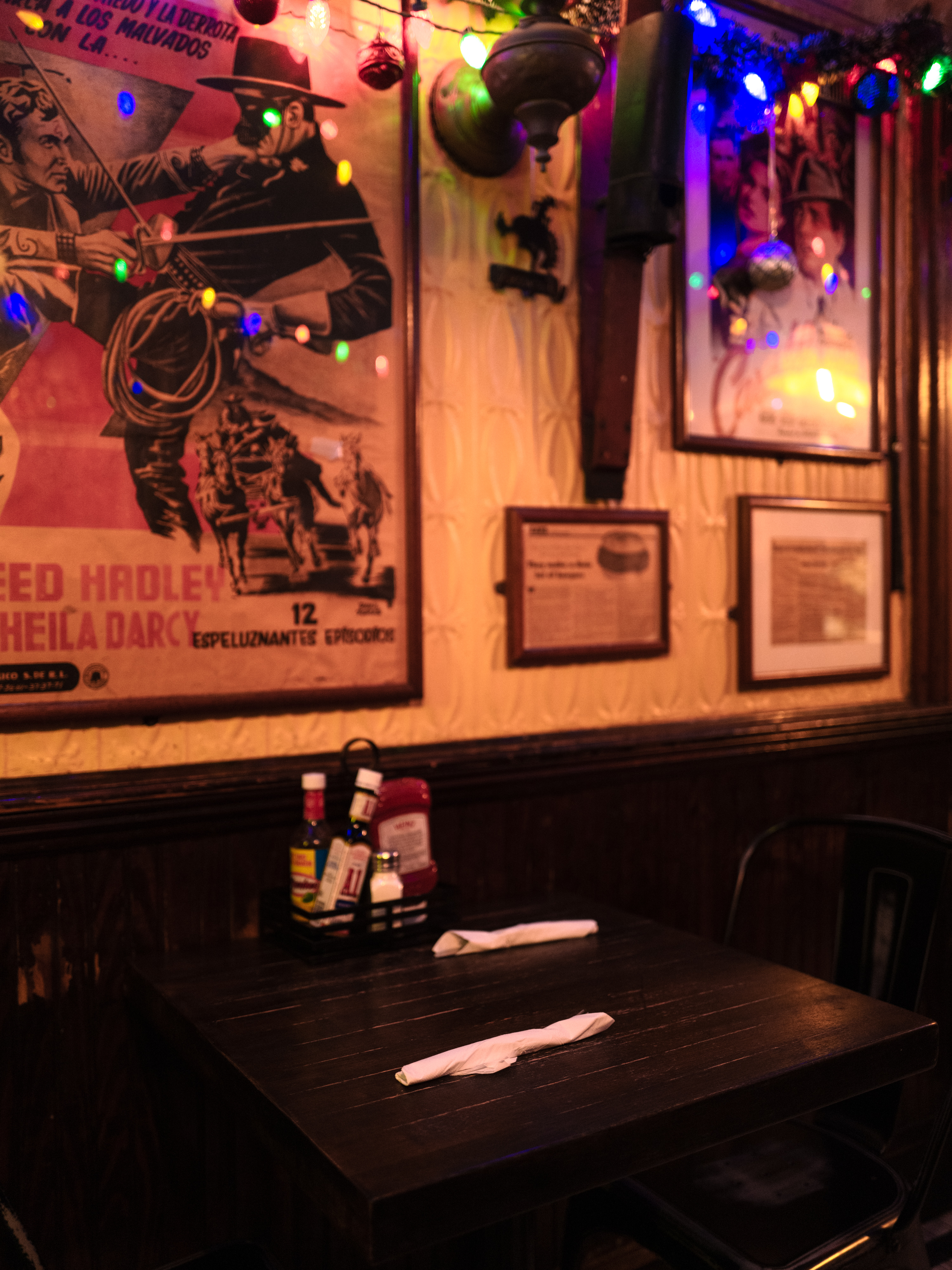 맨해튼 내 두 개의 점포 중 제가 방문한 곳은 어퍼 이스트 사이드에 있는 이스트 64가 지점입니다. 머레이 힐에 있는 식당이 본점이라는 것을 미리 알았으면 그쪽으로 갔을 텐데. 홀은 벽을 사이에 두고 나뉘어 있는 구조고 주방은 조리 과정이 모두 보이는 오픈 키친입니다. 낡은 나무 벽과 가구, 벽에 걸린 옛스런 그림과 사진들, 붉은 조명까지 어딘가 카우보이 모자에 승마 부츠 신은 보안관이 있을 것만 같은 분위기였어요.