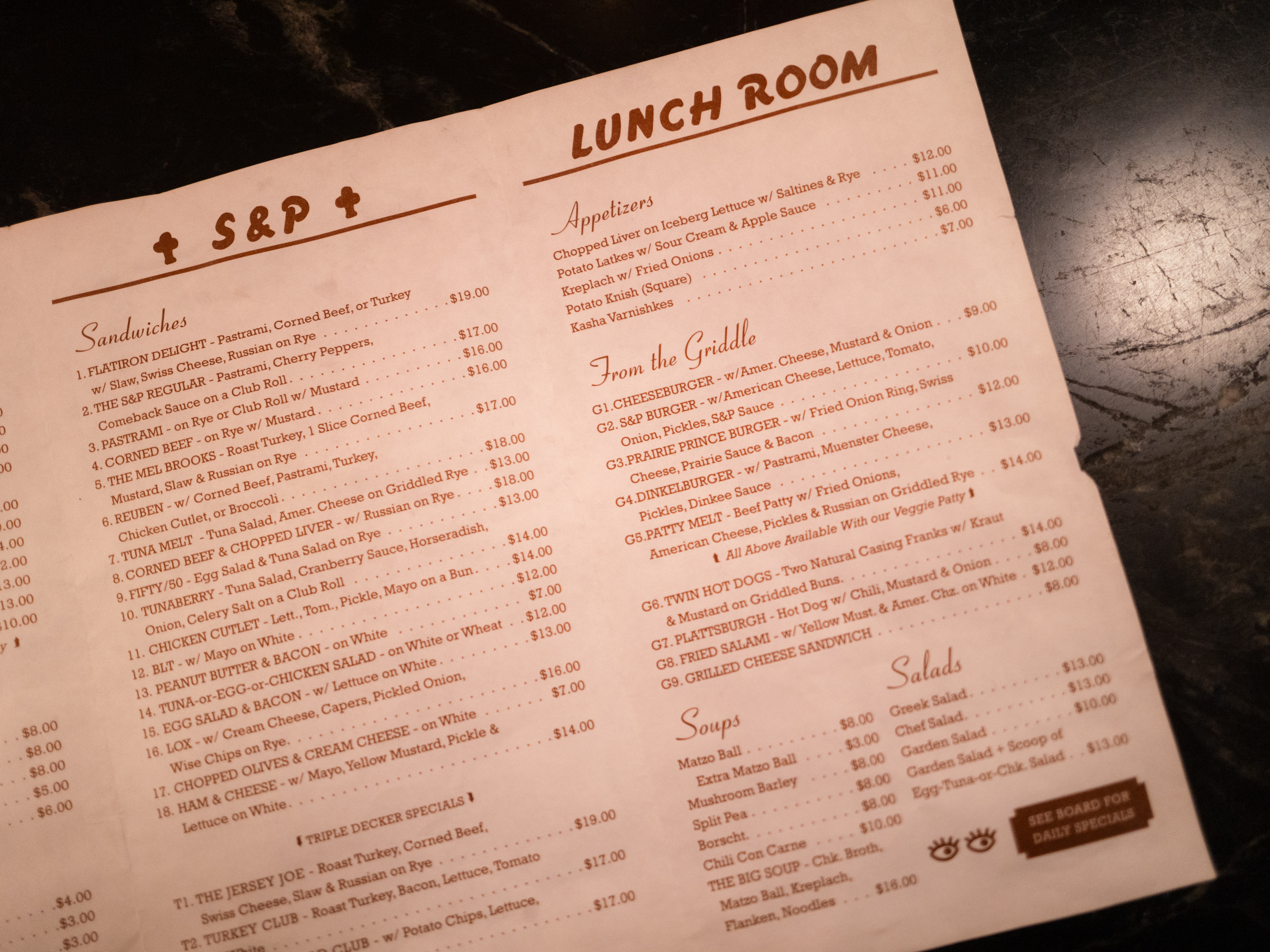 맨해튼의 상징적인 건축물인 플랫아이언 빌딩 바로 건너편에 있는 백년식당입니다. 1928년 찰스 슈와드론(Charles Schwadron)과 루빈 풀버(Rubin Pulver)는 주변 상인들을 대상으로 간단한 아침 메뉴와 유대인 전통 음식들을 판매하기 시작했습니다. 하지만 바로 다음 해인 1929년 식당을 모누스 아이젠버그(Monus Eisenberg)에게 팔아 버렸어요. 새 주인인 아이젠버그는 식당 이름을 아이젠버그 샌드위치 숍(Eisenberg's Sandwich Shop)으로 바꾸고 메뉴들도 개편했습니다. 그와 가족들이 운영한 샌드위치 가게는 맨해튼 최고의 샌드위치 가게들 중 하나로 꼽히며 50여 년 간 성업했어요. 하지만 어떤 이유에서였는지 가족은 1979년 식당을 루이 와이스버그에게 넘겼고 이후 스티브 오, 조쉬 코네키, 워런 치우로 주인이 수차례 바뀌었습니다. 인기와 유명세를 잃은 식당은 결국 2021년 임대료 체납으로 문을 닫았습니다. 다행히 샌드위치 사업가 에릭 핑켈스타인(Eric Finkelstein)과 맷 로스(Matt Ross)가 식당을 인수해 2022년 S&P 런치로 이름을 바꿔 다시 문을 열었습니다.