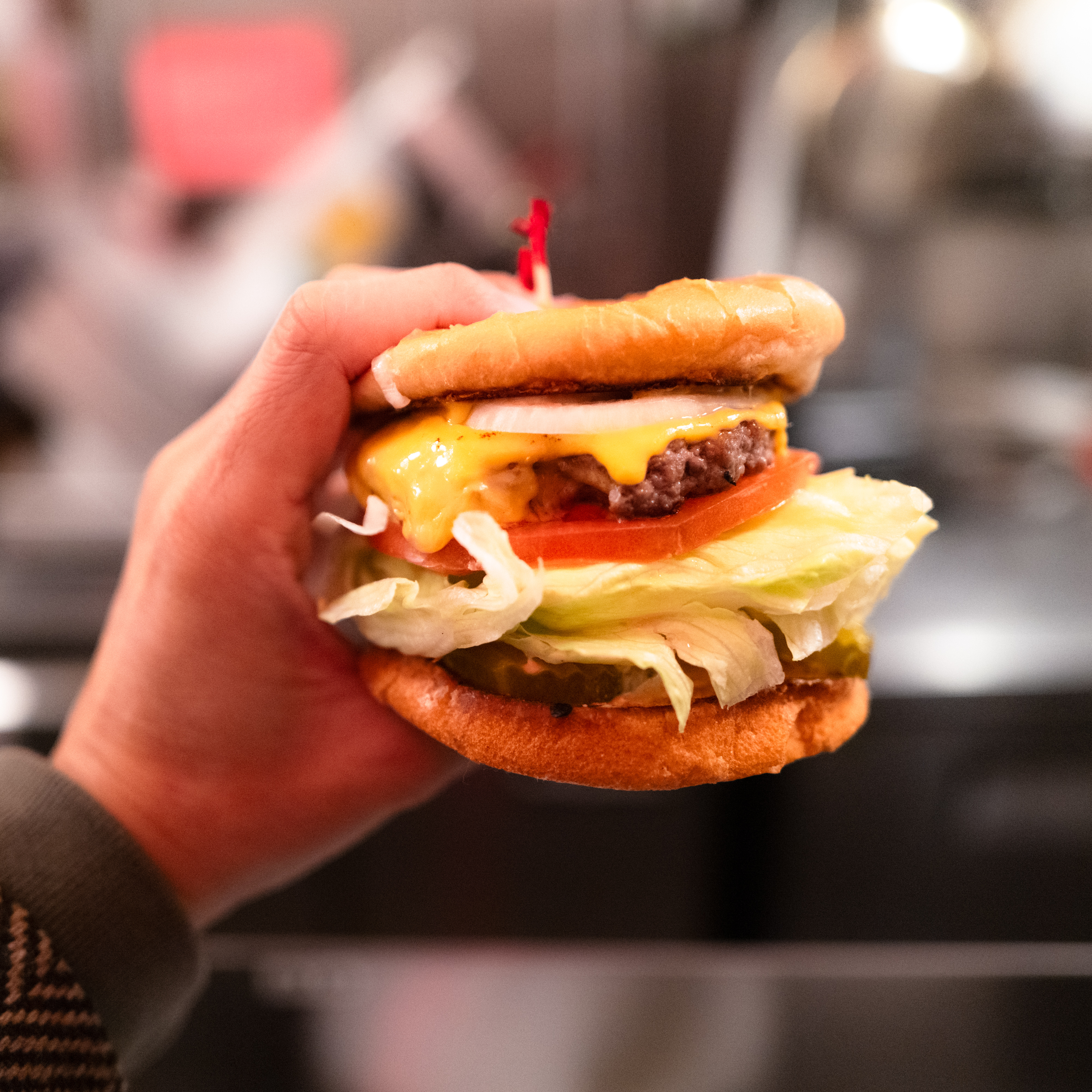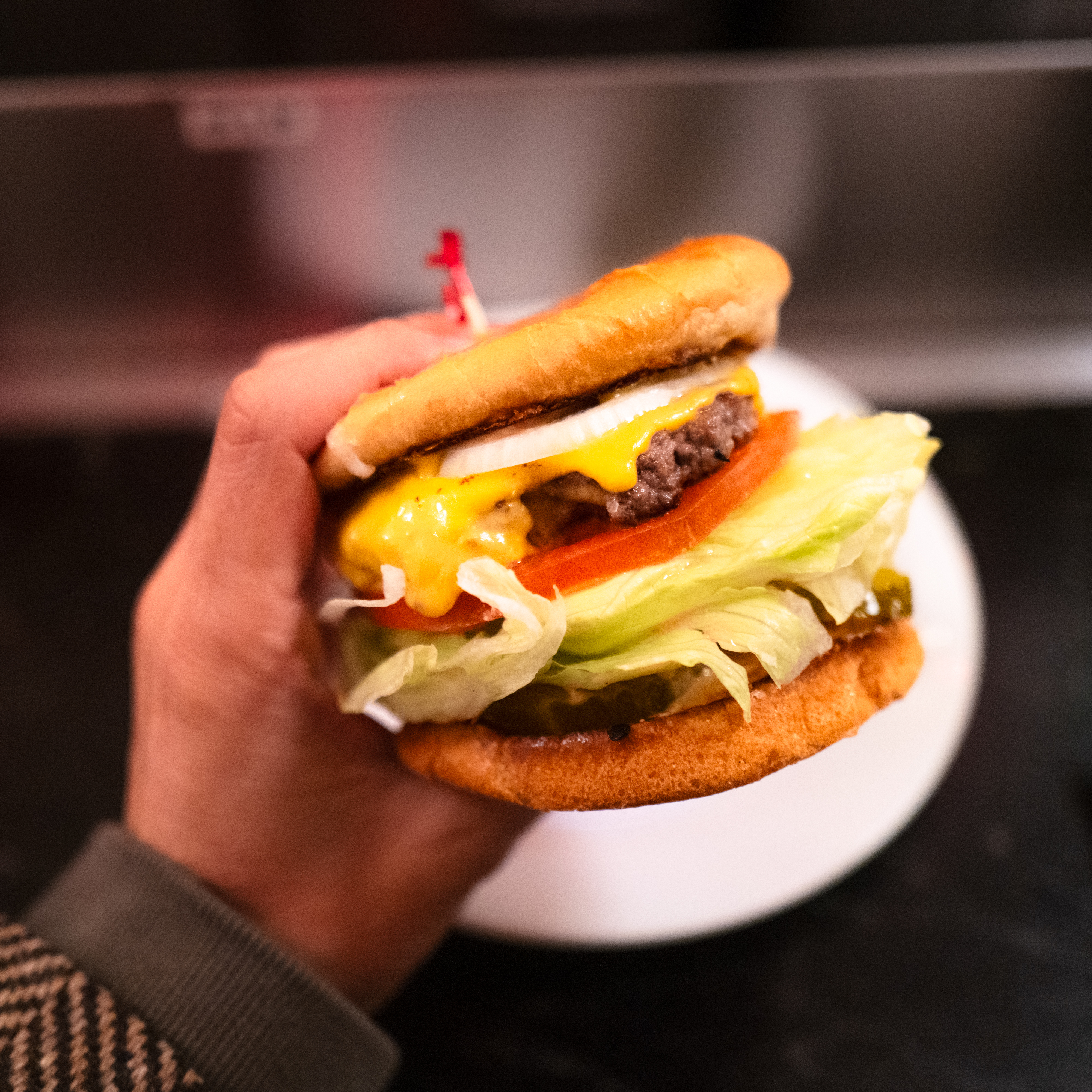 구성은 소고기 패티와 아메리칸 체다 치즈, 토마토, 생양파, 피클, 양상추 그리고 특제 소스입니다. 빵은 평범한 화이트 번을 사용했어요. 지극히 평범한 단어 그대로의 클래식. 백 년 된 노포의 음식들은 기교 없이 정직하기 마련이니까요. 맛도 평범합니다. 장점은 패티와 치즈를 잘 구웠고 채소가 신선했다는 것. 가격이 가격인지라 패티는 얇고 육향이나 식감도 특출 나지 않습니다만 치즈를 녹여 패티의 부족한 풍미를 채웠어요. 아쉬운 것은 번. 버터로 한 번 구워서 식감이나 향을 살린 것은 좋았지만 빵 자체의 품질이 마트에서 열 개 묶음으로 파는 평범한 버거 번 수준이라 한계가 있습니다. 그간 너무 고급 버거들을 먹은 탓도 있겠습니다만. 피클은 바닥에 넉넉하게 깐 것도 모자라 오이 하나를 통째로 함께 주는데 짠맛이 강하지 않은 것이 좋았습니다.