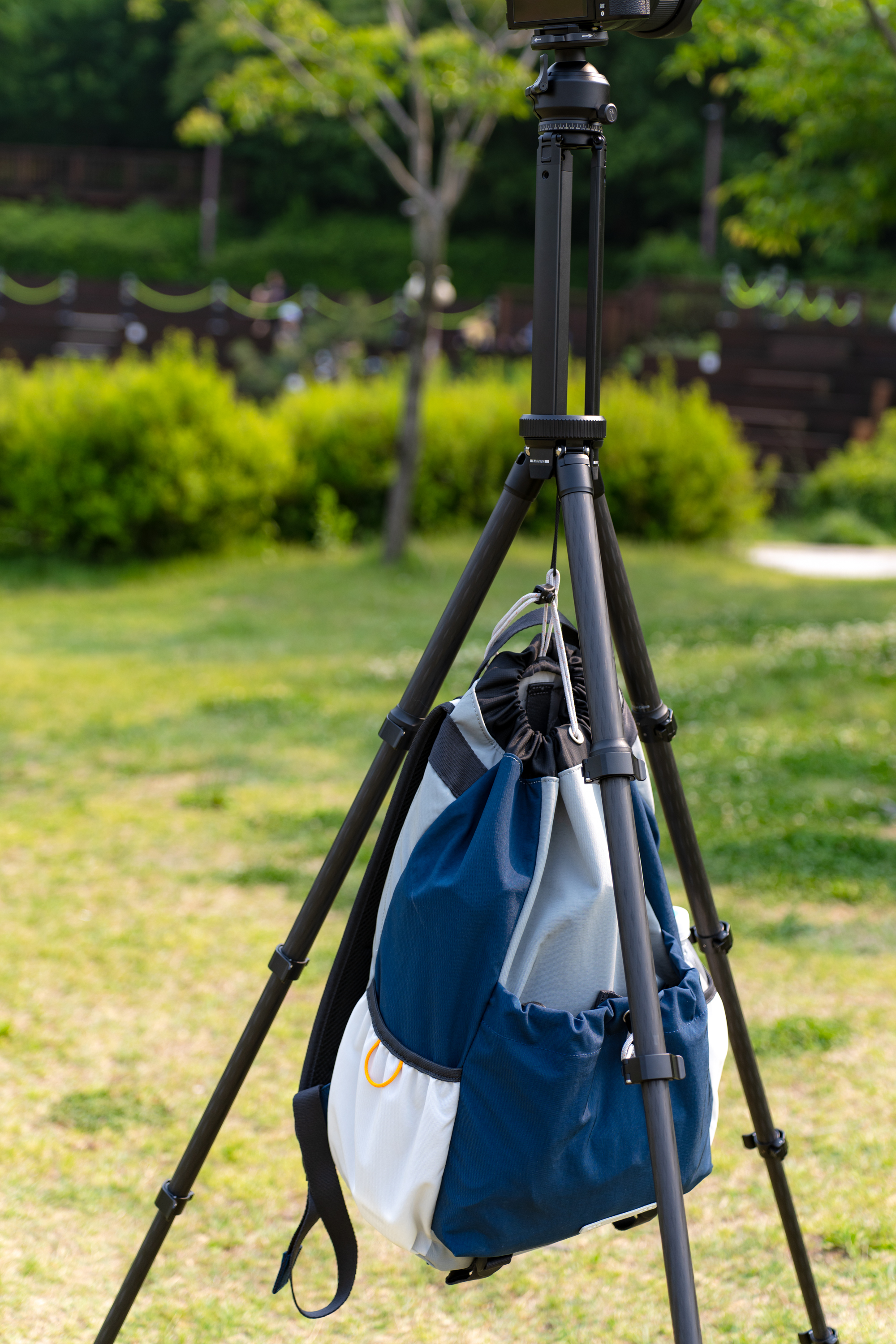 가방을 걸어 삼각대를 단단하게 고정할 수 있는 후크는 로프로 대체됐습니다. 카라비너를 사용해 가방을 걸거나 로프에 묶어 고정할 수 있습니다. 길이가 길어진 점이 마음에 들어요. 이 외에도 높이, 무게의 변화도 있지만 실사용에서 체감하기 어려운 수준의 작은 차이입니다.