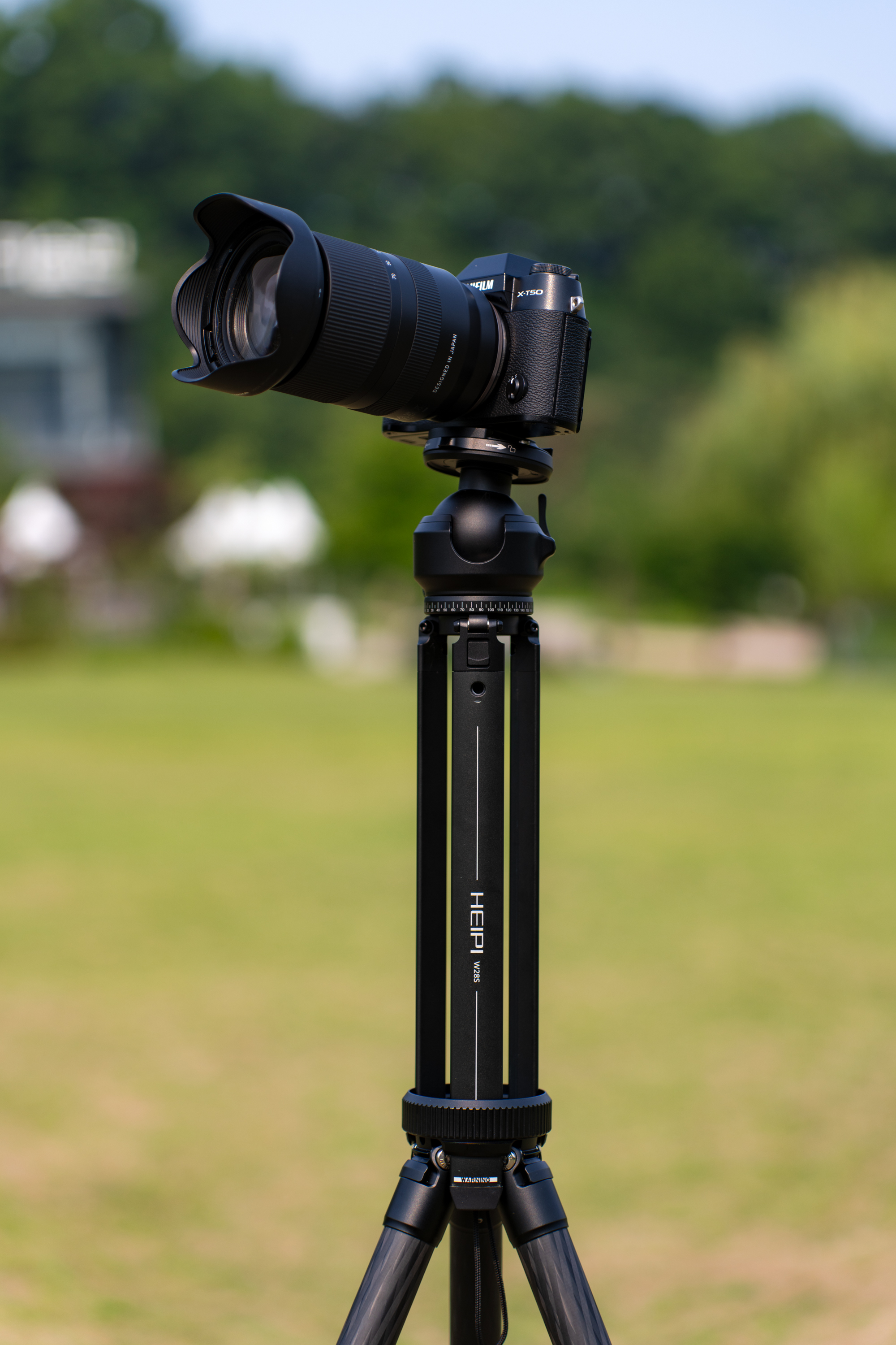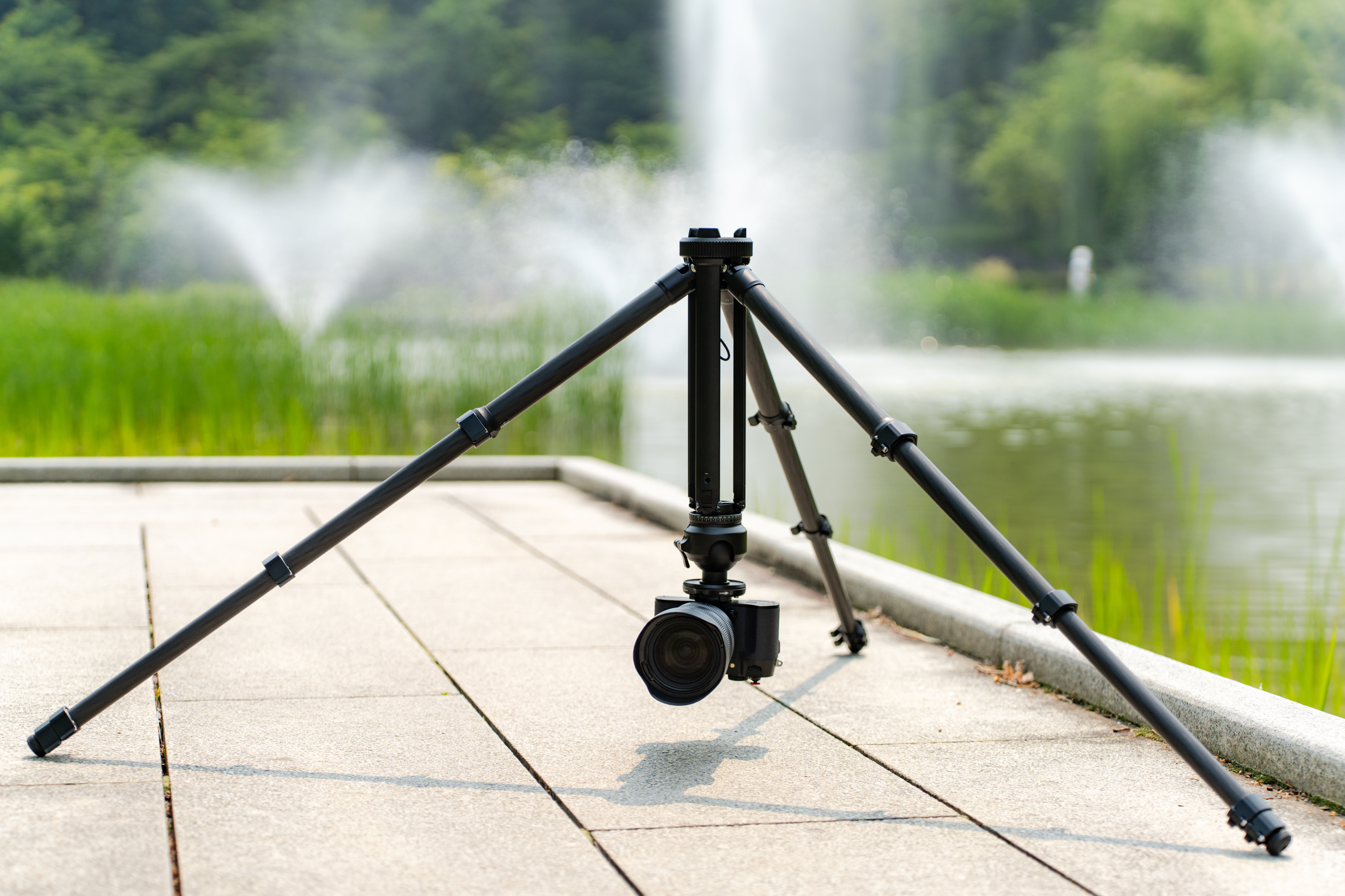 미니 삼각대 역할을 겸하는 센터 컬럼과 메인 삼각대를 통해 높이를 조절할 수 있습니다. 세 갈래로 나뉜 W28S의 센터 컬럼은 전체 지름이 길어서 원기둥 형태의 센터 컬럼보다 보기에 더 단단하게 보여요. 센터 컬럼을 분리하고 볼헤드를 메인 삼각대에 장착하면 삼각대를 22.5cm까지 낮춰서 고정할 수 있습니다. 로우 앵글 사진, 영상 촬영에 주로 사용되는데 개인적으로는 아래 사진처럼 센터 컬럼을 거꾸로 장착하는 방식을 선호합니다. 볼헤드를 분리하는 수고가 없고 카메라를 더 낮게 위치시킬 수 있어서요.