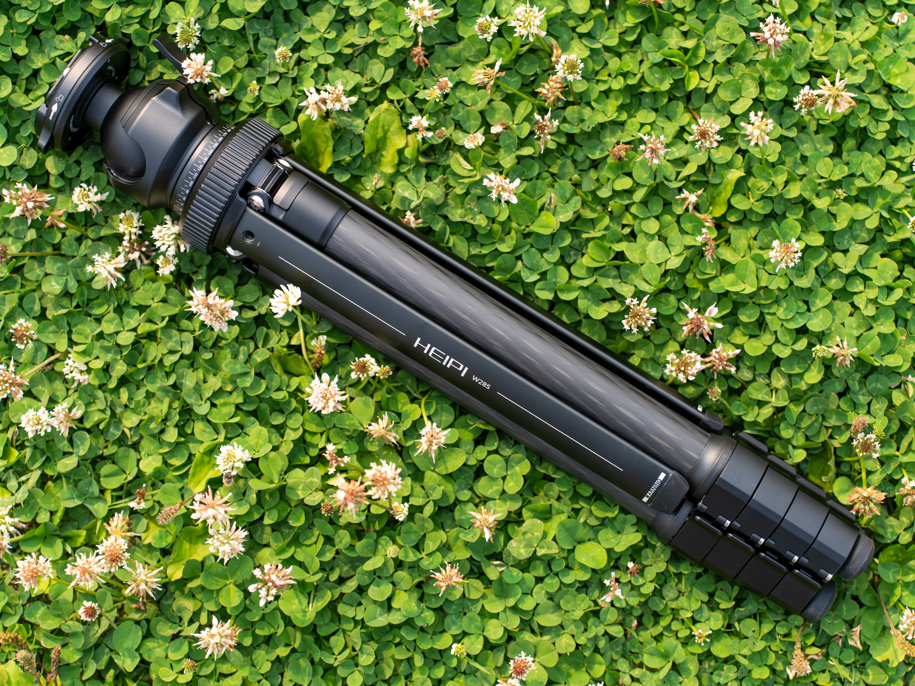 센터 컬럼을 세 갈래로 분리해 메인 삼각대 다리 사이에 끼워 넣는 독특한 구조는 헤이피 W28 시리즈의 상징입니다. 이를 통해 삼각대를 접었을 때의 부피를 눈에 띄게 줄였습니다. 전체 지름이 약 7cm로 여성도 한 손으로 감싸 쥘 수 있어요. 전체 길이도 45cm로 짧은 편입니다. 가방이나 트렁크에 넣어 보면 공간 활용이 달라지는 것을 경험하게 됩니다.