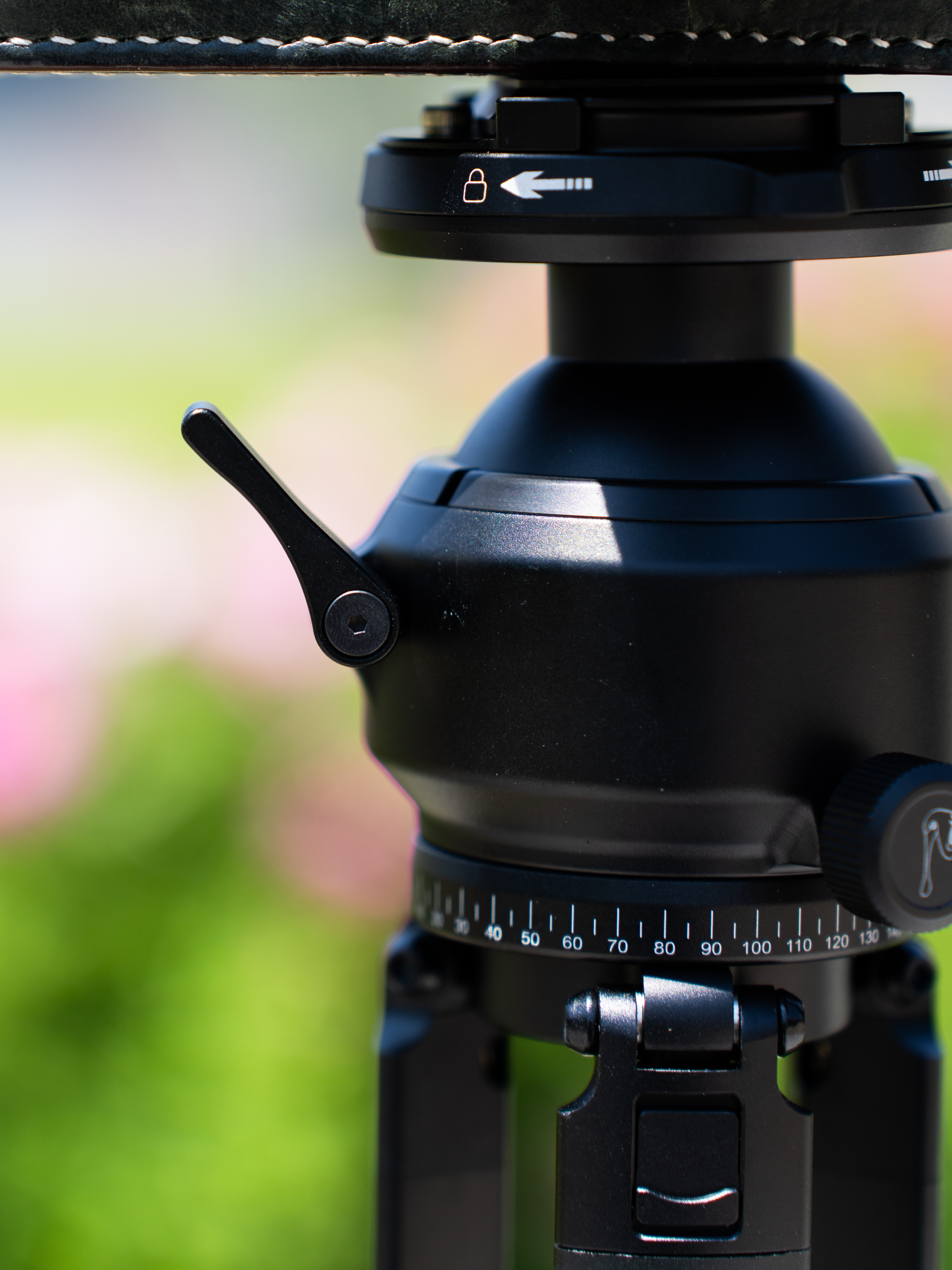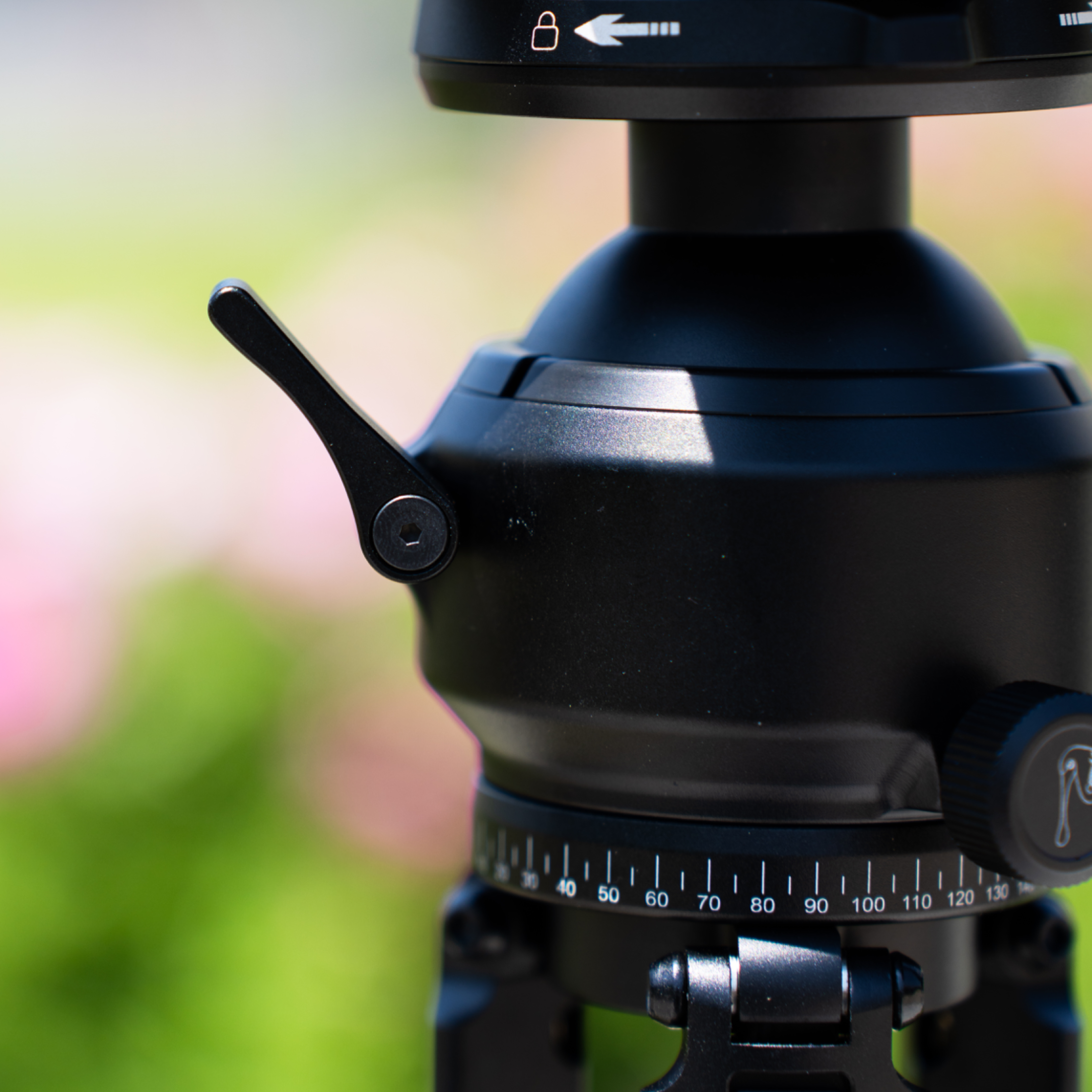 볼헤드 잠금 레버는 전작보다 길어졌고 곡선 마감이 추가됐습니다. 적은 힘으로도 레버를 잠그고 풀 수 있을뿐 아니라 손가락이 안정적으로 고정됩니다. 패닝 노브는 여전히 나사 방식입니다.