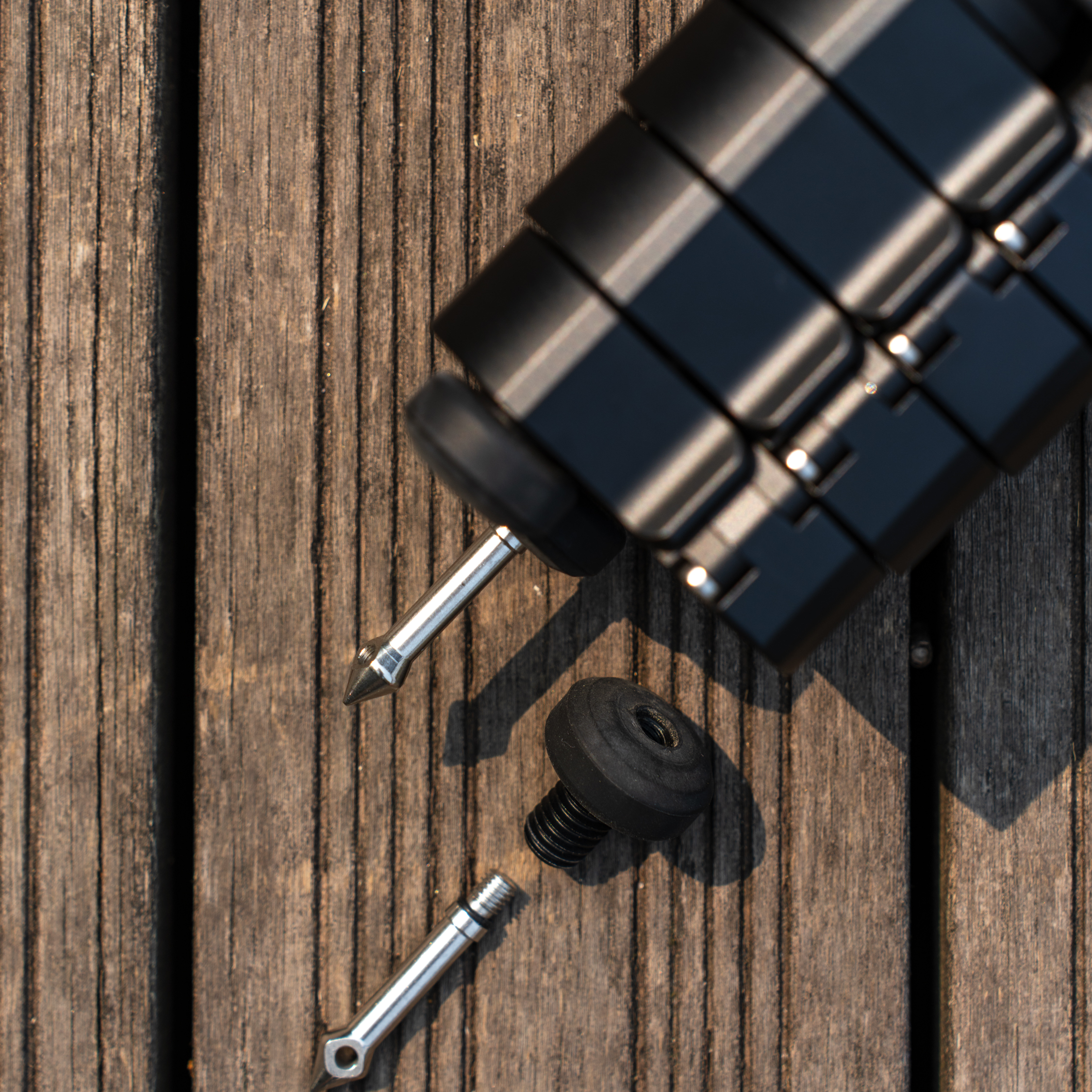 다리 안에 수납된 스파이크의 길이는 전보다 길어졌습니다. 삼각대 다리의 각도를 넓게 벌렸을 때도 제 역할을 할 수 있겠습니다.