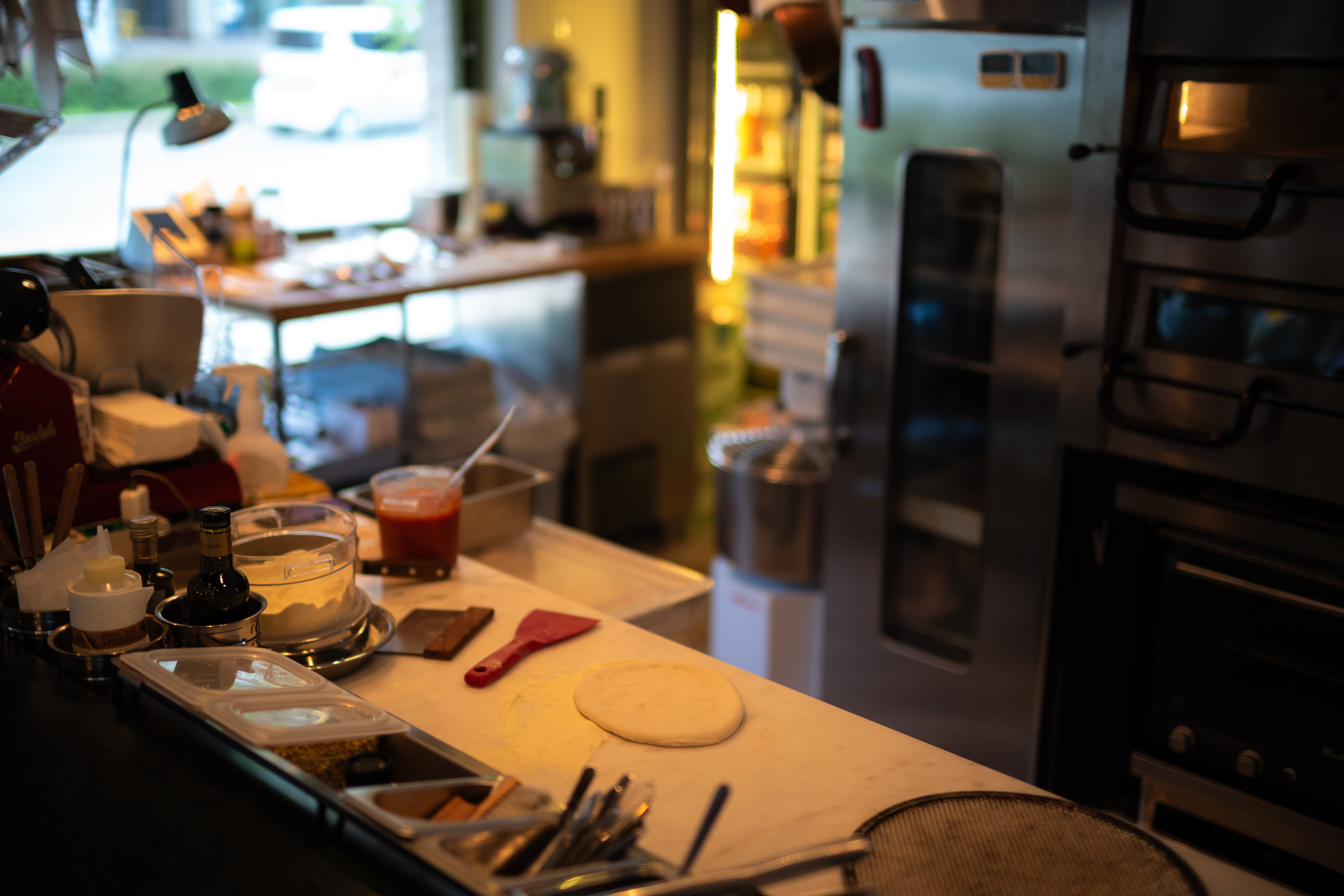 주문 즉시 만들어지는 피자. 첫방문이라 기본 피자인 부팔라 마리게리타 피자를 주문했습니다. 하나하나 재료 올라가는 것을 보는 재미가 있었어요.